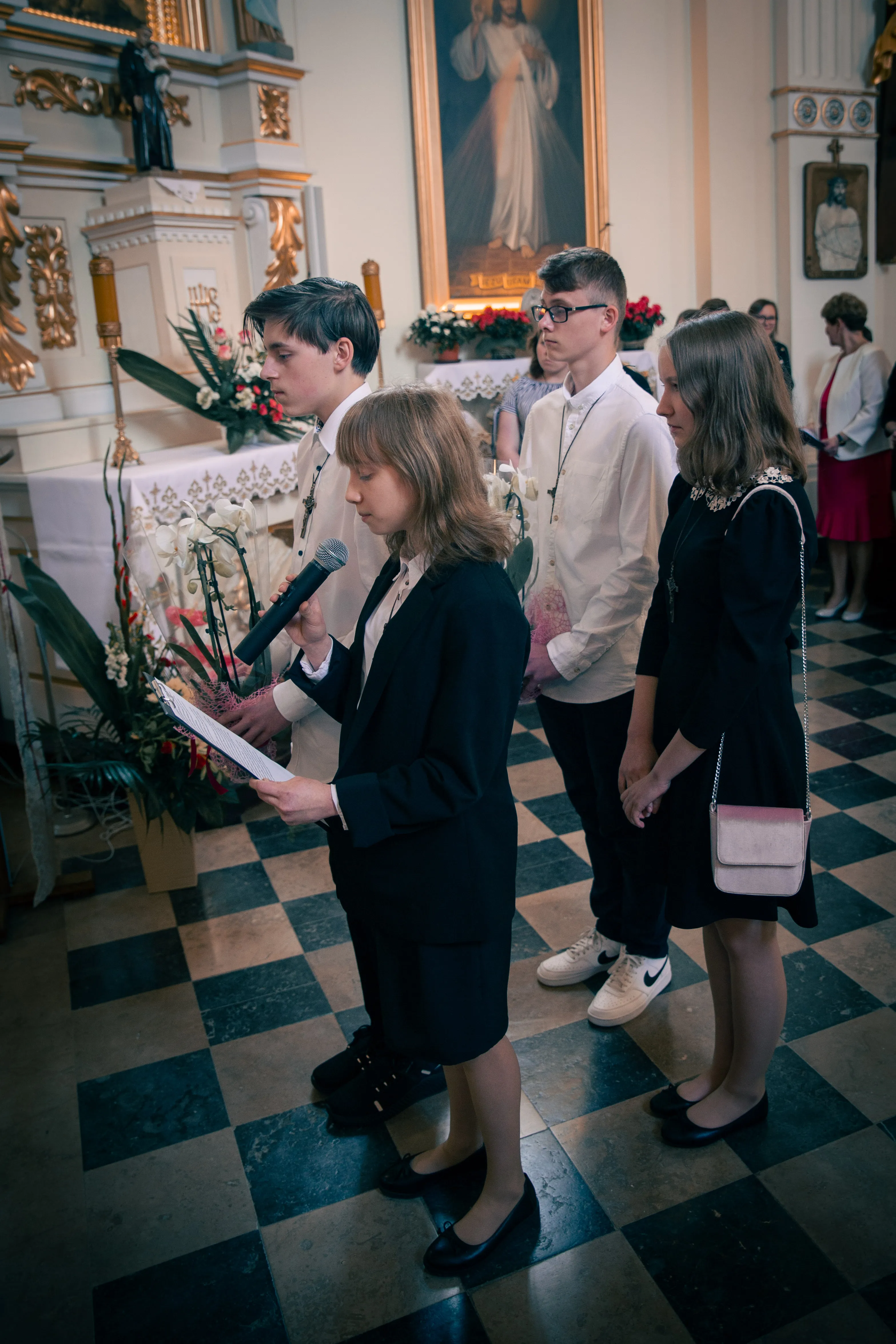 W niedzielę 29.05.2022 r. uczniowie klas siódmych i ósmych z naszej parafii, otrzymali sakrament bierzmowania. Tym samym stali się dojrzałymi członkami wpólnoty Kościoła. W uroczystosci uczestniczyli równiez bliscy otrzymujących sakrament, ich opiekunowie i nauczyciele.