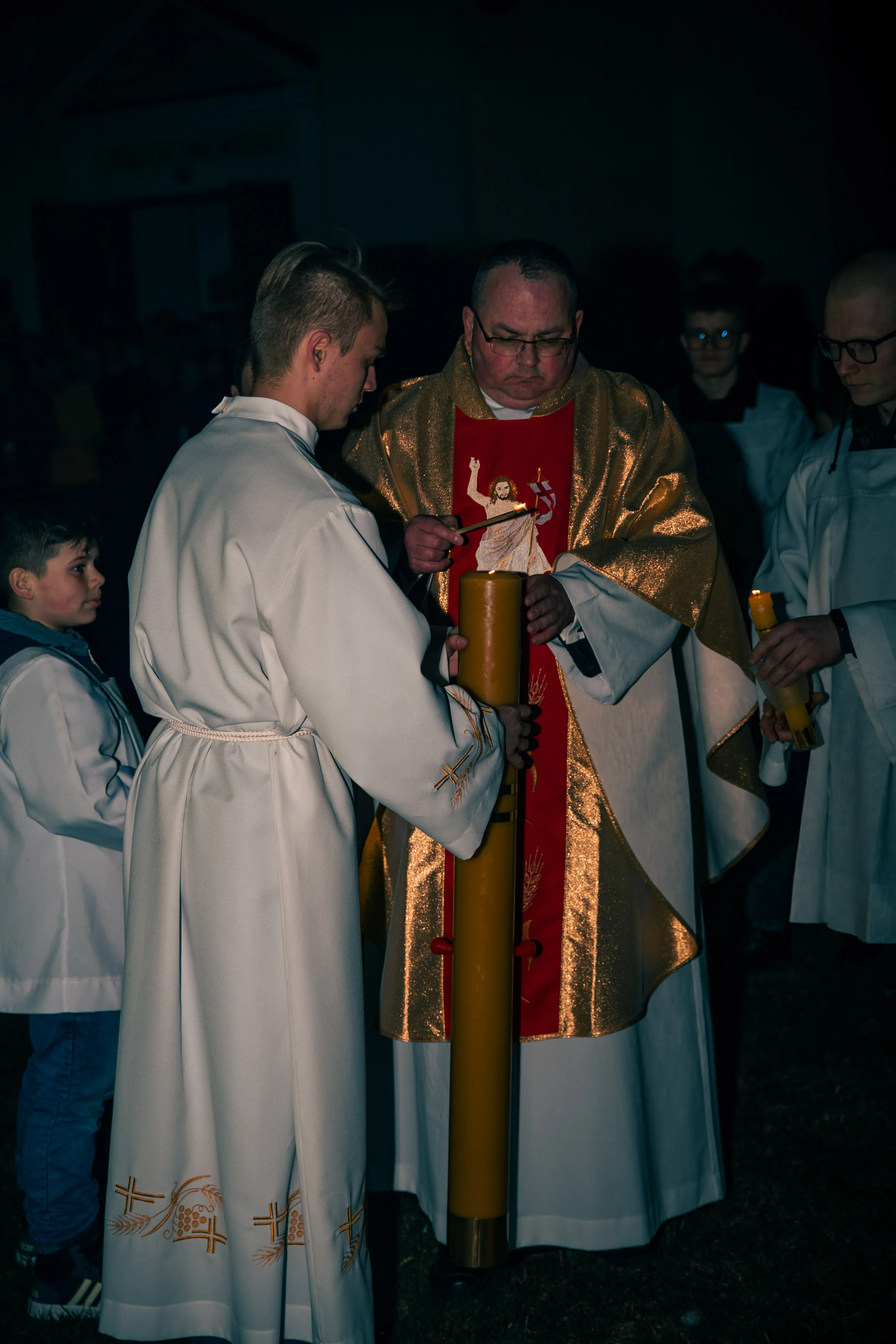 Wielka Sobota 16.04.2022 r. – to przedostatni dzień Wielkiego Tygodnia, poprzedzający święto Zmartwychwstania. W Kościele dzień ten jest dniem wyciszenia i oczekiwania na przyjście Chrystusa. Od wczesnych godzin rannych katolicy adorują Najświętszy Sakrament w Grobie Pańskim. Tradycyjnie w naszej parafii przy Grobie Pańskim czuwają dziewczynki, strażacy i parafianie. Tradycyjnie w tym dniu, przed południem błogosławi się pokarmy na stół wielkanocny. Po zapadnięciu zmroku odprawiana jest msza Wigilii Paschalnej, na która składa się: Liturgia Światła, Liturgia Słowa Bożego, Liturgia Chrzcielna, Liturgia Eucharystyczna.