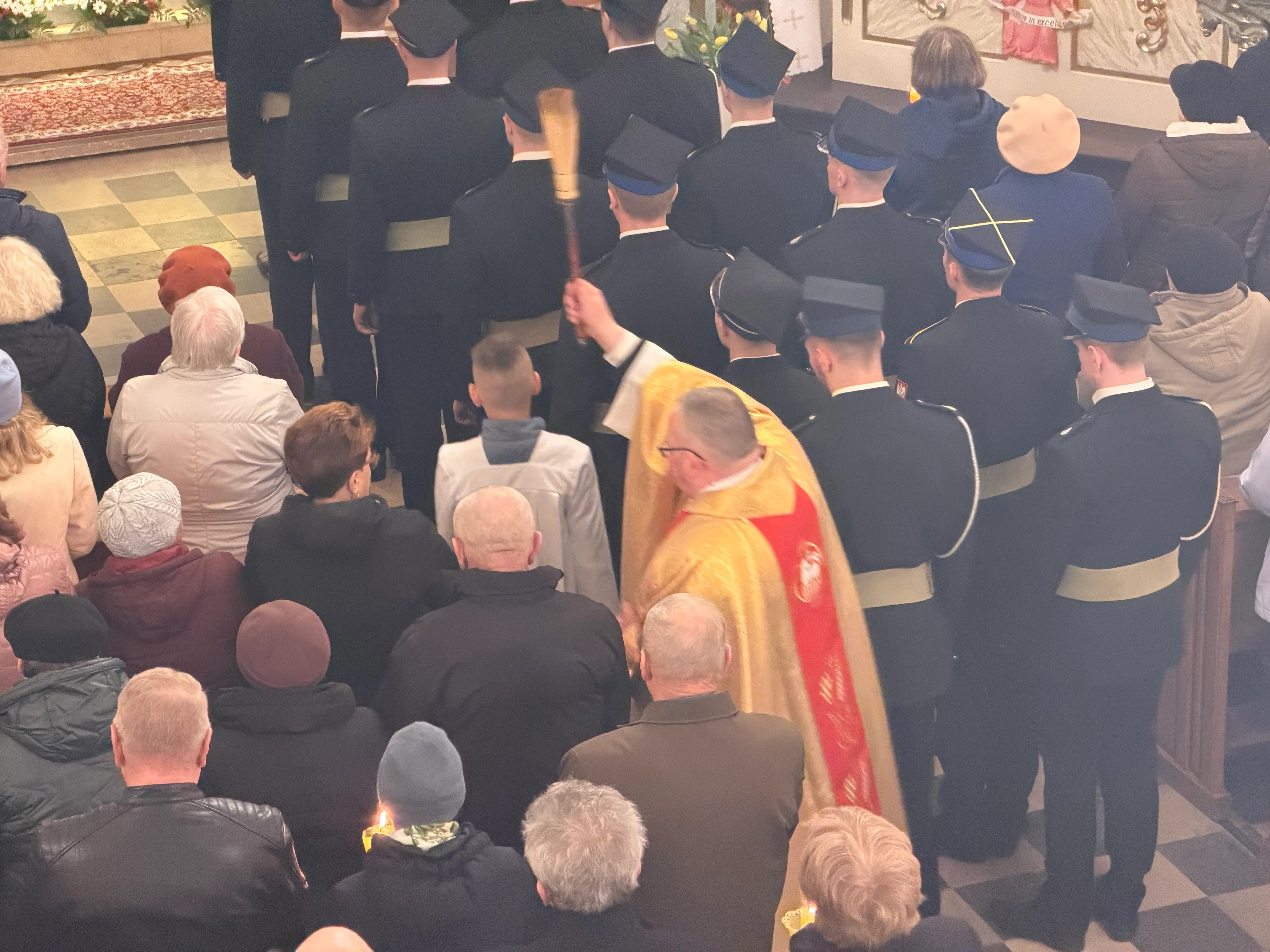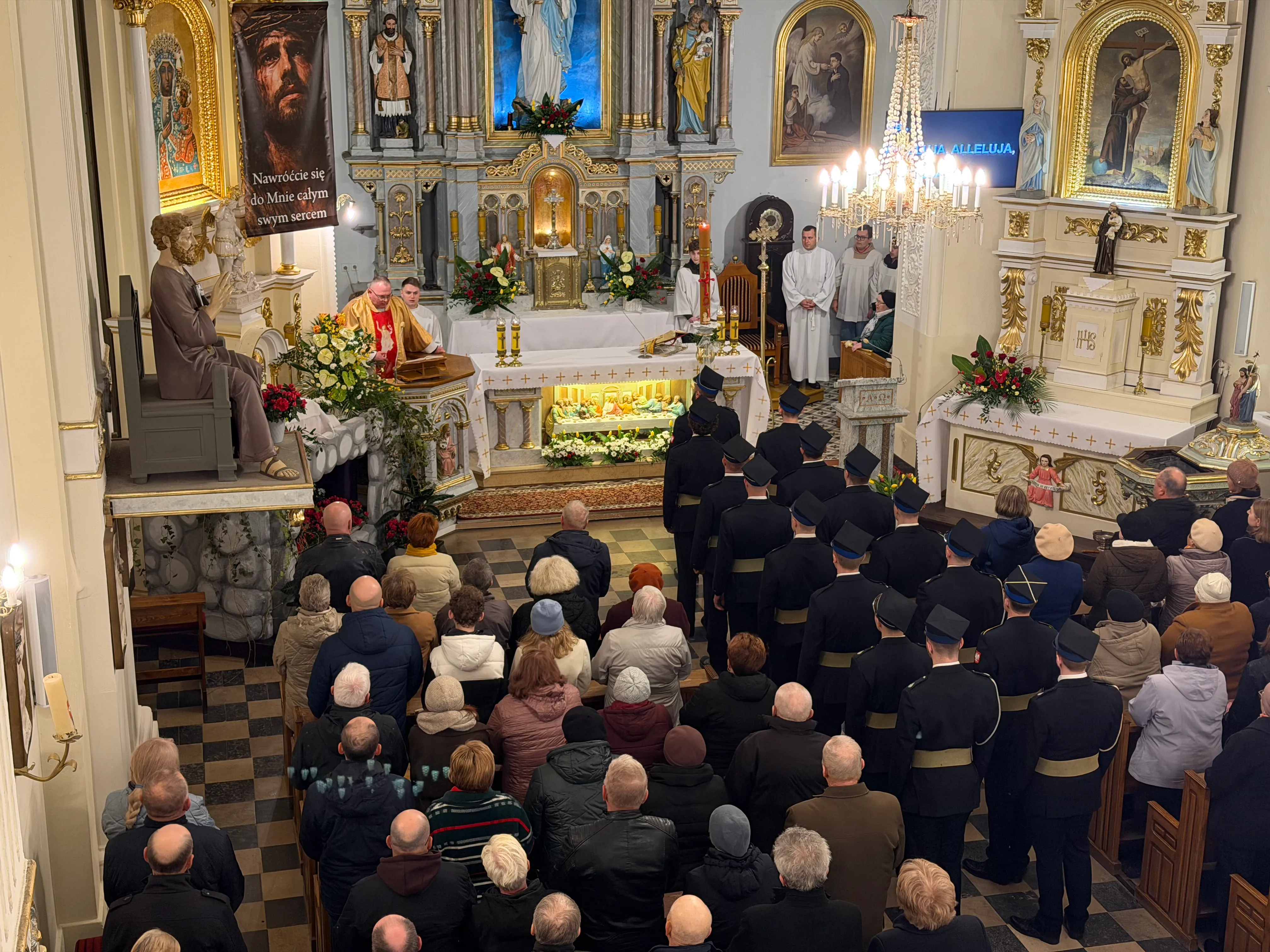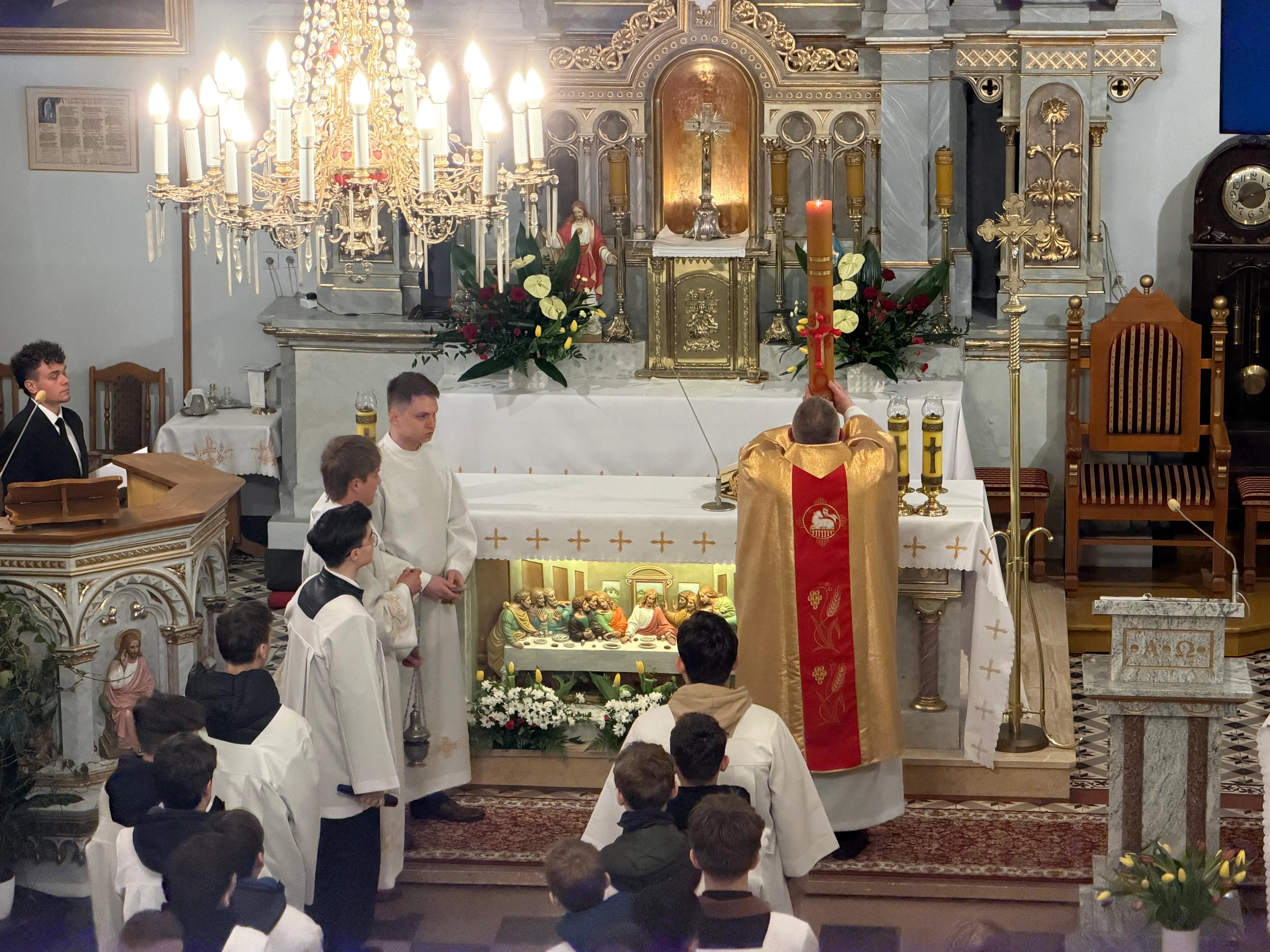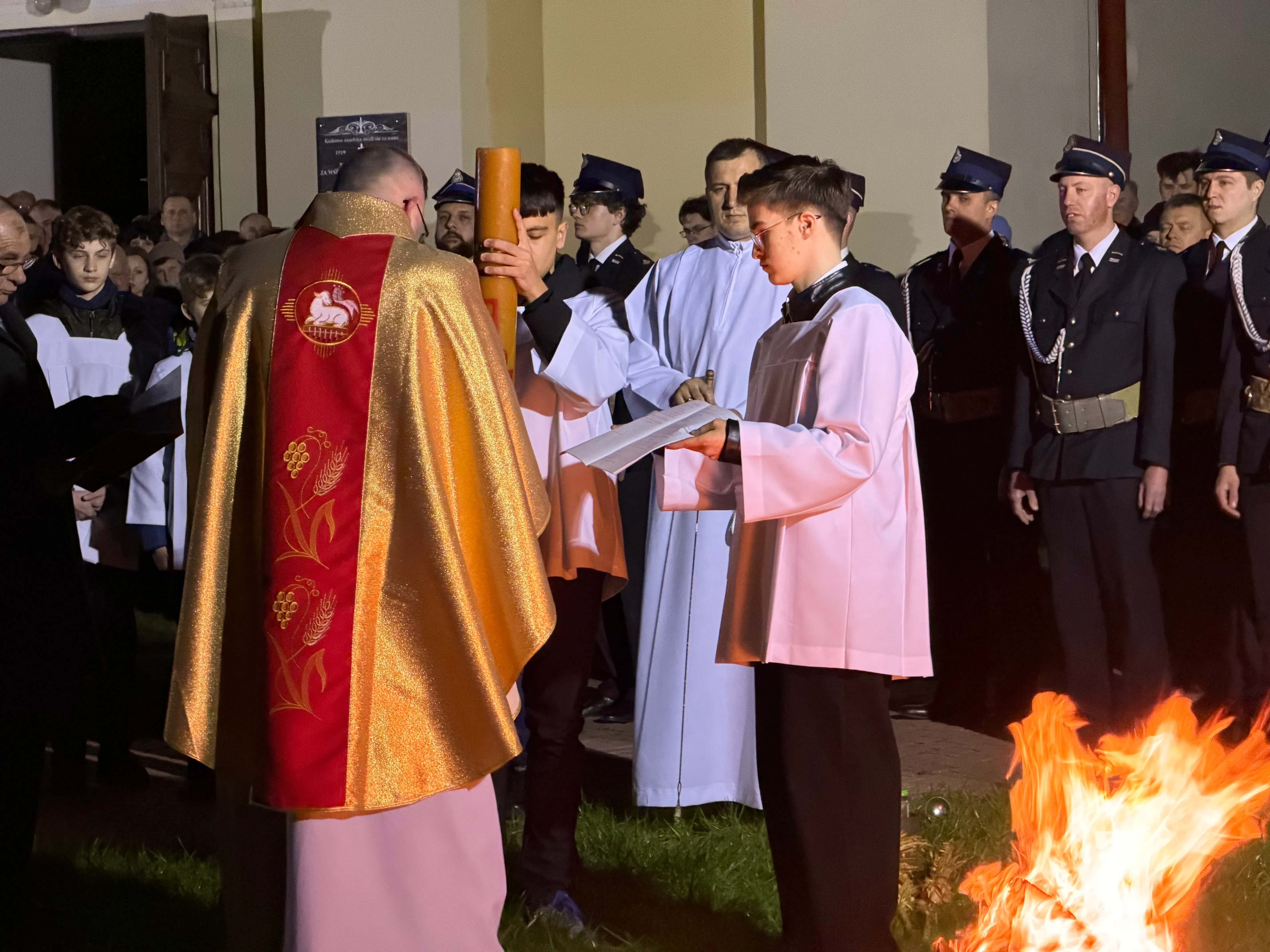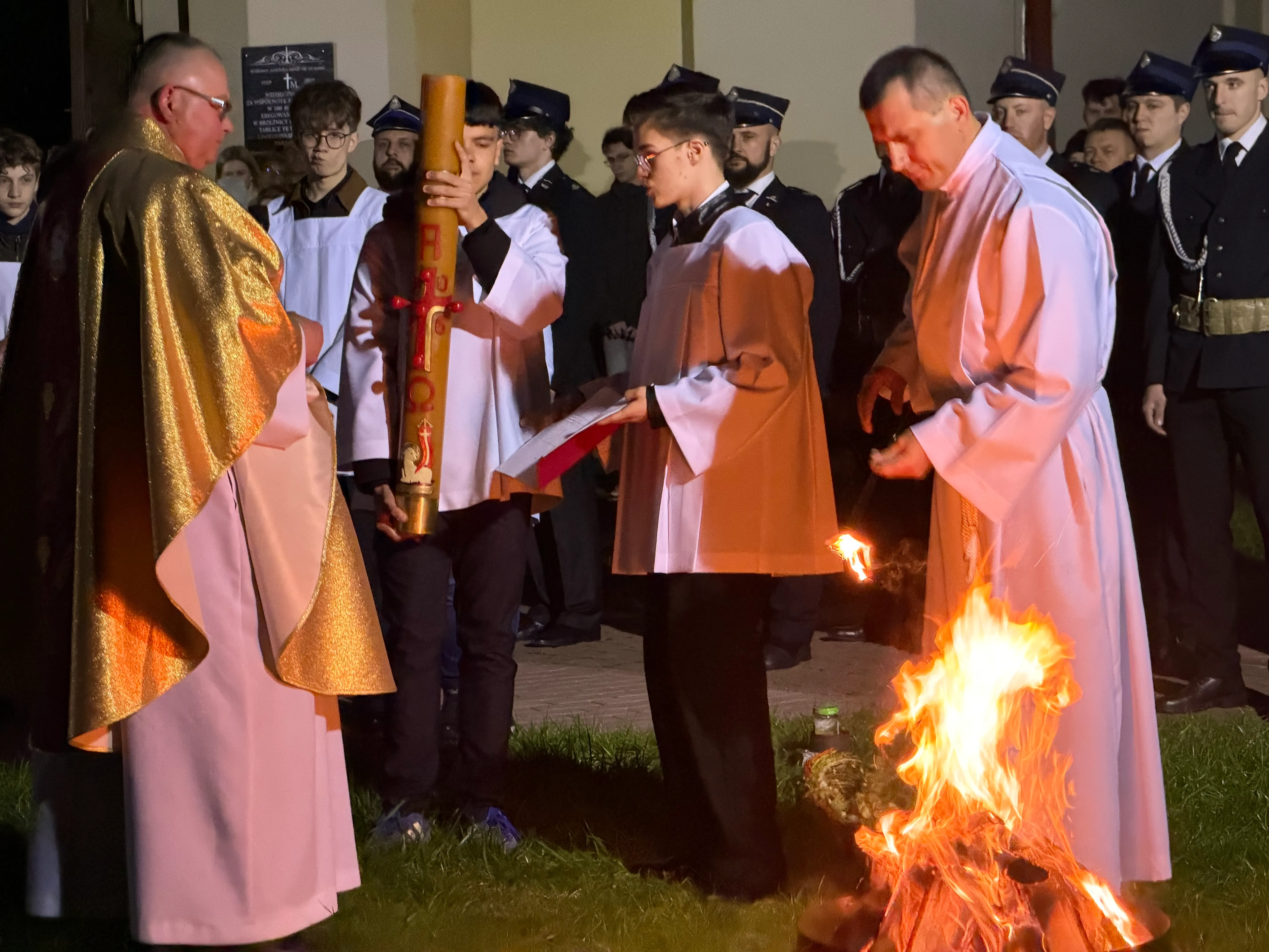 Po zapadnięciu zmroku odprawiana jest msza Wigilii Paschalnej, na która składa się: Liturgia Światła, Liturgia Słowa Bożego, Liturgia Chrzcielna, Liturgia Eucharystyczna.
