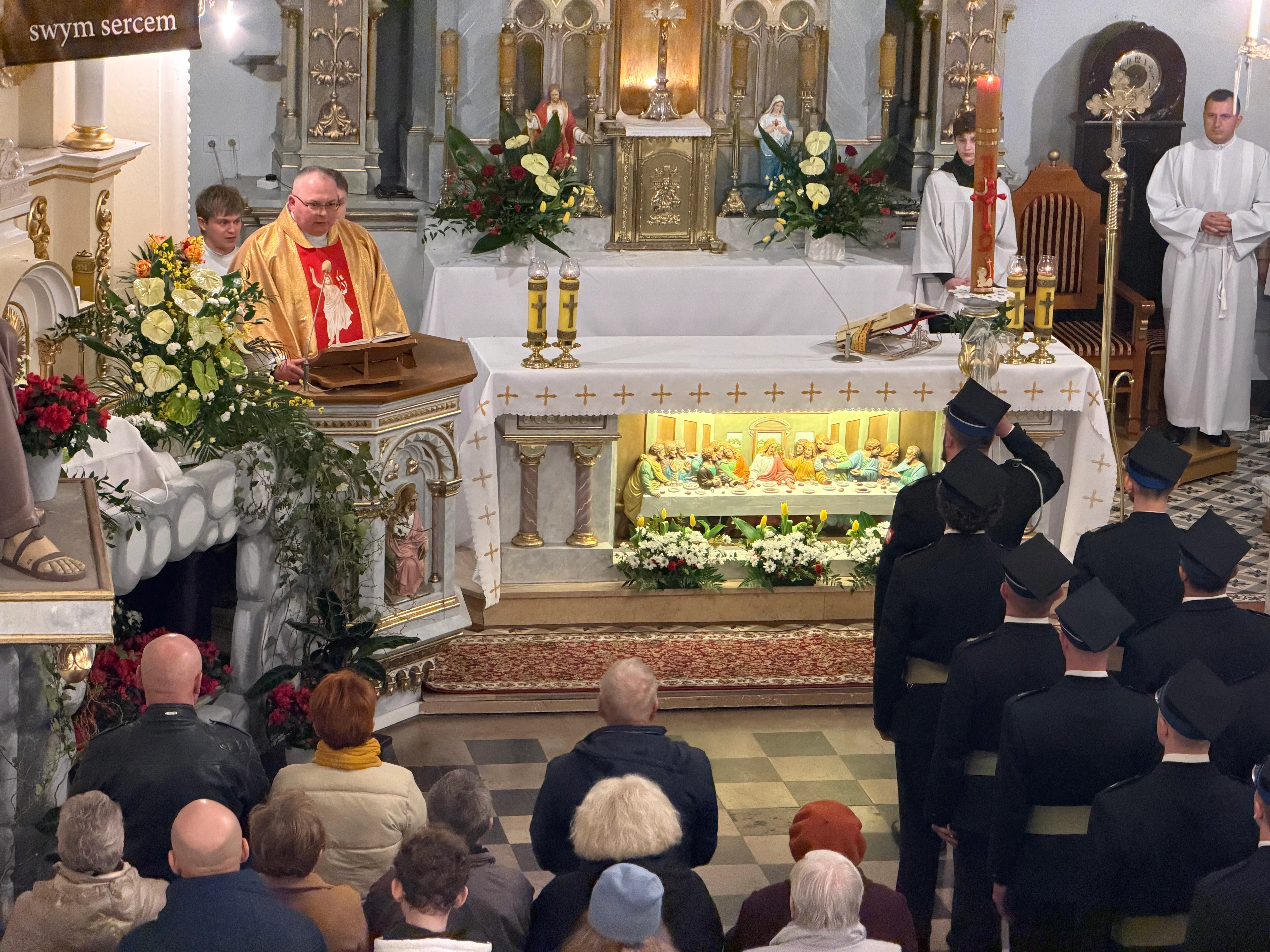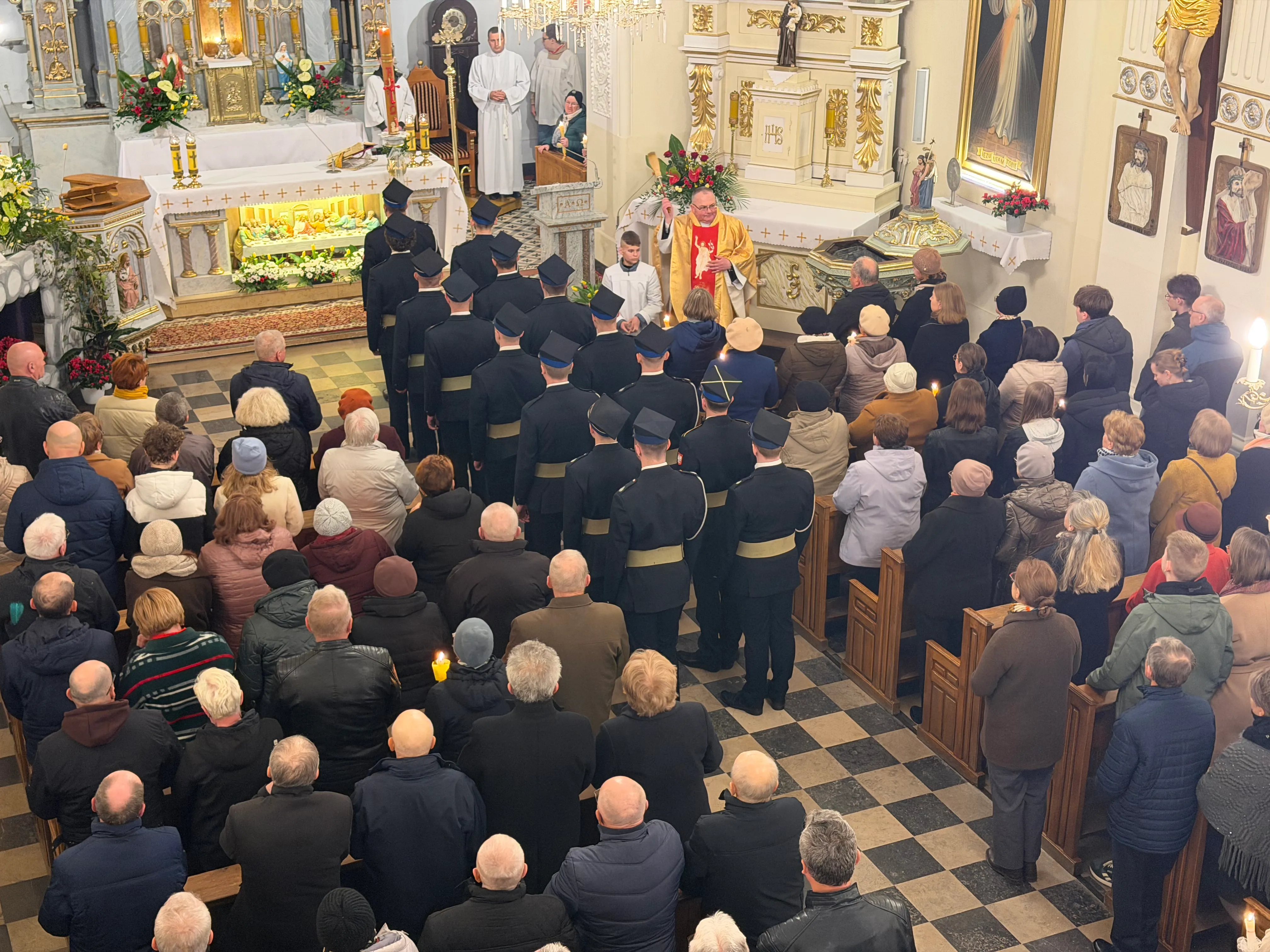 Wielka Sobota – to przedostatni dzień Wielkiego Tygodnia, poprzedzający święto Zmartwychwstania. W Kościele dzień ten jest dniem wyciszenia i oczekiwania na przyjście Chrystusa. Od wczesnych godzin rannych katolicy adorują Najświętszy Sakrament w Grobie Pańskim. Tradycyjnie w naszej parafii przy Grobie Pańskim czuwają dziewczynki, strażacy i parafianie. Tradycyjnie w tym dniu, przed południem błogosławi się pokarmy na stół wielkanocny.