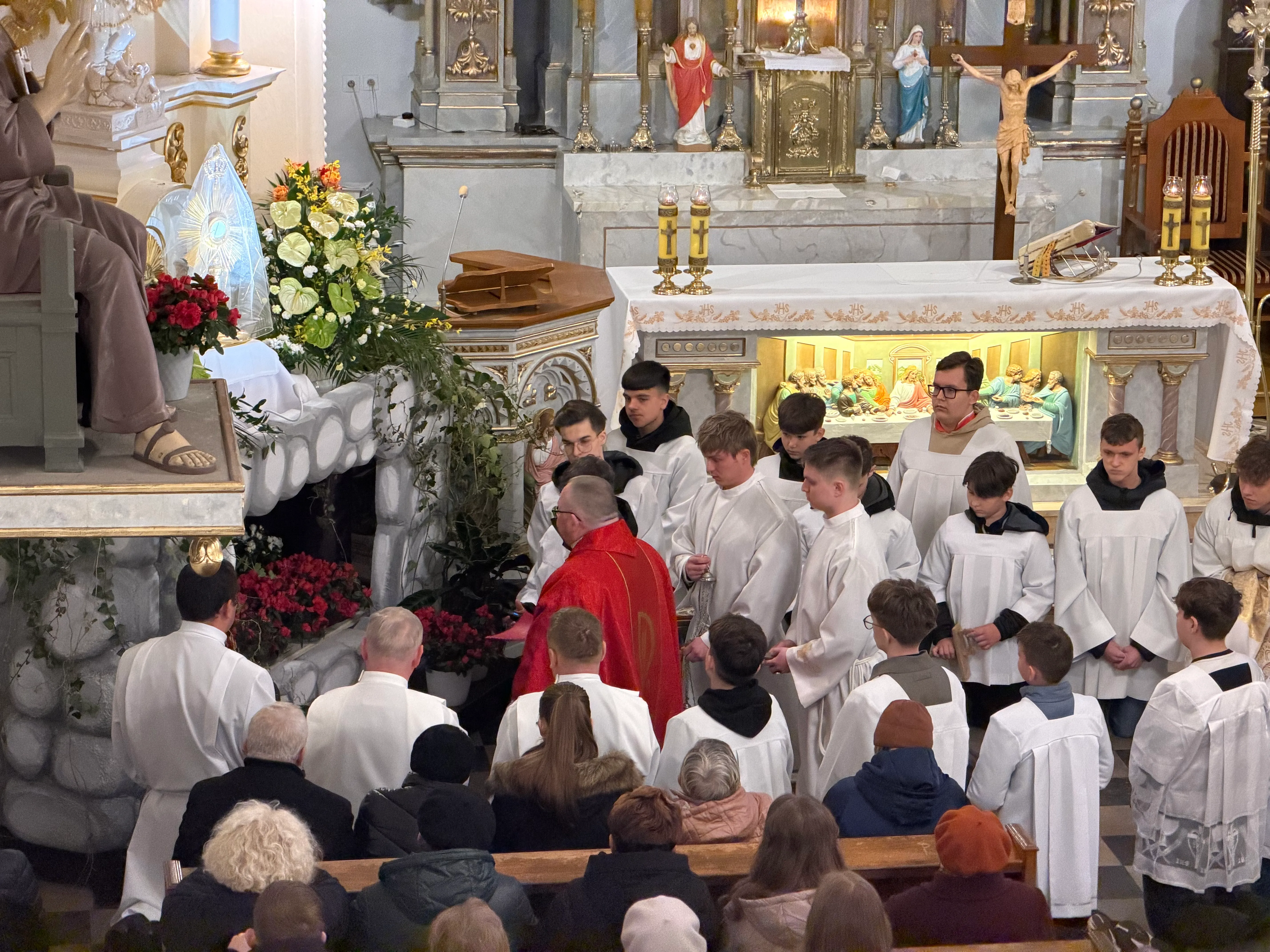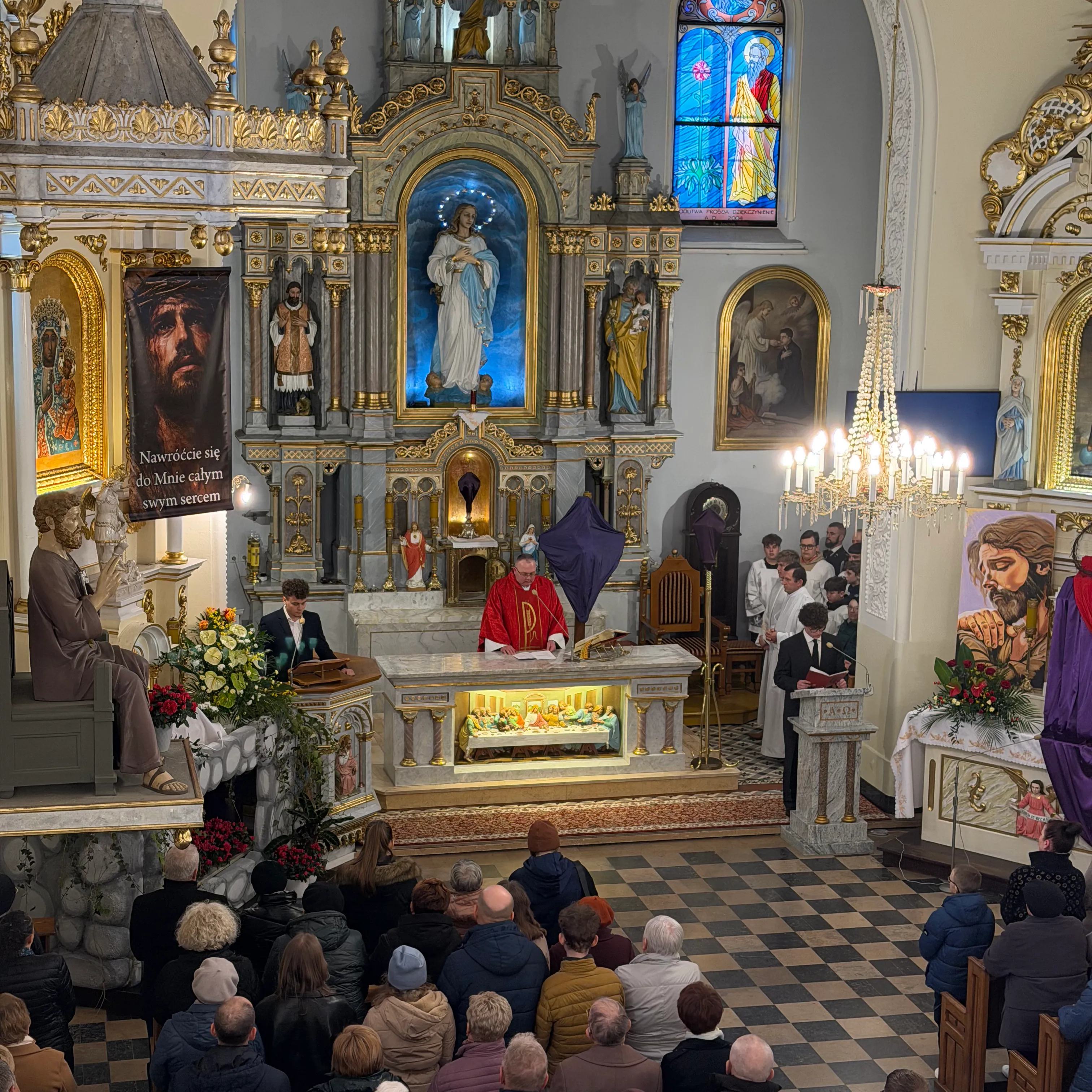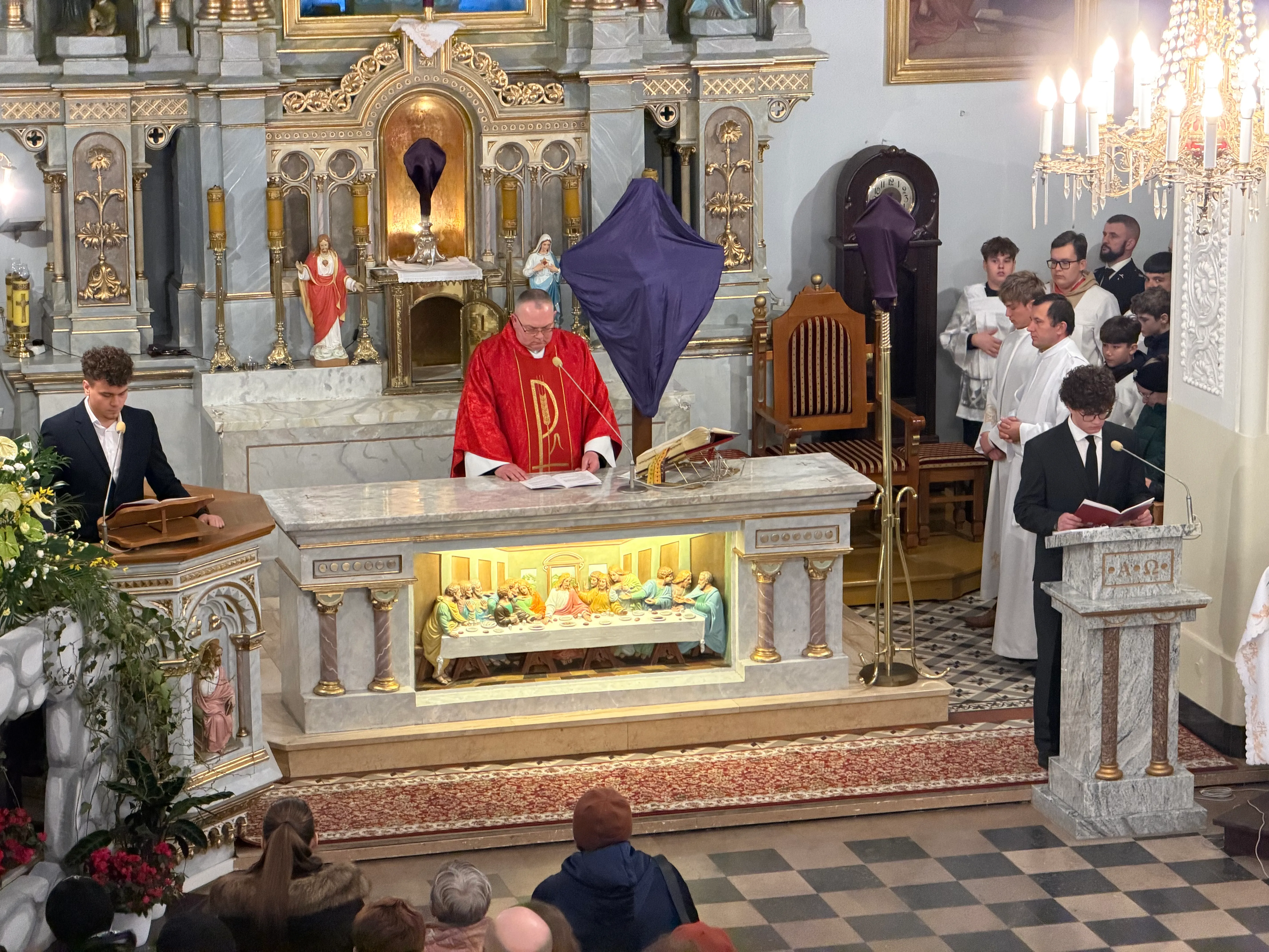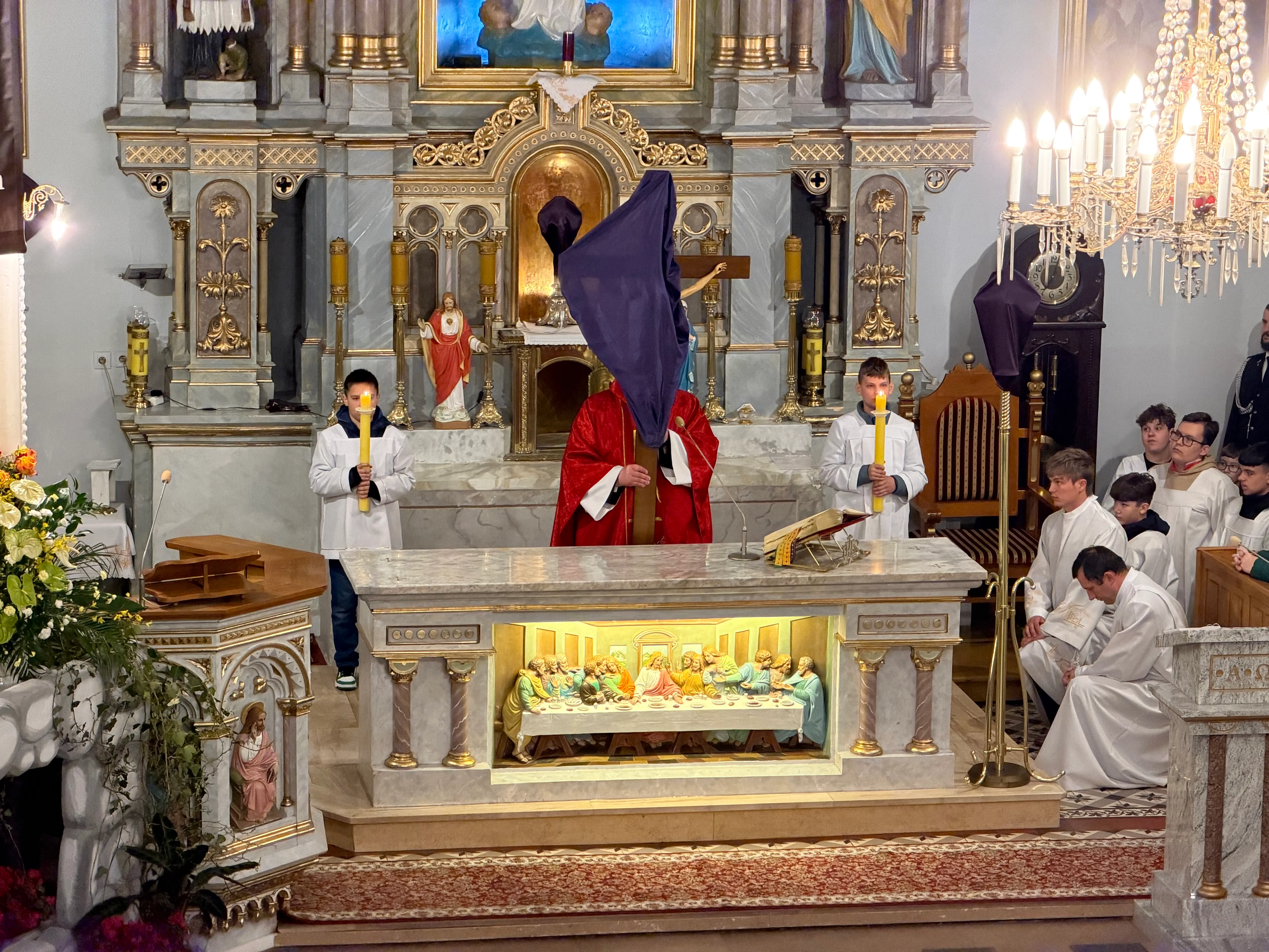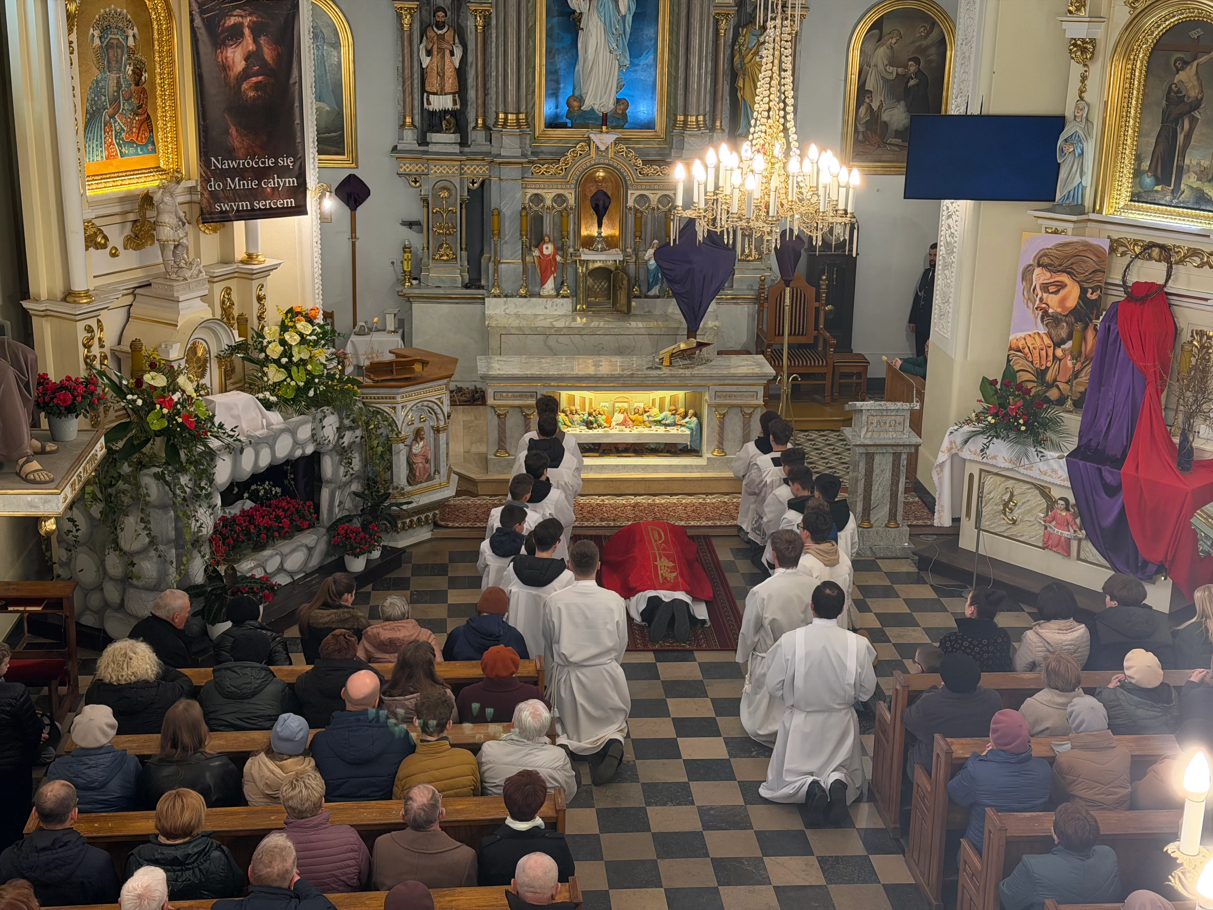 Ceremonię Wielkiego Piątku rozpoczęła Droga Krzyżowa. Wielkopiątkowa liturgia jest pamiątką zwycięstwa odniesionego przez umęczonego i ukrzyżowanego Jezusa Chrystusa. W tym dniu używa się czerwonych szat liturgicznych symbolizujących miłość zwyciężającą na krzyżu, ale nie odprawia się Mszy świętej. Liturgię rozpoczęła milcząca procesja. Kapłan dokonał aktu prostracji, czyli leżenia krzyżem, co jest znakiem najgłębszej adoracji, uniżenia i pokuty.