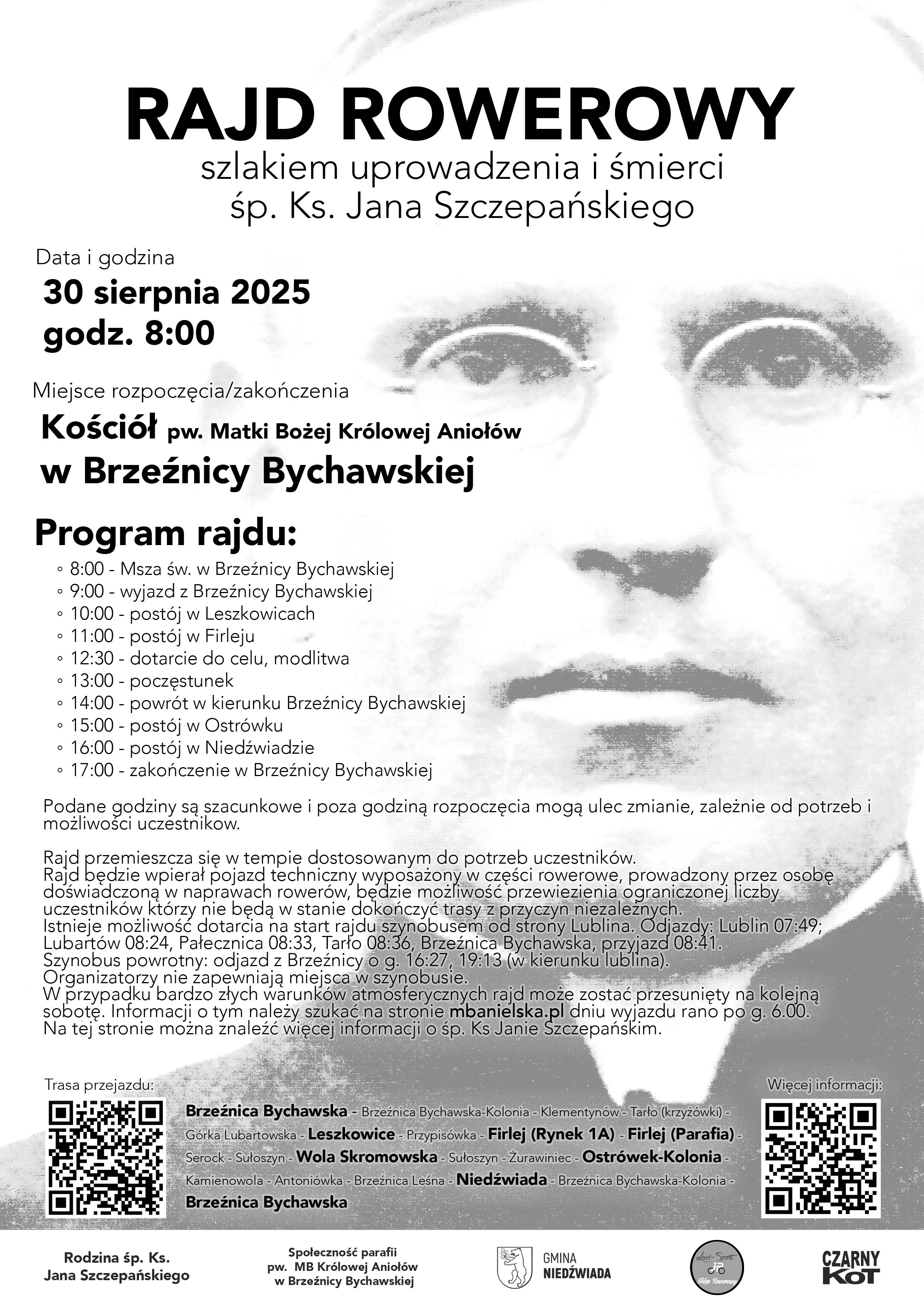 W sobotę 30-go sierpnia spod naszego kościoła wyruszy Rajd Rowerowy szlakiem uprowadzenia i śmierci śp. ks. Jana Szczepańskiego, proboszcza naszej parafii w latach 1947-48. Trasa prowadzi do Woli Skromowskiej nad rzekę Wieprz, gdzie zostało odnalezione ciało śp. ks. Jana.