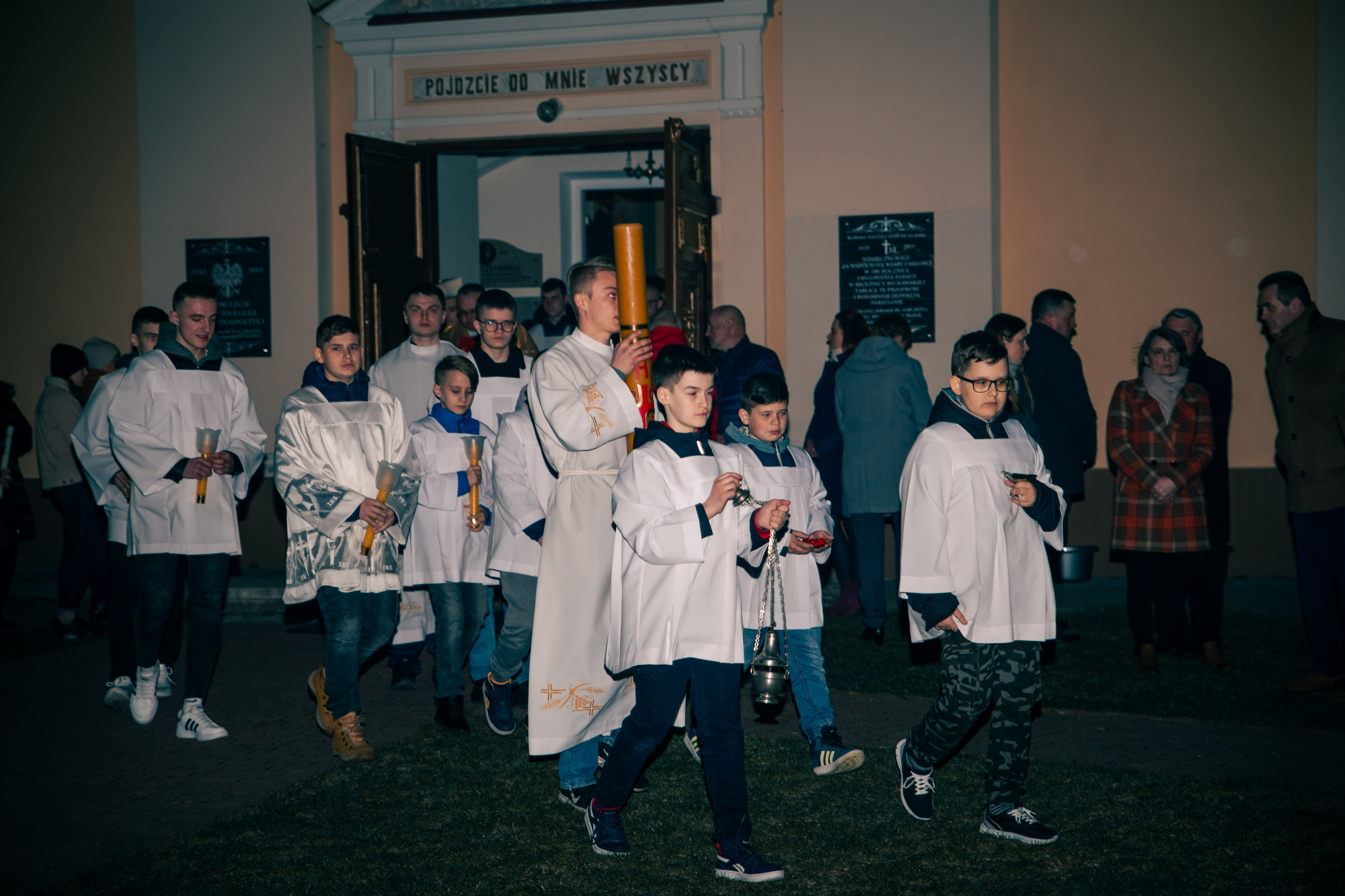 Wielka Sobota – to przedostatni dzień Wielkiego Tygodnia, poprzedzający święto Zmartwychwstania. W Kościele dzień ten jest dniem wyciszenia i oczekiwania na przyjście Chrystusa. Od wczesnych godzin rannych katolicy adorują Najświętszy Sakrament w Grobie Pańskim. Tradycyjnie w naszej parafii przy Grobie Pańskim czuwają dziewczynki, strażacy i parafianie. Tradycyjnie w tym dniu, przed południem błogosławi się pokarmy na stół wielkanocny.