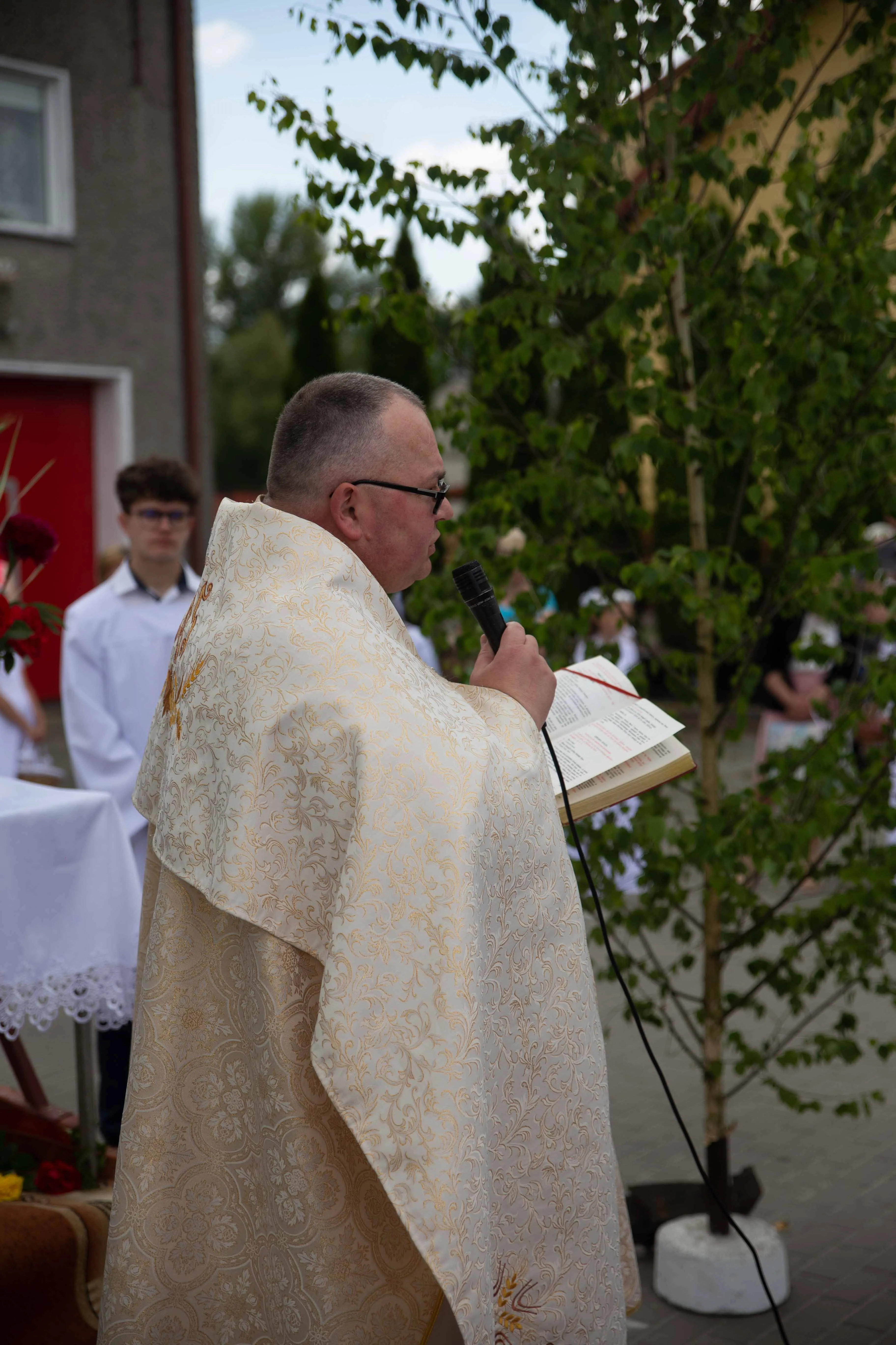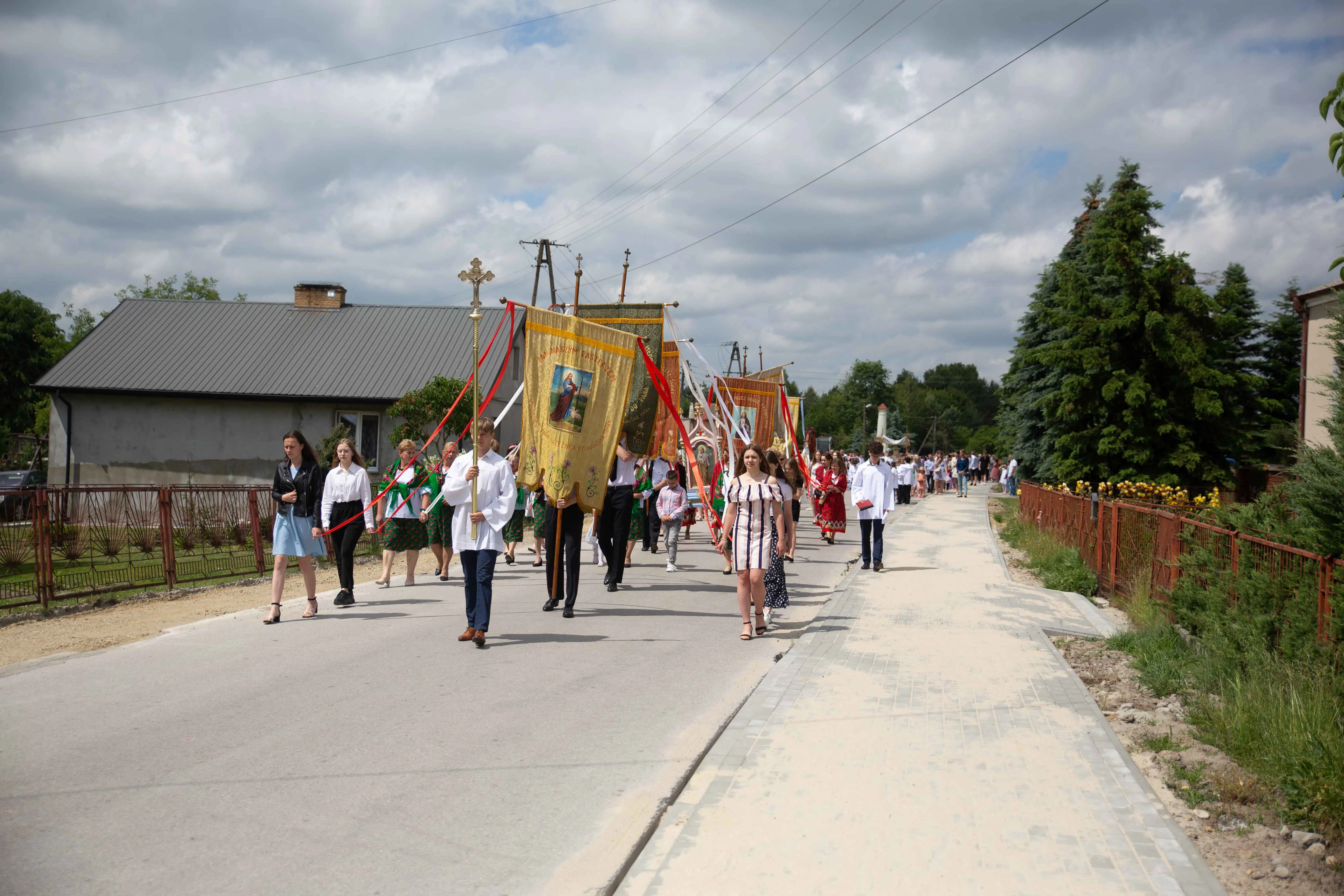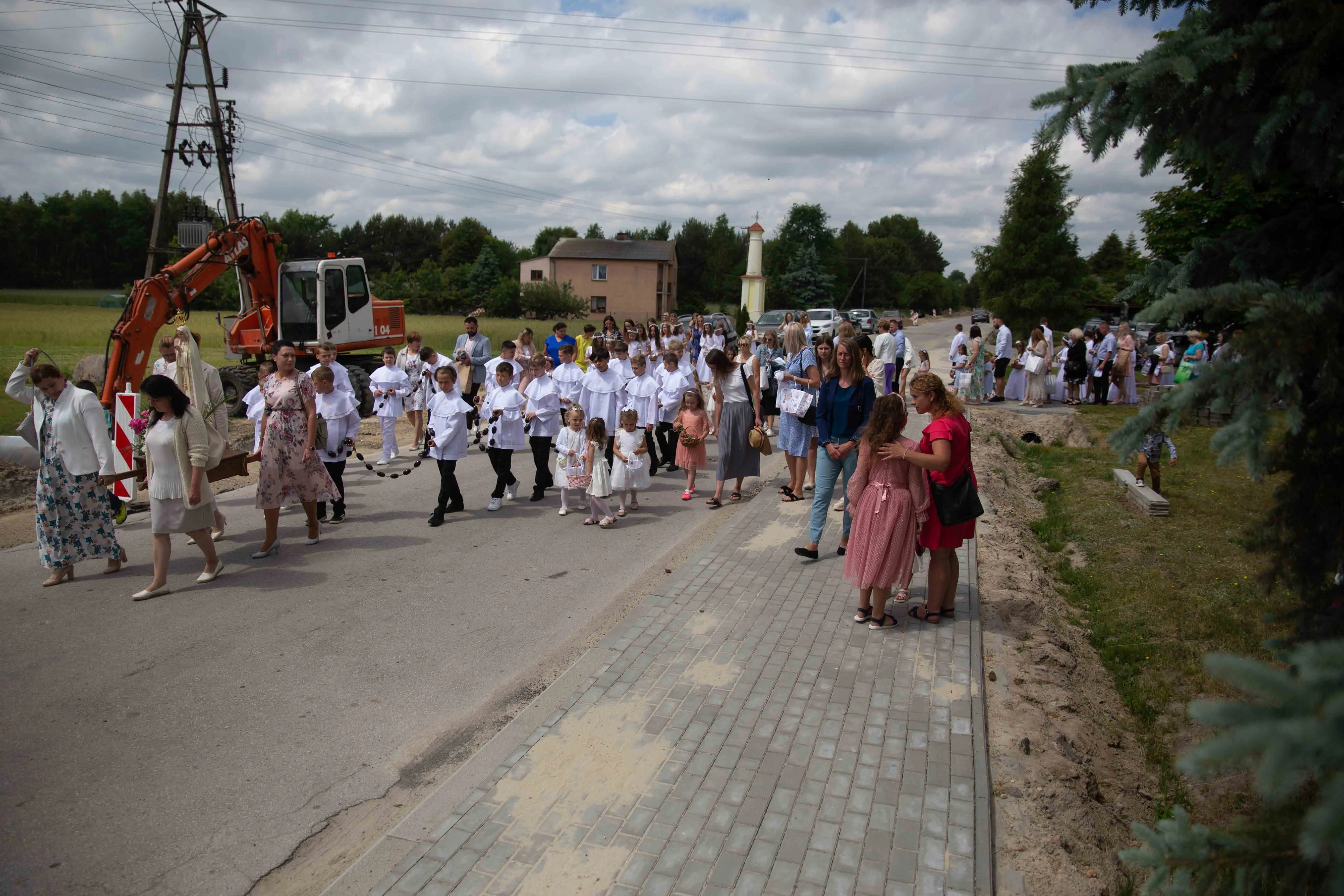 Przy dźwiękach dzwonów, ze śpiewem na ustach barwny orszak procesyjny przemierzał trasę do ustawionych, w tych samych miejscach, co w latach poprzednich, czterech ołtarzy, przygotowanych kolejno przez parafian. Obecne były dzieci pierwszokomunijne i dzieci obchodzące I rocznicę Komunii św. ubrane w białe stroje, dziewczynki sypiące wielobarwne kwiaty, chłopcy w komżach nieśli różaniec. Niesiono kościelne chorągwie i feretrony oraz figurę Matki Bożej Fatimskiej. Przy każdym z ołtarzy kapłan czytał fragmenty poszczególnych Ewangelii. Śpiewano suplikacje, hymn "Ciebie Boga wysławiamy", a na zakończenie ksiądz proboszcz pobłogosławił uczestników procesji Najświętszym Sakramentem. Na zakończenie podziękował za przygotowanie ołtarzy, za udział w procesji i jej uświetnienie przez, strażaków, młodzież, Koła Gospodyń i dzieci.