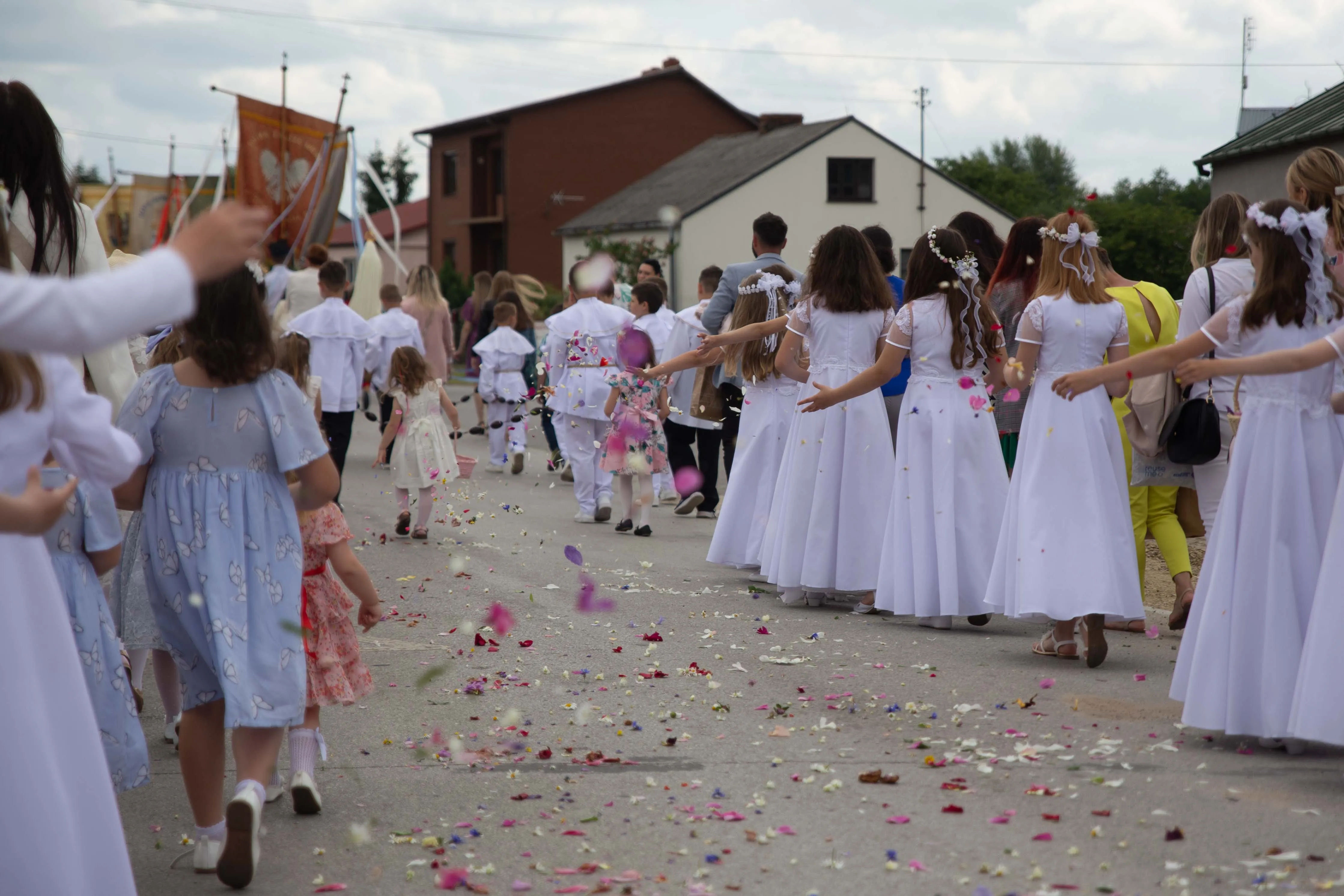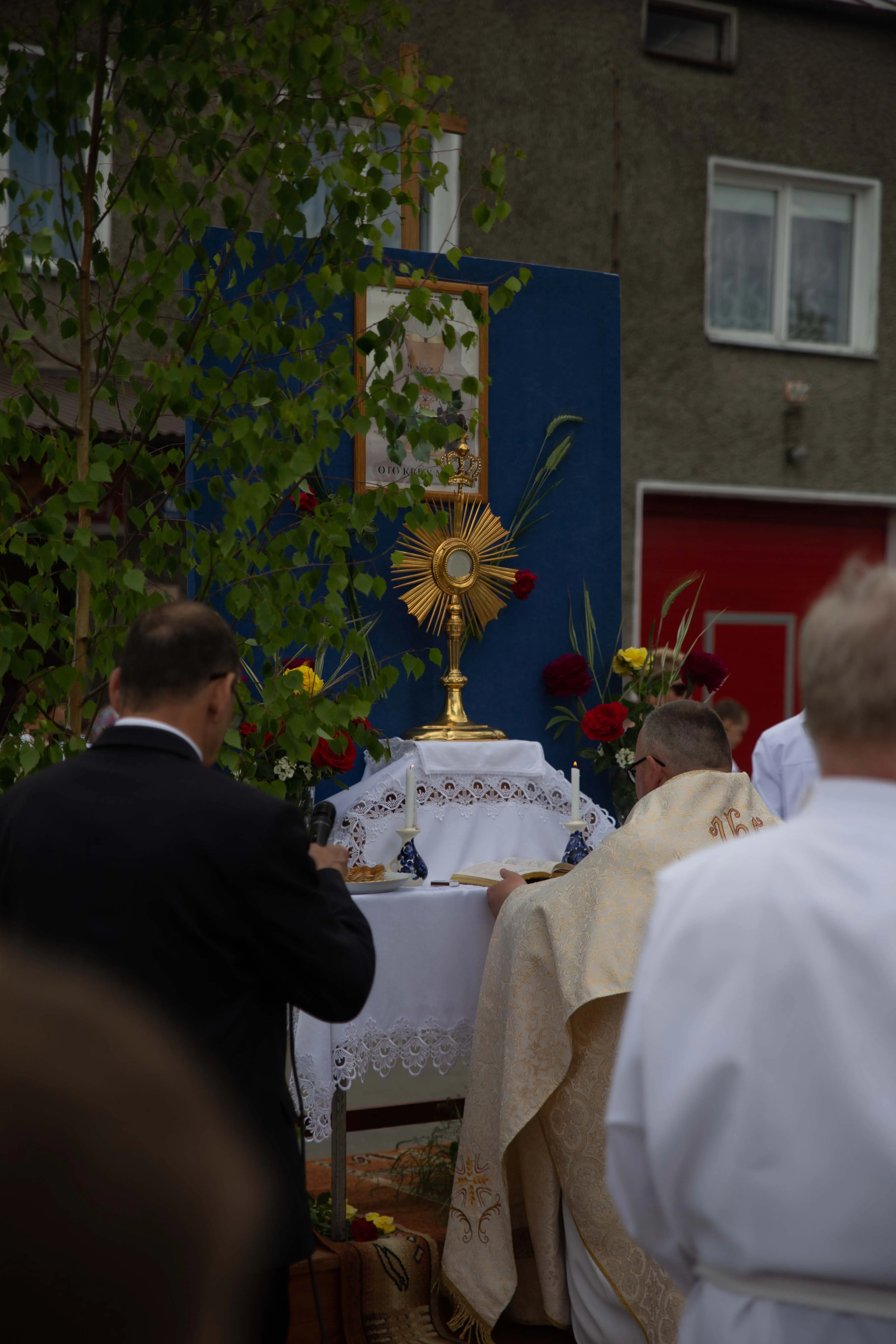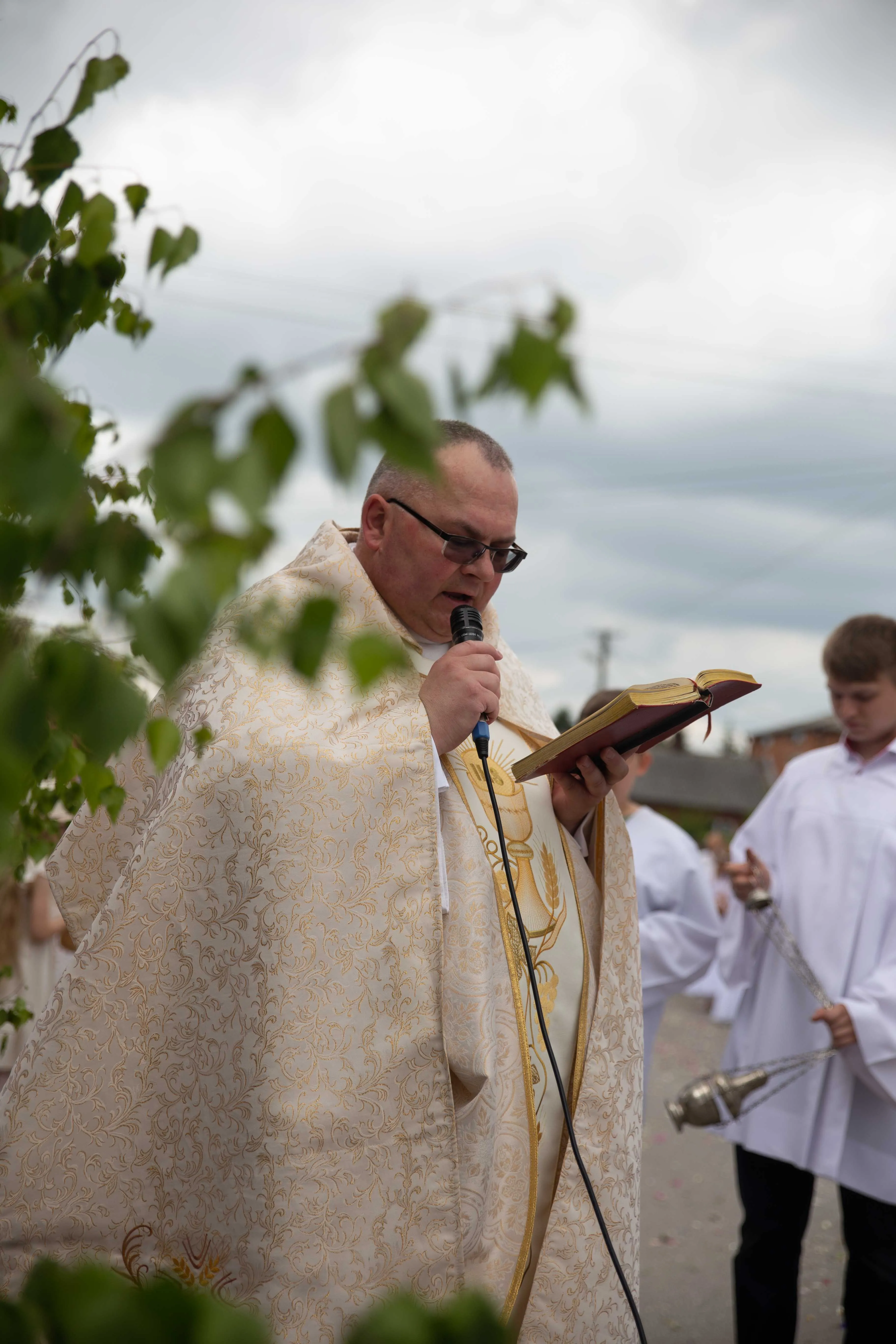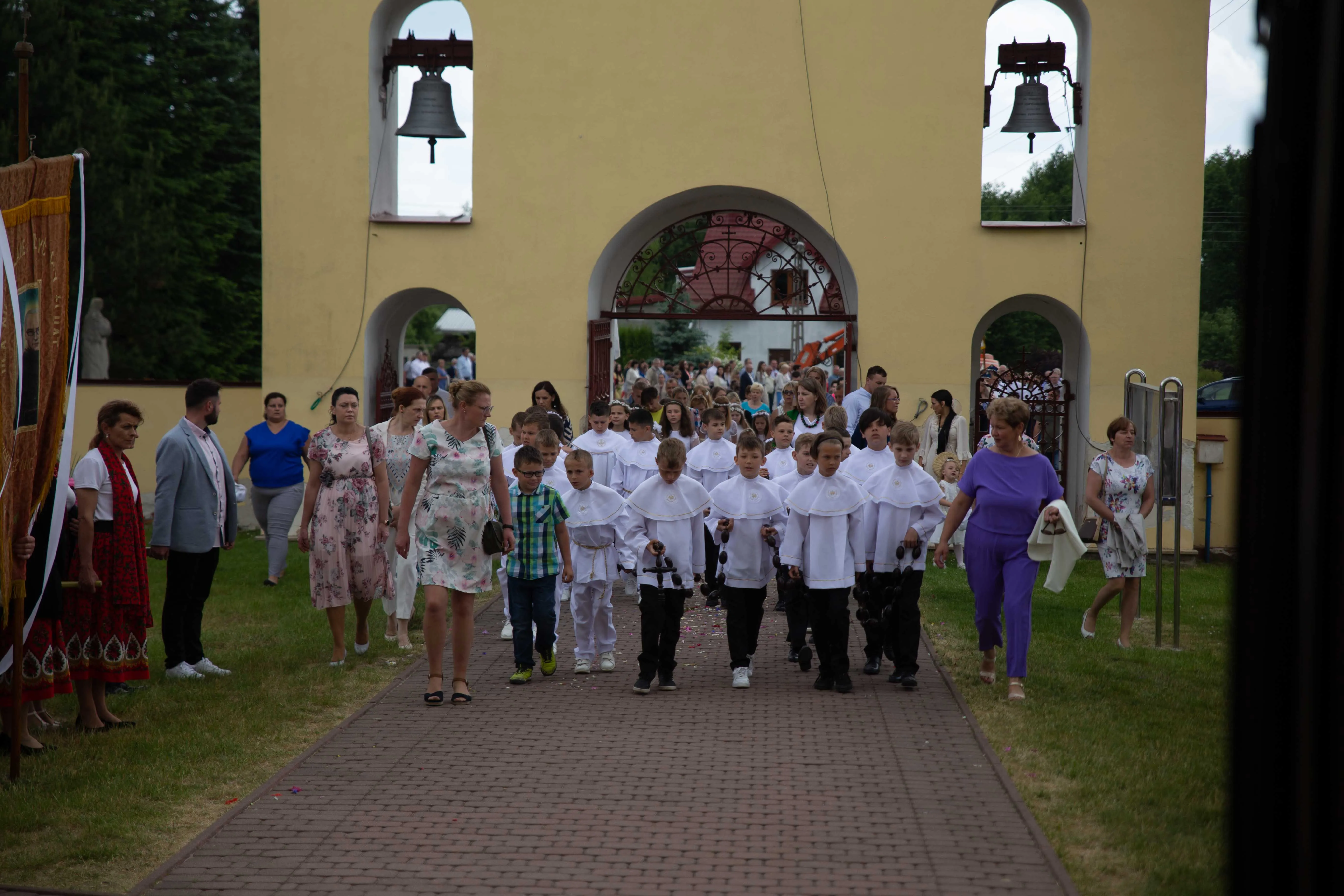 Przy dźwiękach dzwonów, ze śpiewem na ustach barwny orszak procesyjny przemierzał trasę do ustawionych, w tych samych miejscach, co w latach poprzednich, czterech ołtarzy, przygotowanych kolejno przez parafian. Obecne były dzieci pierwszokomunijne i dzieci obchodzące I rocznicę Komunii św. ubrane w białe stroje, dziewczynki sypiące wielobarwne kwiaty, chłopcy w komżach nieśli różaniec. Niesiono kościelne chorągwie i feretrony oraz figurę Matki Bożej Fatimskiej. Przy każdym z ołtarzy kapłan czytał fragmenty poszczególnych Ewangelii. Śpiewano suplikacje, hymn "Ciebie Boga wysławiamy", a na zakończenie ksiądz proboszcz pobłogosławił uczestników procesji Najświętszym Sakramentem. Na zakończenie podziękował za przygotowanie ołtarzy, za udział w procesji i jej uświetnienie przez, strażaków, młodzież, Koła Gospodyń i dzieci.