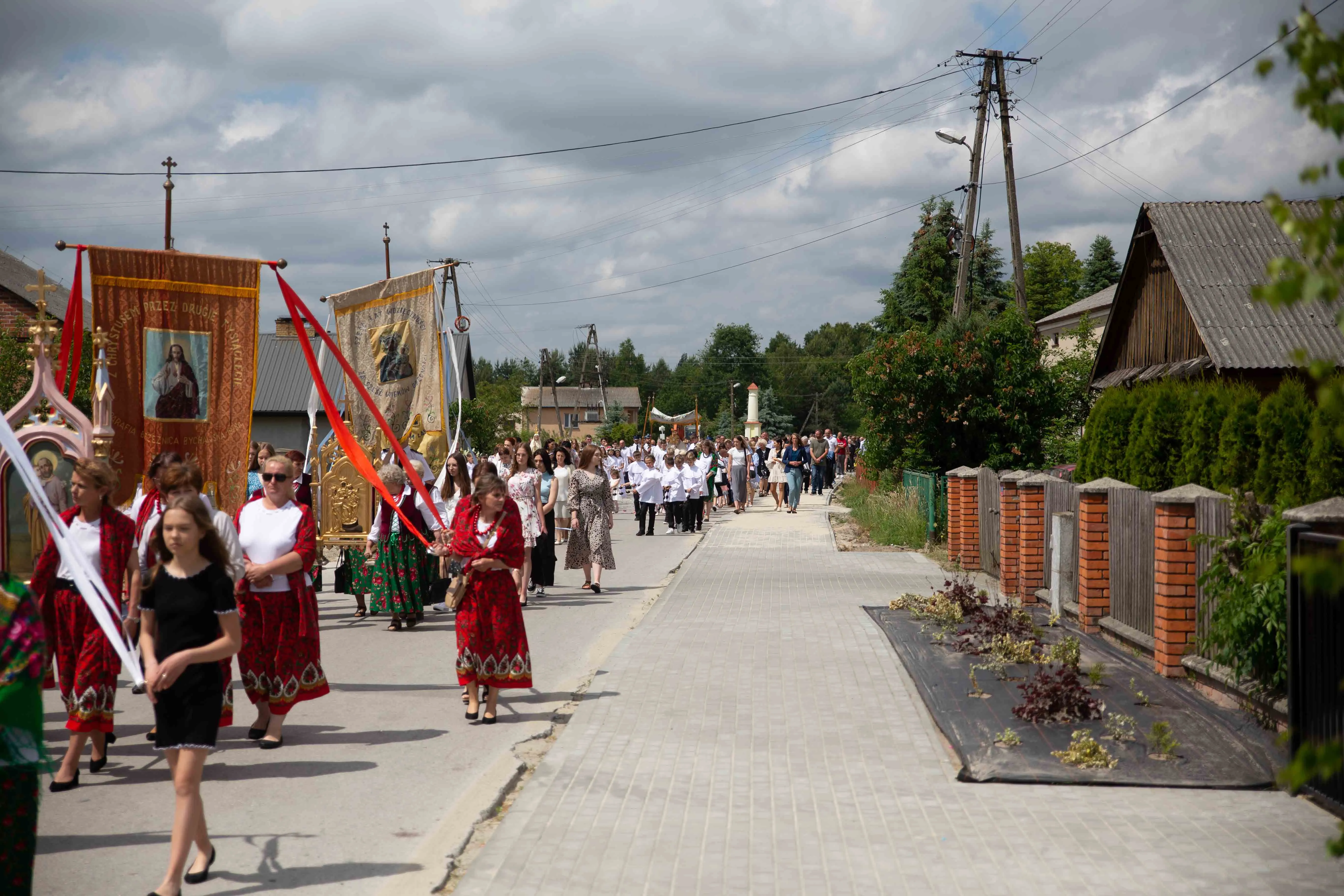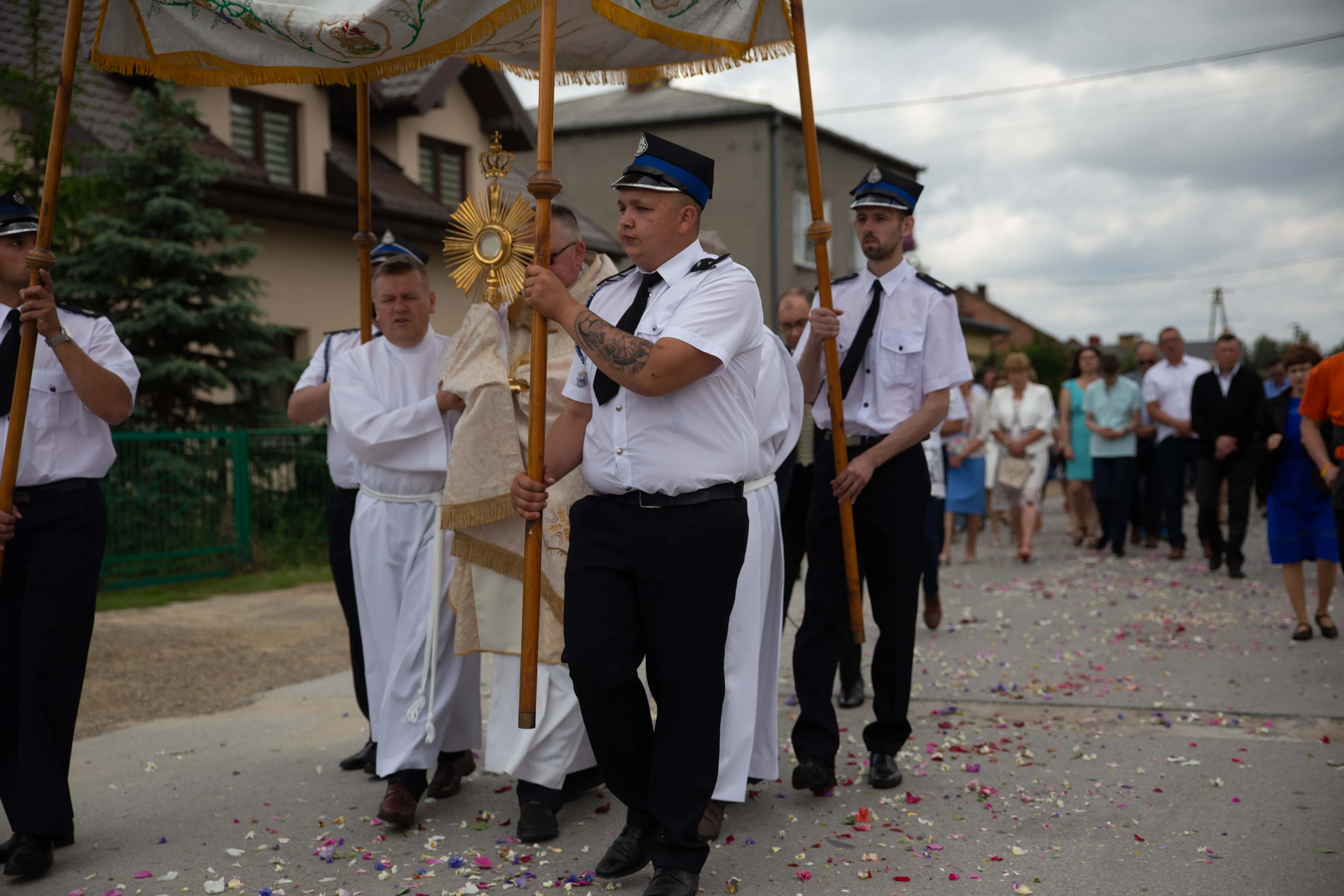 Uroczysta Msza św. w czwartek Bożego Ciała, który w tym roku wypadła na 8 czerwca, została odprawiona o godz. 10.00 pod przewodnictwem ks. Grzegorza Warchuła. Po zakończeniu Mszy świętej i wystawieniu Najświętszego Sakramentu z kościoła wyszła procesja, zabezpieczana przez strażaków OSP w Brzeźnicy Bychawskiej, którzy także nieśli baldachim oraz wspólnie z druhami z OSP z Berejowa asystowali w strażackim pododdziale.