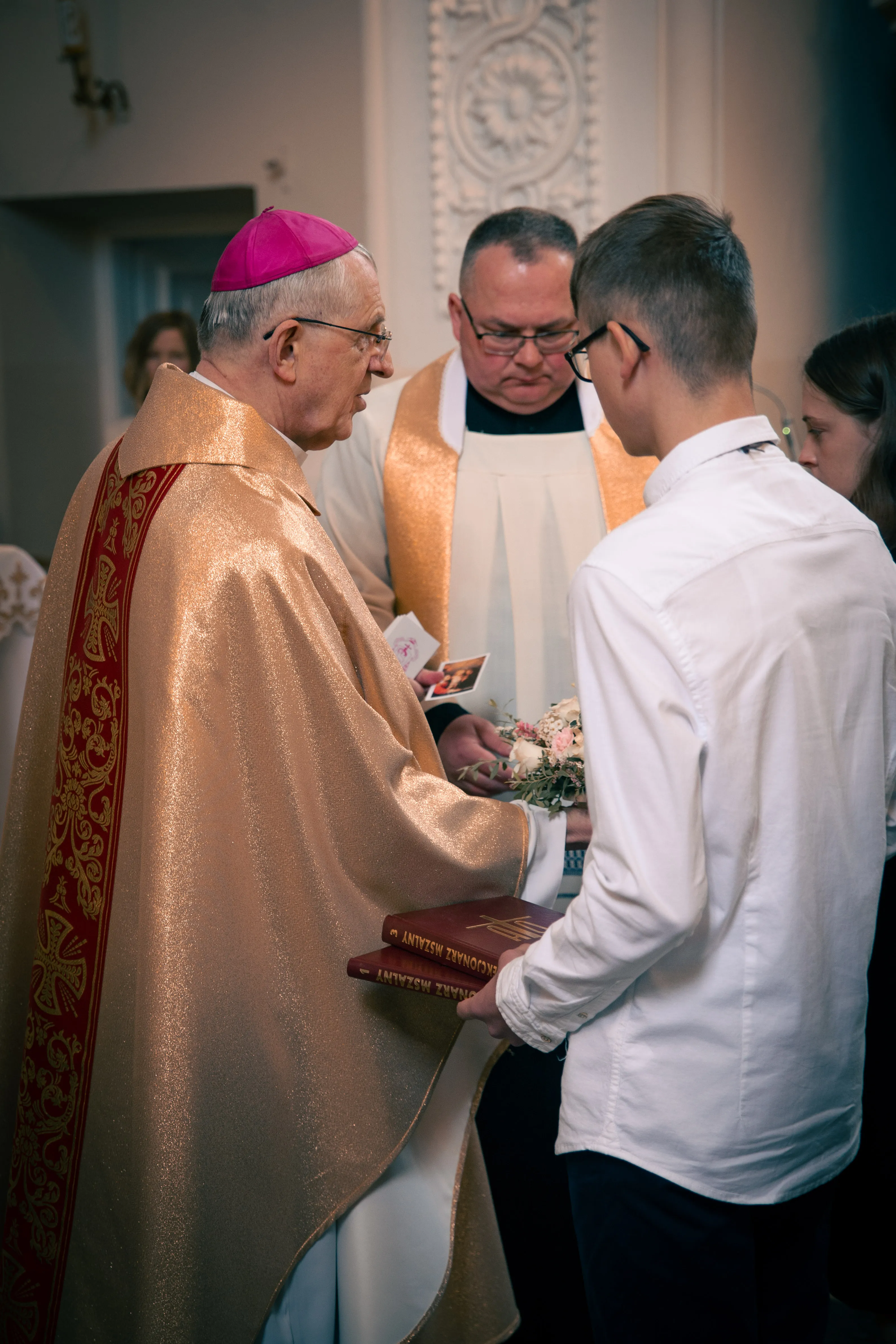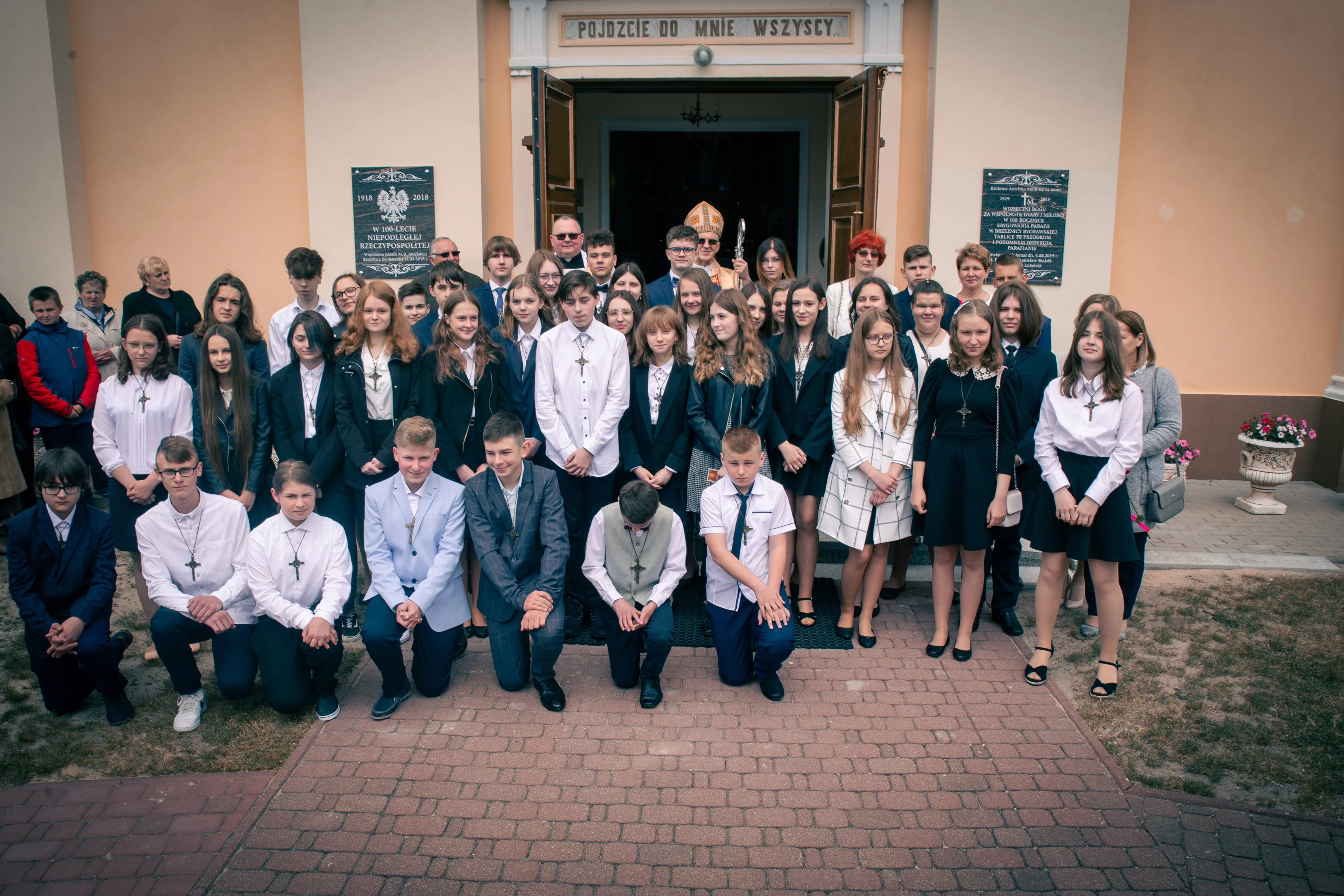 W niedzielę 29.05.2022 r. uczniowie klas siódmych i ósmych z naszej parafii, otrzymali sakrament bierzmowania. Tym samym stali się dojrzałymi członkami wpólnoty Kościoła. W uroczystosci uczestniczyli równiez bliscy otrzymujących sakrament, ich opiekunowie i nauczyciele.
