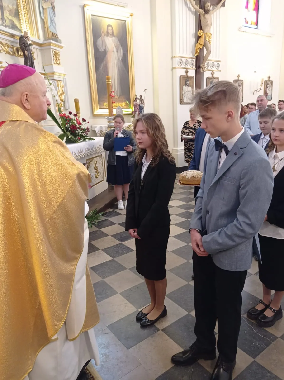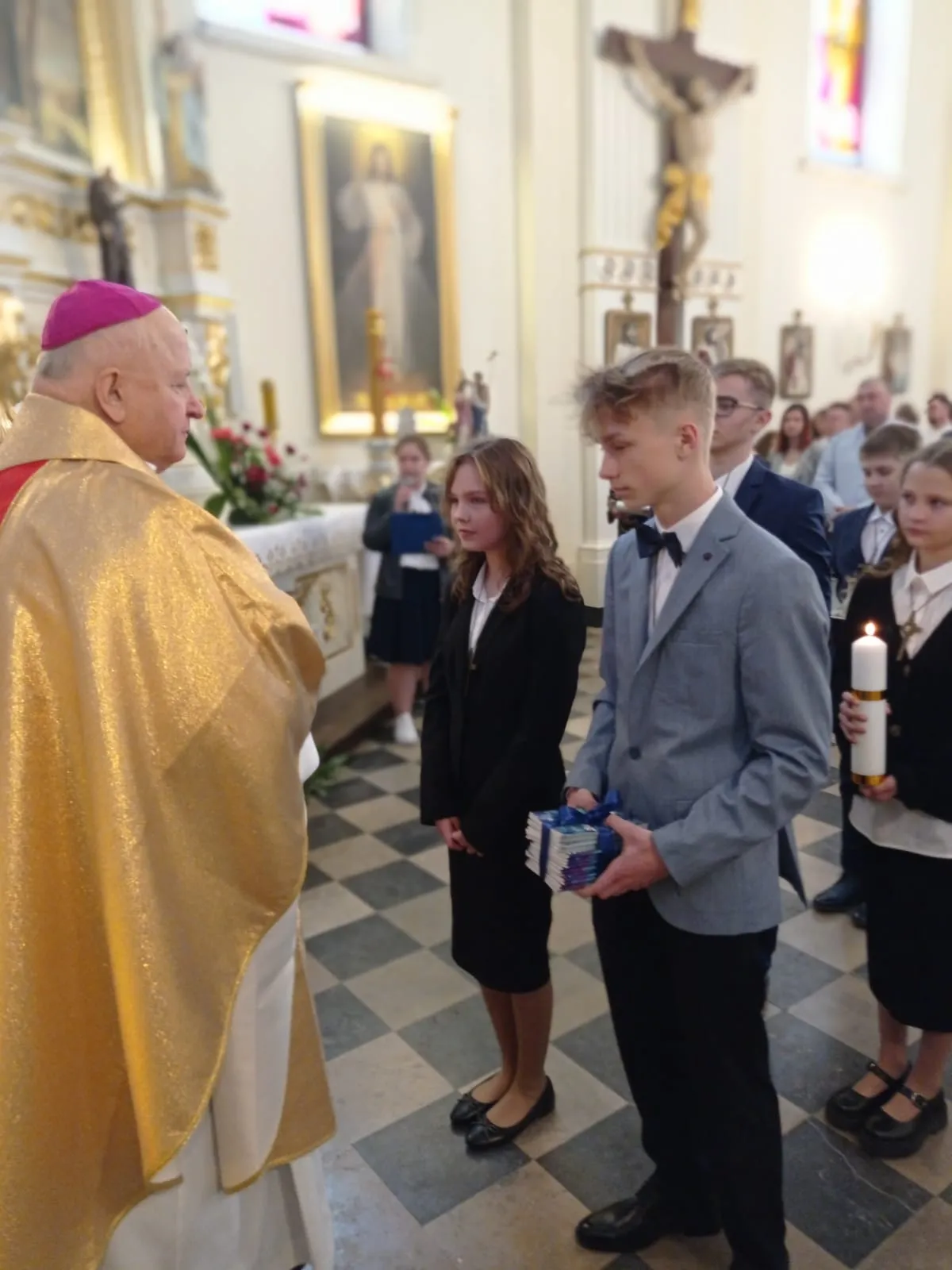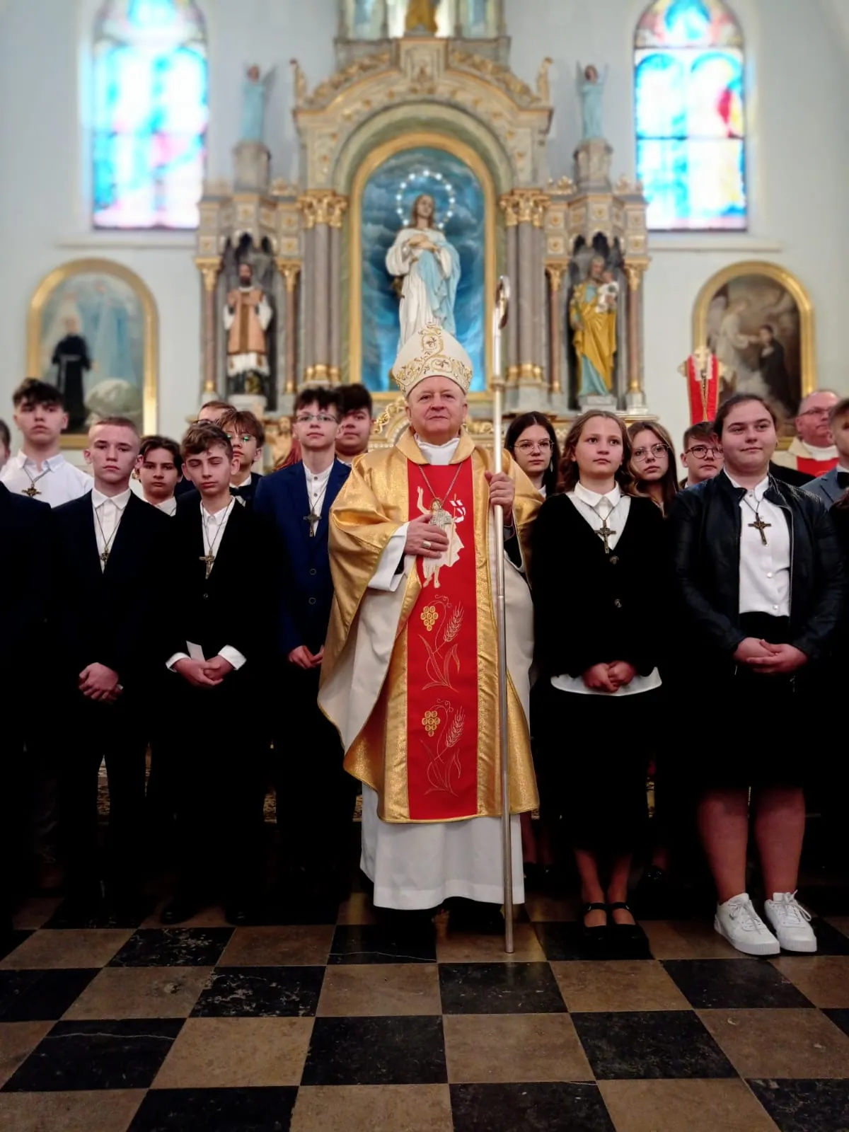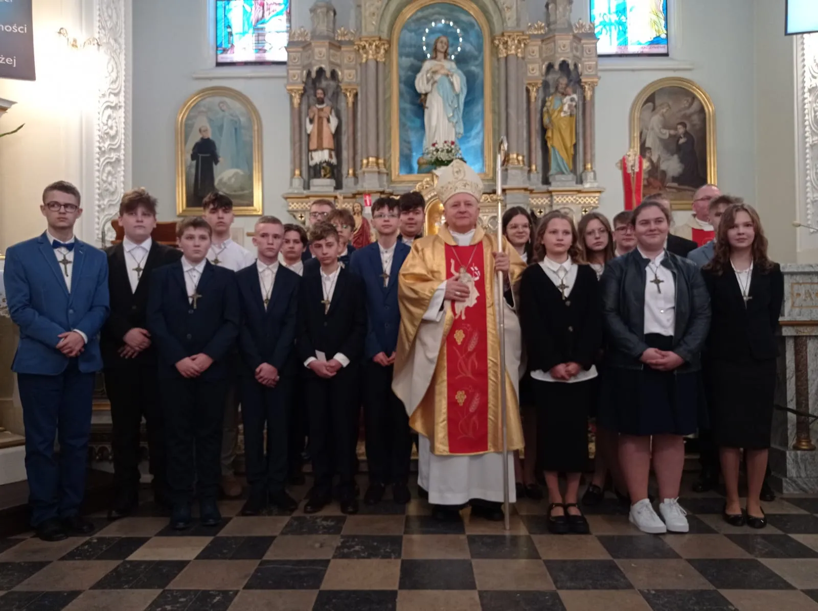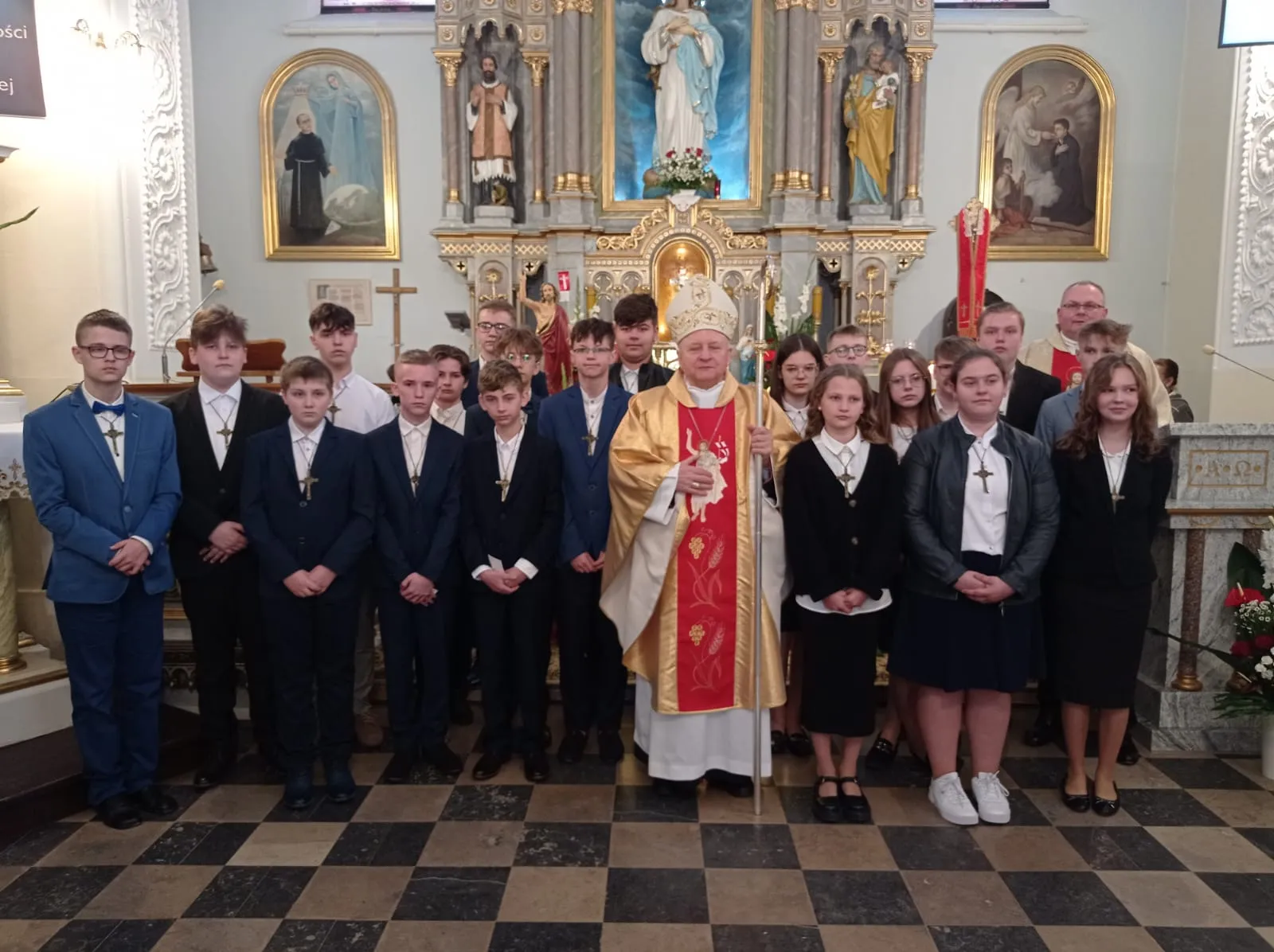 W niedzielę, 12 maja 2024 r. podczas Mszy św. o godz. 10.00 ks. bp Jóżef Wróbel udzielił sakramentu bierzmowania naszej młodzieży z klasy 7 i 8 oraz trojgu młodym uczniom z innej szkoły, łącznie sakrament bierzmowania przyjęło 20 osób.