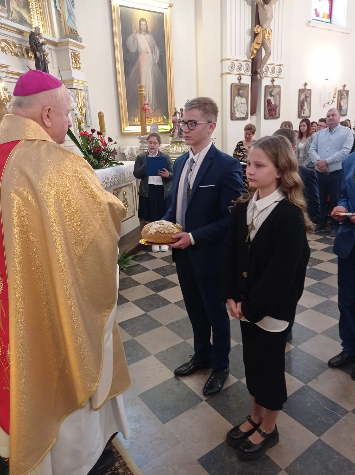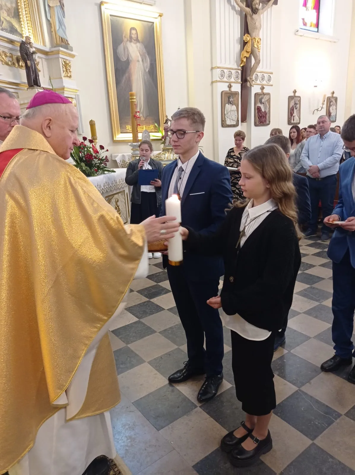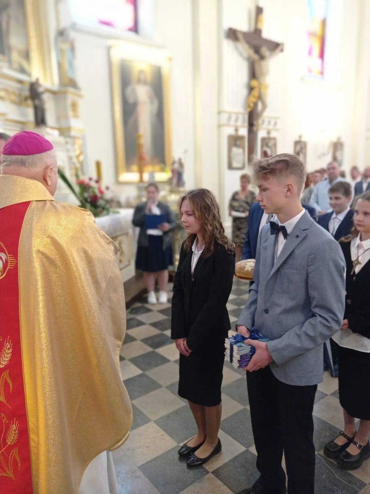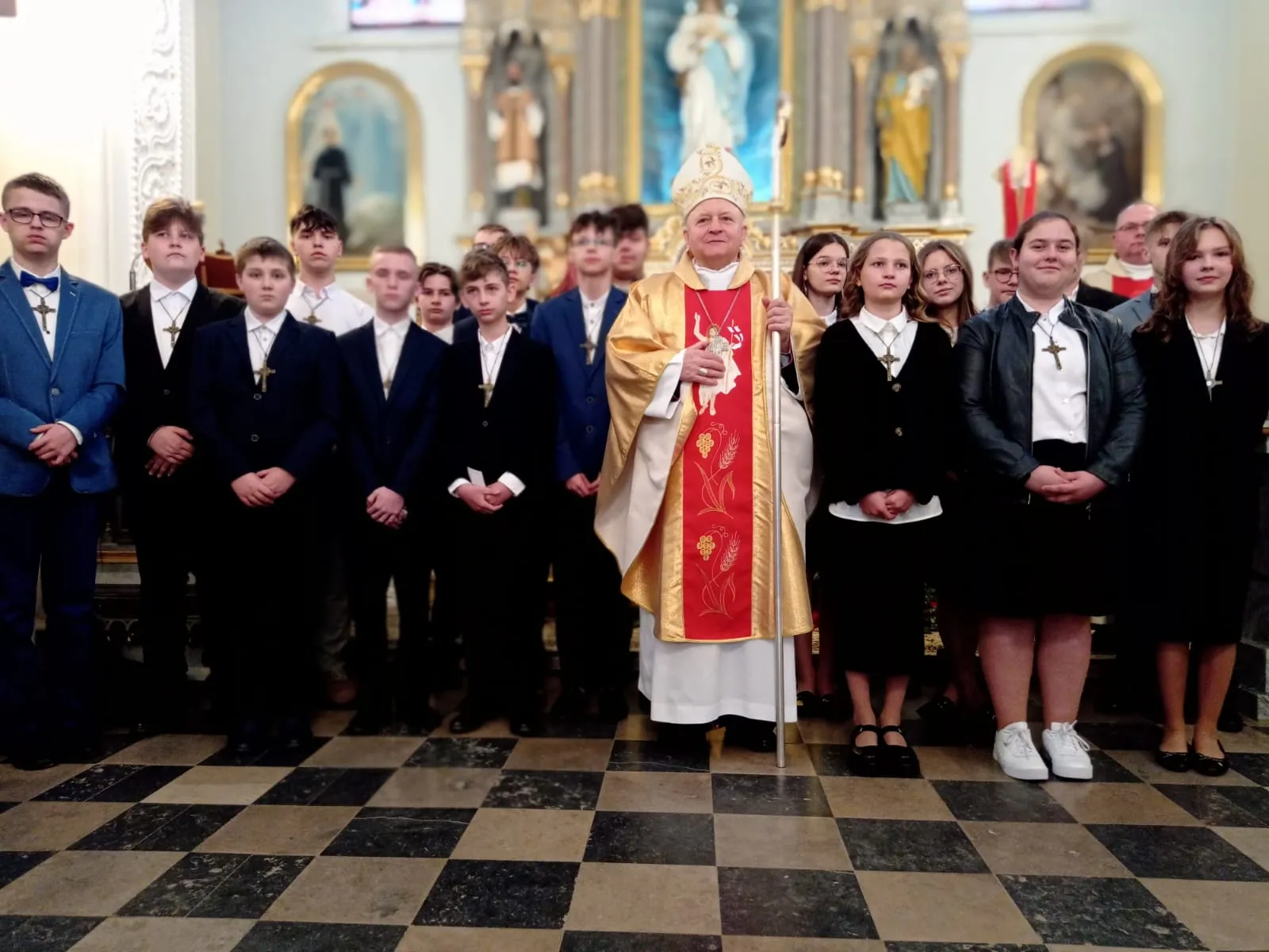 W niedzielę, 12 maja 2024 r. podczas Mszy św. o godz. 10.00 ks. bp Jóżef Wróbel udzielił sakramentu bierzmowania naszej młodzieży z klasy 7 i 8 oraz trojgu młodym uczniom z innej szkoły, łącznie sakrament bierzmowania przyjęło 20 osób.