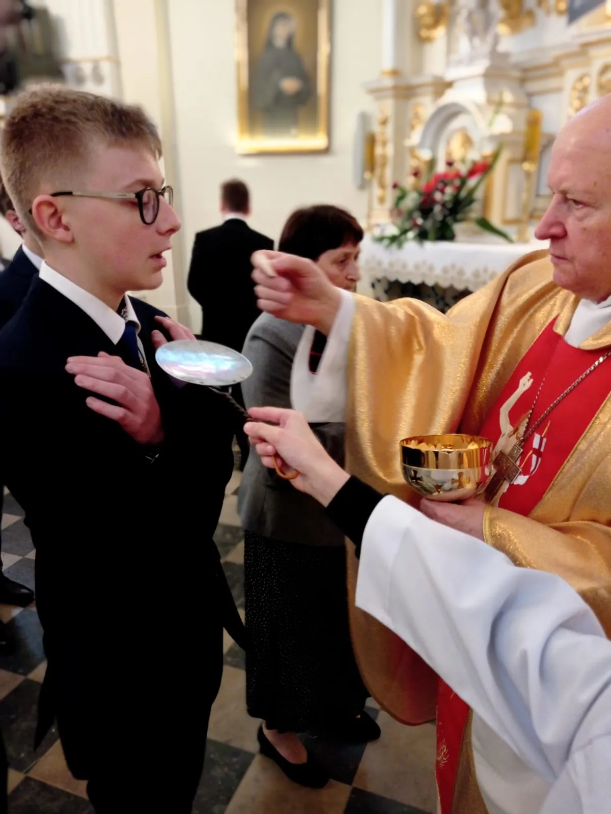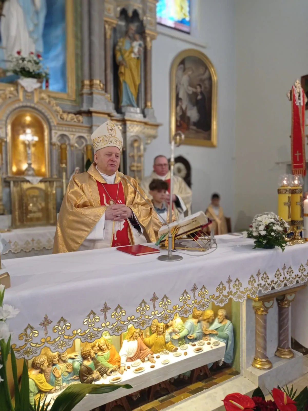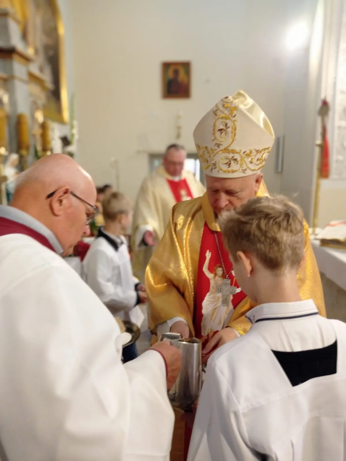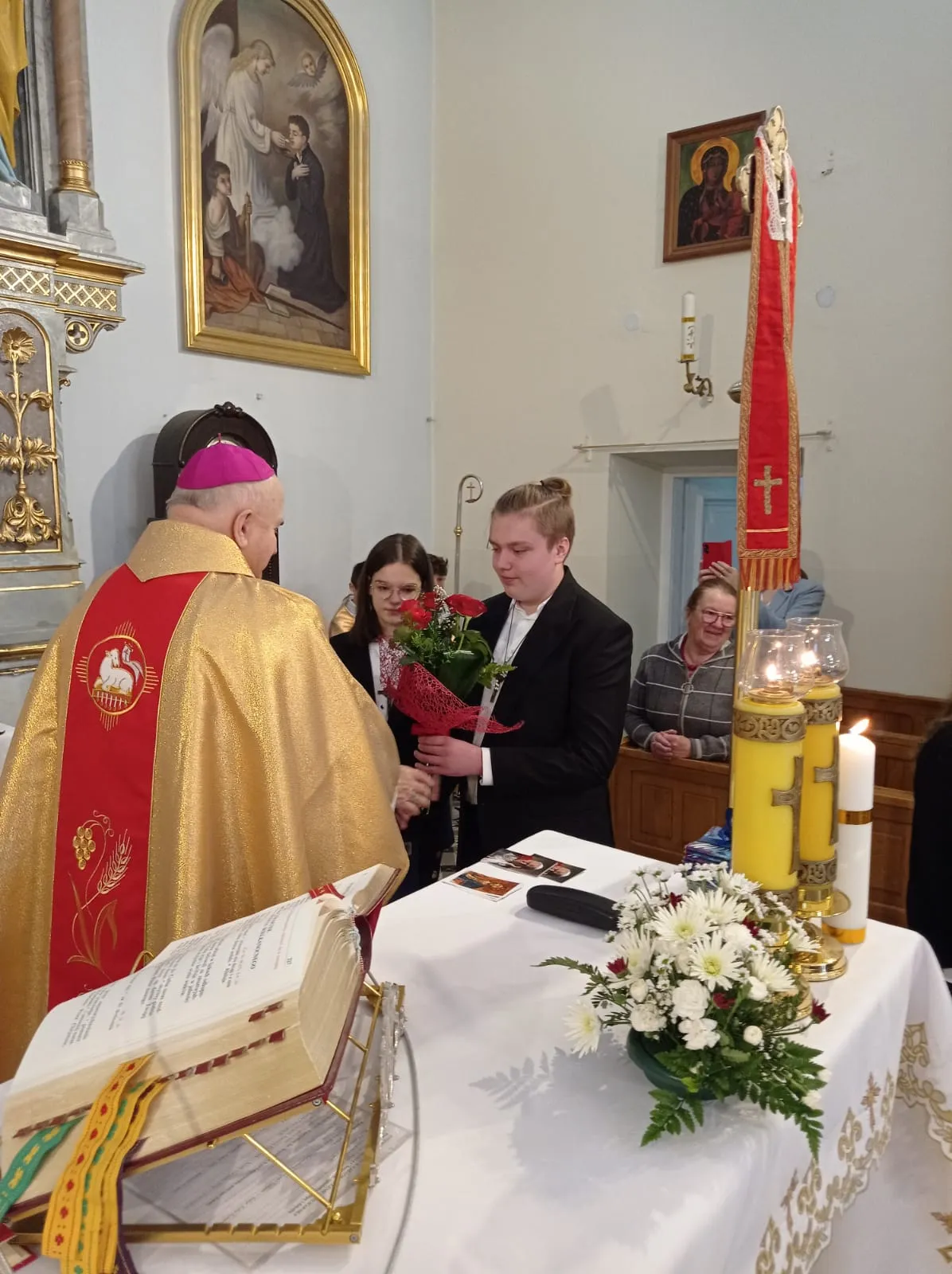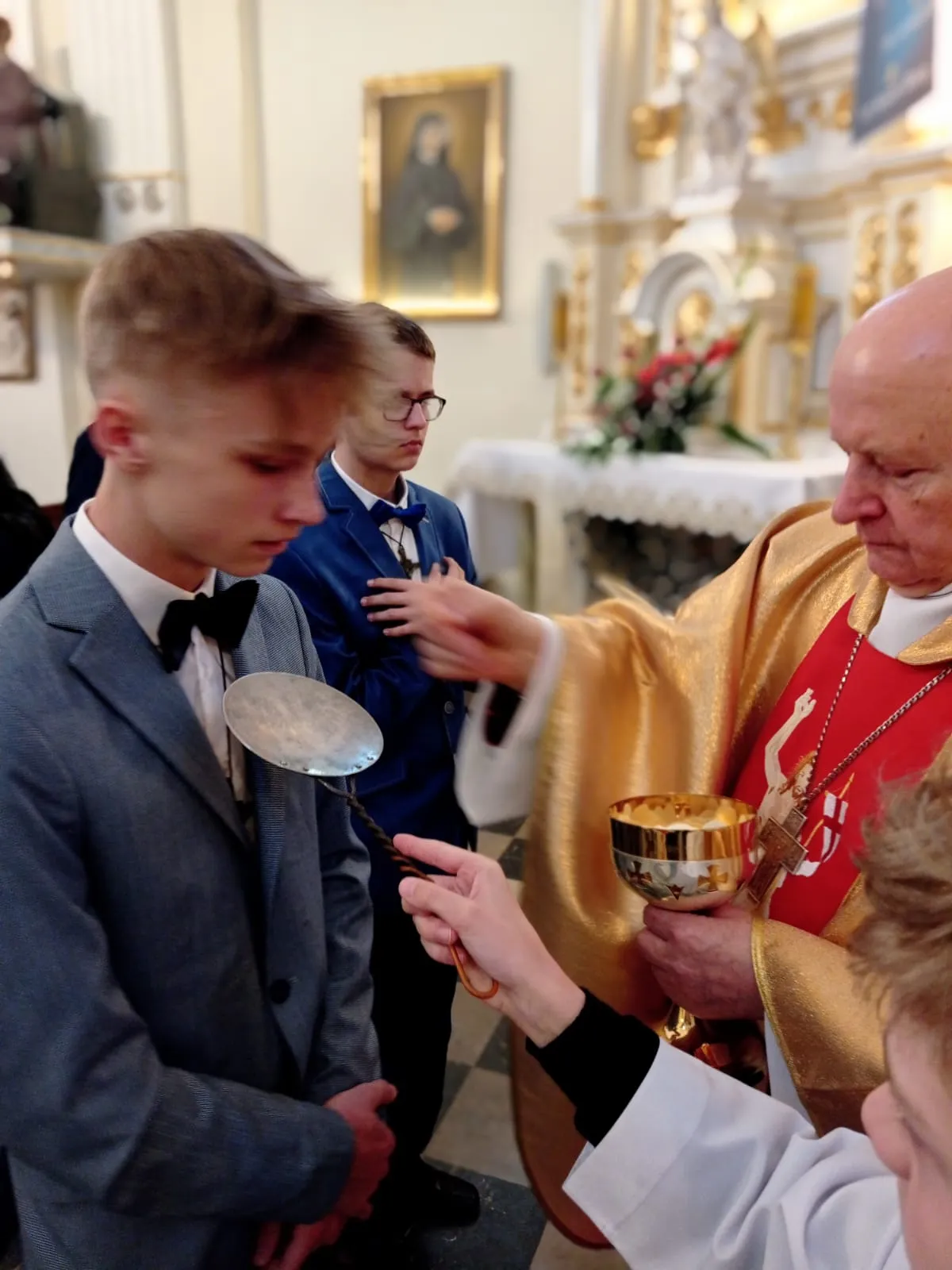 W niedzielę, 12 maja 2024 r. podczas Mszy św. o godz. 10.00 ks. bp Jóżef Wróbel udzielił sakramentu bierzmowania naszej młodzieży z klasy 7 i 8 oraz trojgu młodym uczniom z innej szkoły, łącznie sakrament bierzmowania przyjęło 20 osób.