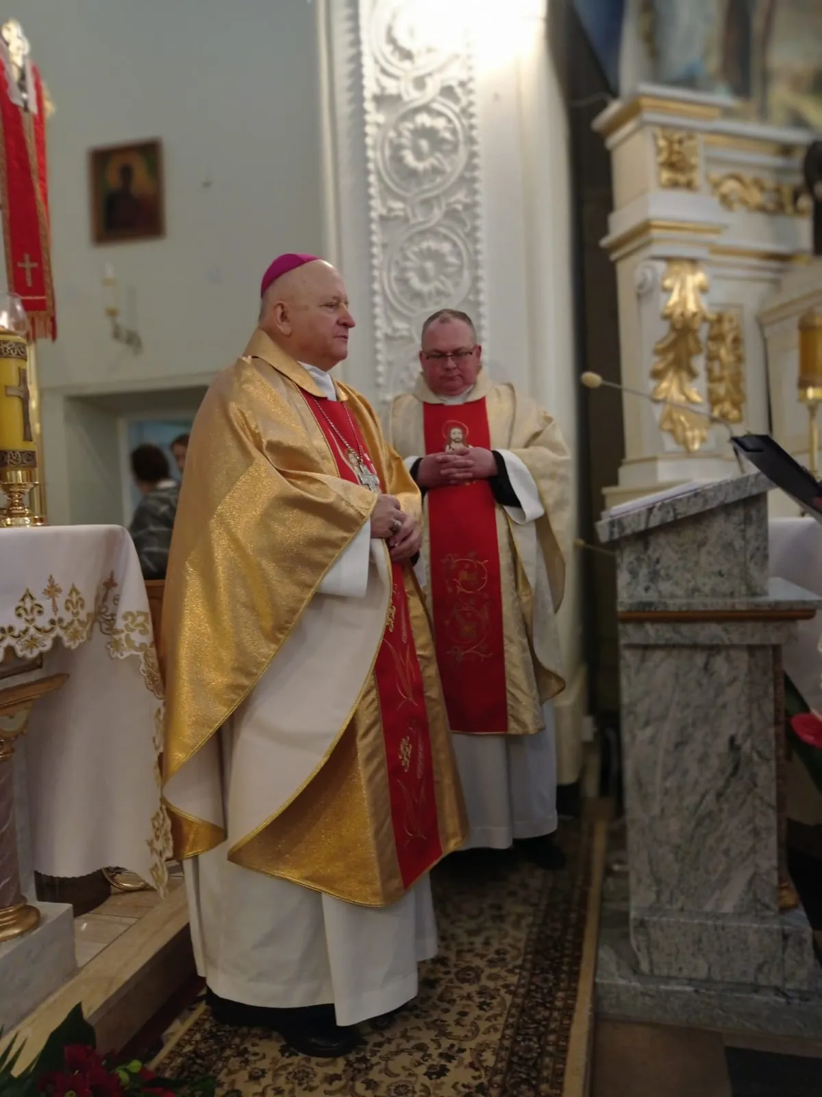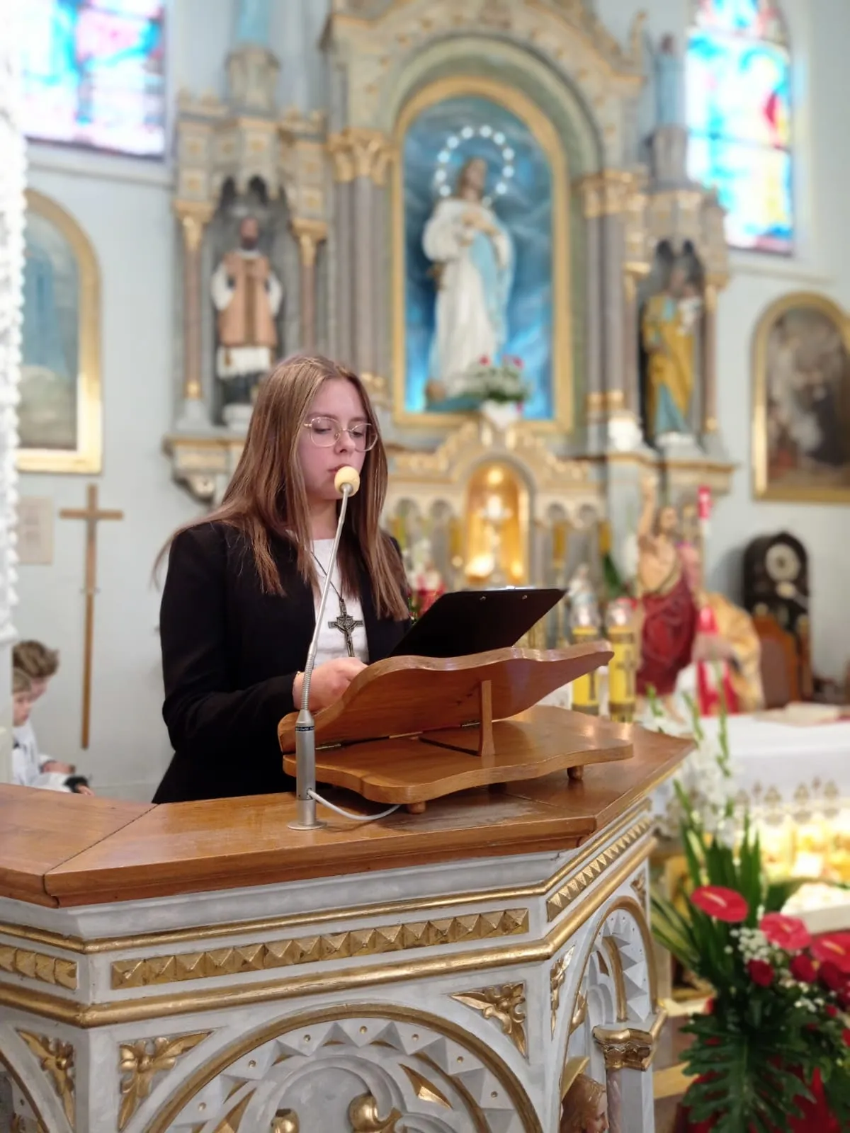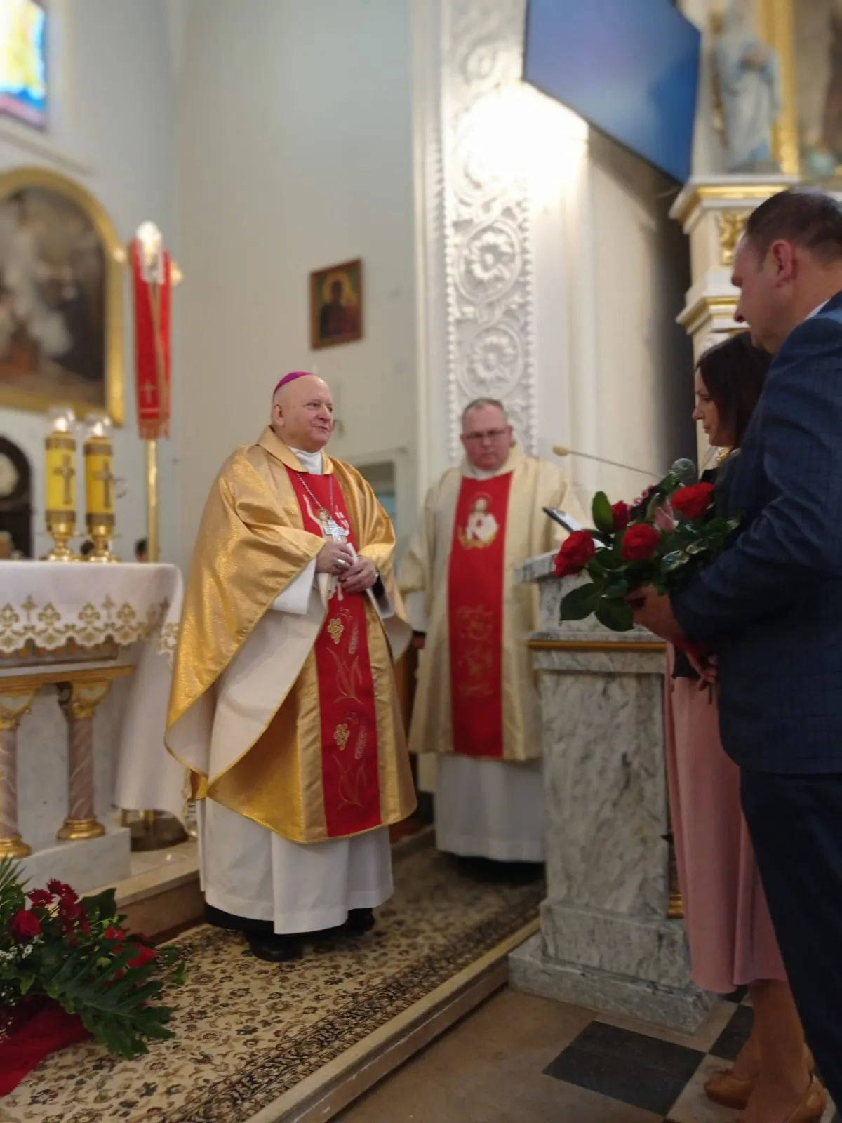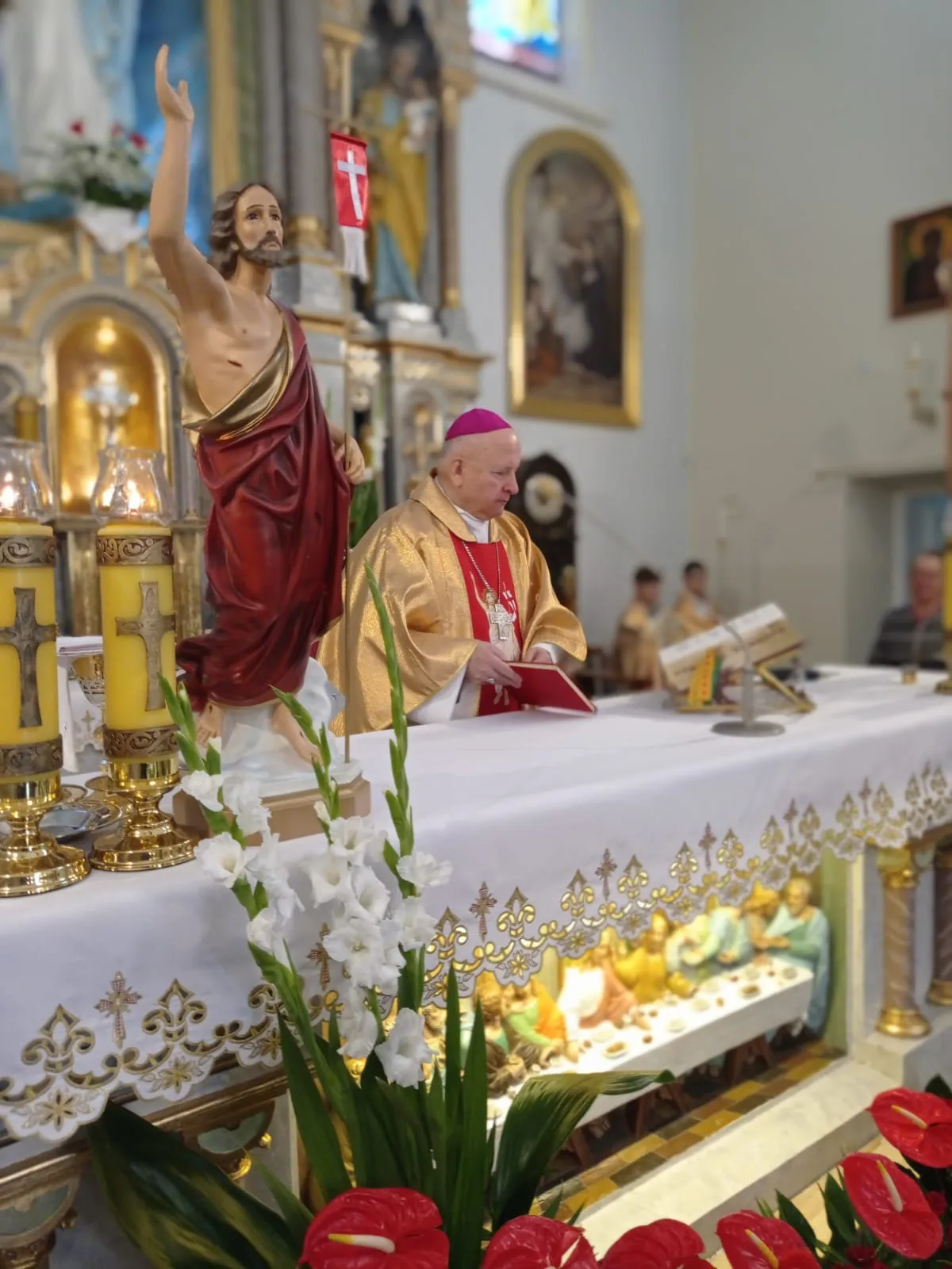 O godz. 10.00 rozpoczęła się uroczysta Eucharystia. Na samym początku przedstawiciele rodziców witając ks. biskupa poprosili o udzielenie ich dzieciom sakramentu dojrzałości chrześcijańskiej. Po Ewangelii ks. biskup przeprowadził dialog z ks. proboszczem pytając czy młodzież jest przygotowana do przyjęcia tego sakramentu. Ks. proboszcz zaświadczył, że są godni przyjęcia tego sakramentu, że przygotowywali się do niego przez rok. Następnie sama młodzież musiała wyrazić chęć przyjęcia go i powiedzenia czego oczekują.Po homilii, którą wygłosił ks. biskup, kandydaci odnowili przyrzeczenia chrzcielne. I nadszedł moment udzielenia sakramentu bierzmowania. Najpierw ks. biskup i ksiądz Grzegorz z wyciągniętymi nad kandydatami rękami odmówili modlitwę. Po niej nadszedł moment namaszczenia krzyżmem św. czoła każdego bierzmowanego. Po Komunii św. młodzież wyraziła swoje podziękowanie najpierw ks. biskupowi, następnie księdzu proboszczowi, wychowawcom, świadkom i wszystkim którzy pomogli im właściwie przygotować się do przyjęcia tego sakramentu i otaczali ich swoją modlitwą.Niech na co dzień doświadczają Ducha Świętego, który rozlewa Bożą miłość w naszych sercach i uczą się żyć darami Ducha, które potrzebę są każdego dnia, by być silnym w Panu mocą Jego potęgi.