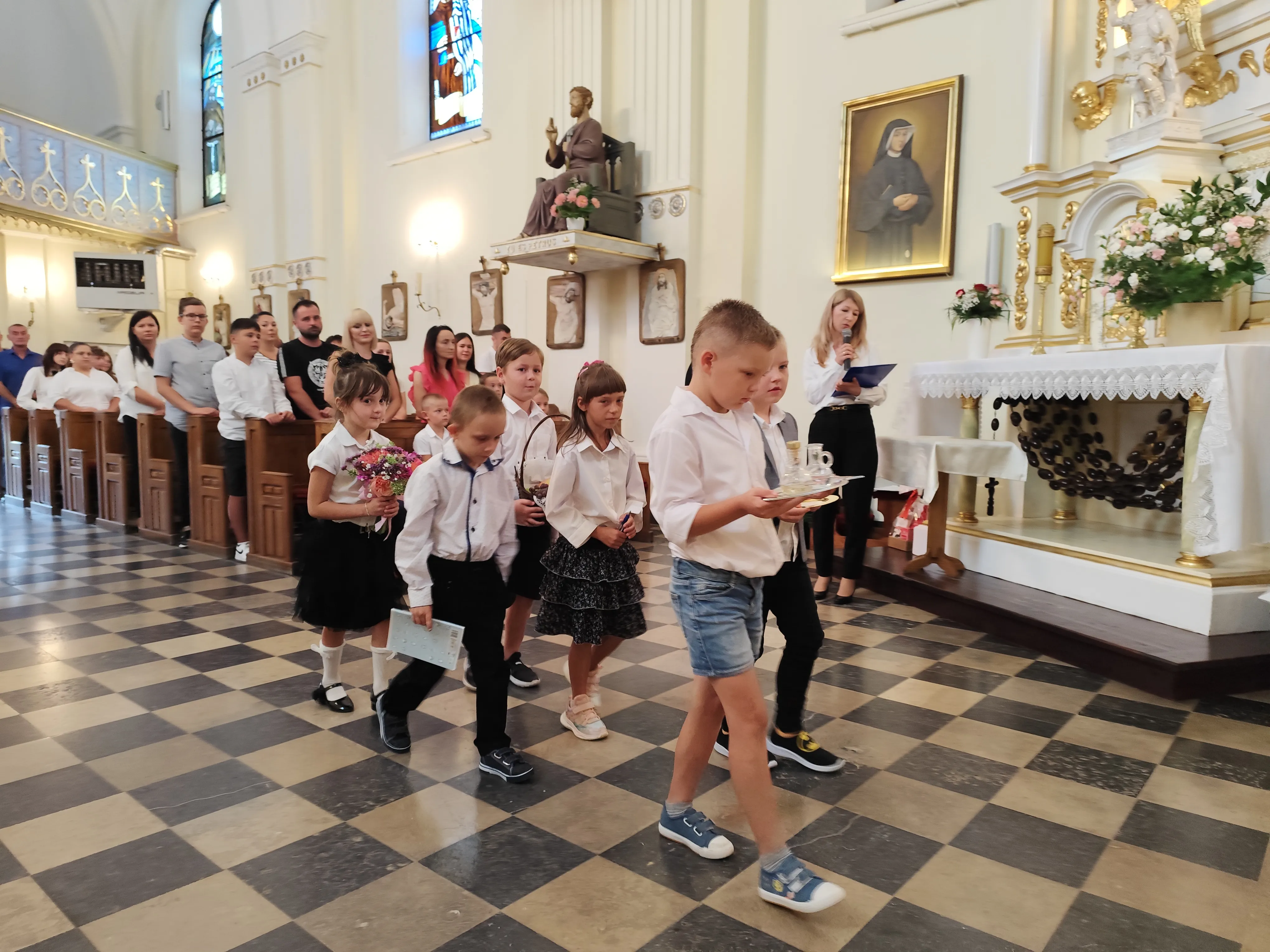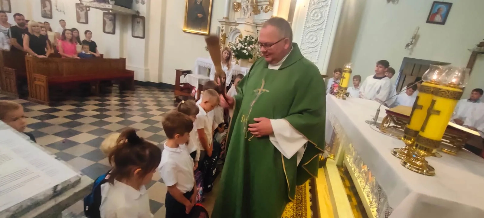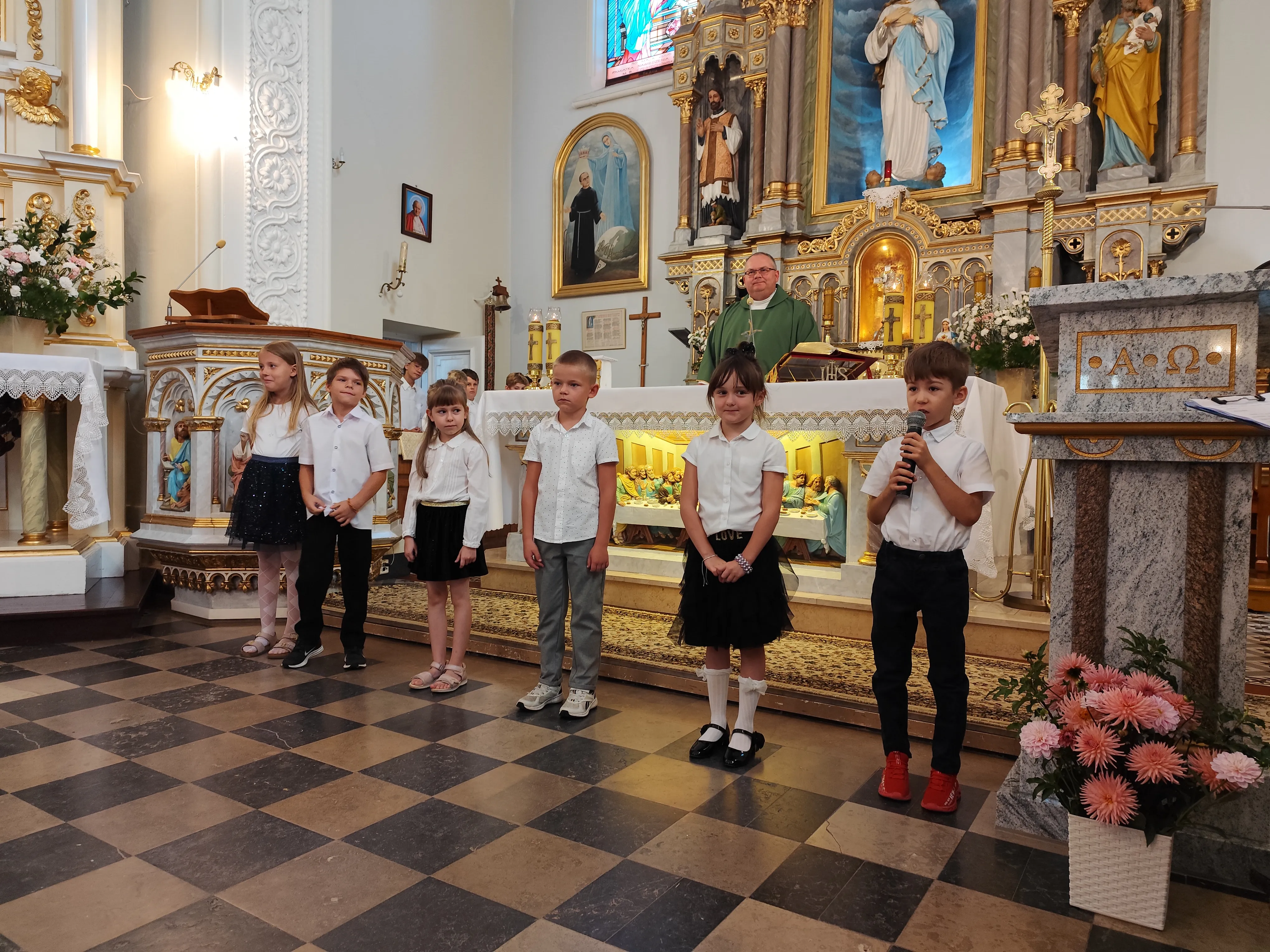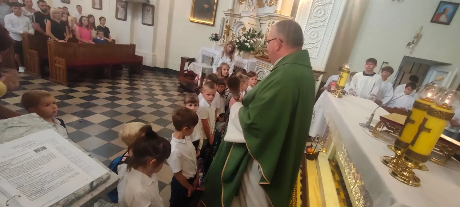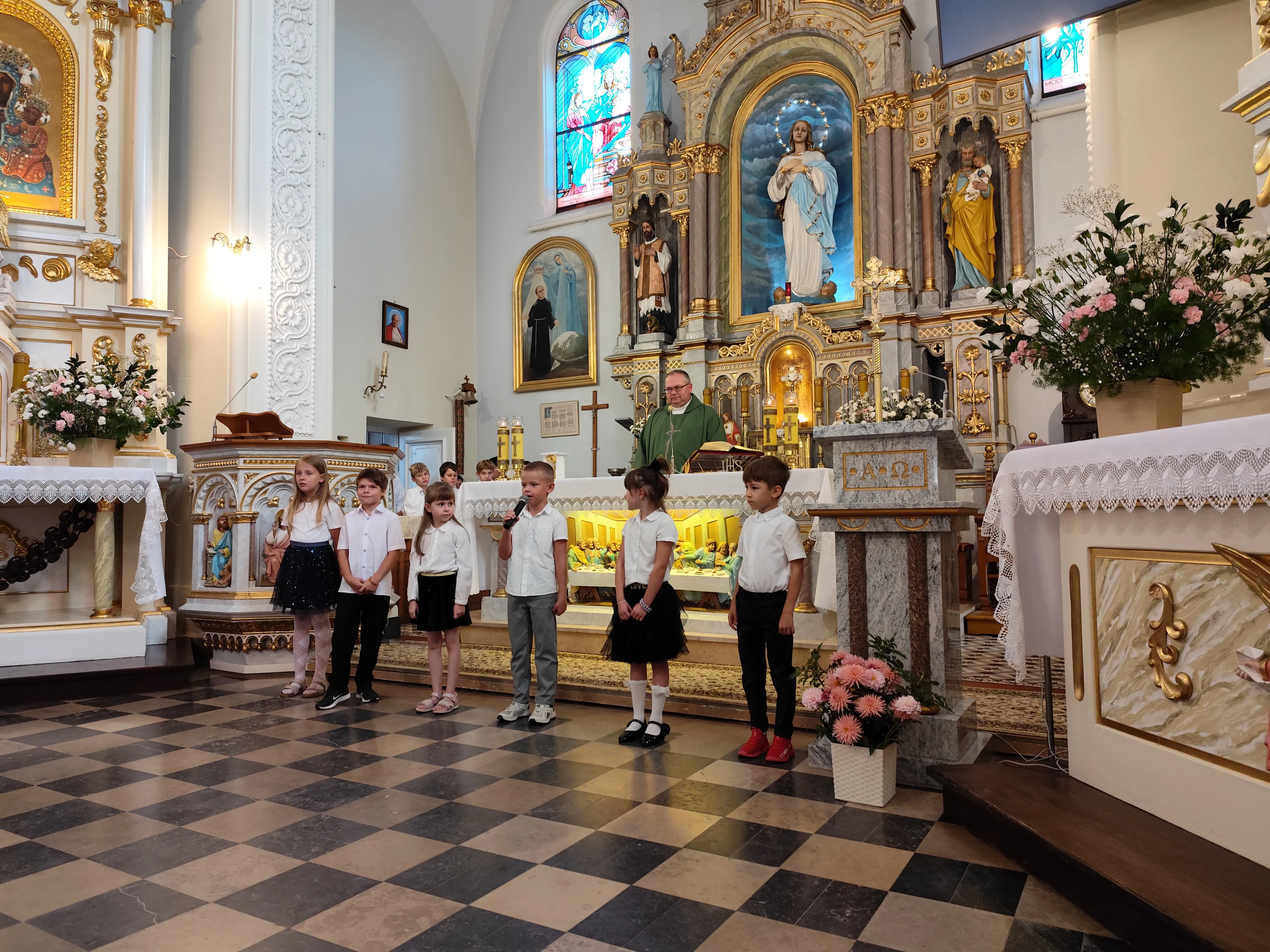 Na początku Eucharystii zebranych uczniów, członków ich rodzin oraz nauczycieli powitał ks. proboszcz. Zapewnił zebranych uczniów, że w naszej szkole zadbamy zarówno o ich rozwój intelektualny, jak też duchowy, ale również o budującą atmosferę wzajemnej życzliwości.Po mszy św. uczniowie pod opieką rodziców udali się do szkoły, gdzie zostali zapoznani z najważniejszymi informacjami dotyczącymi organizacji nowego roku szkolnego.