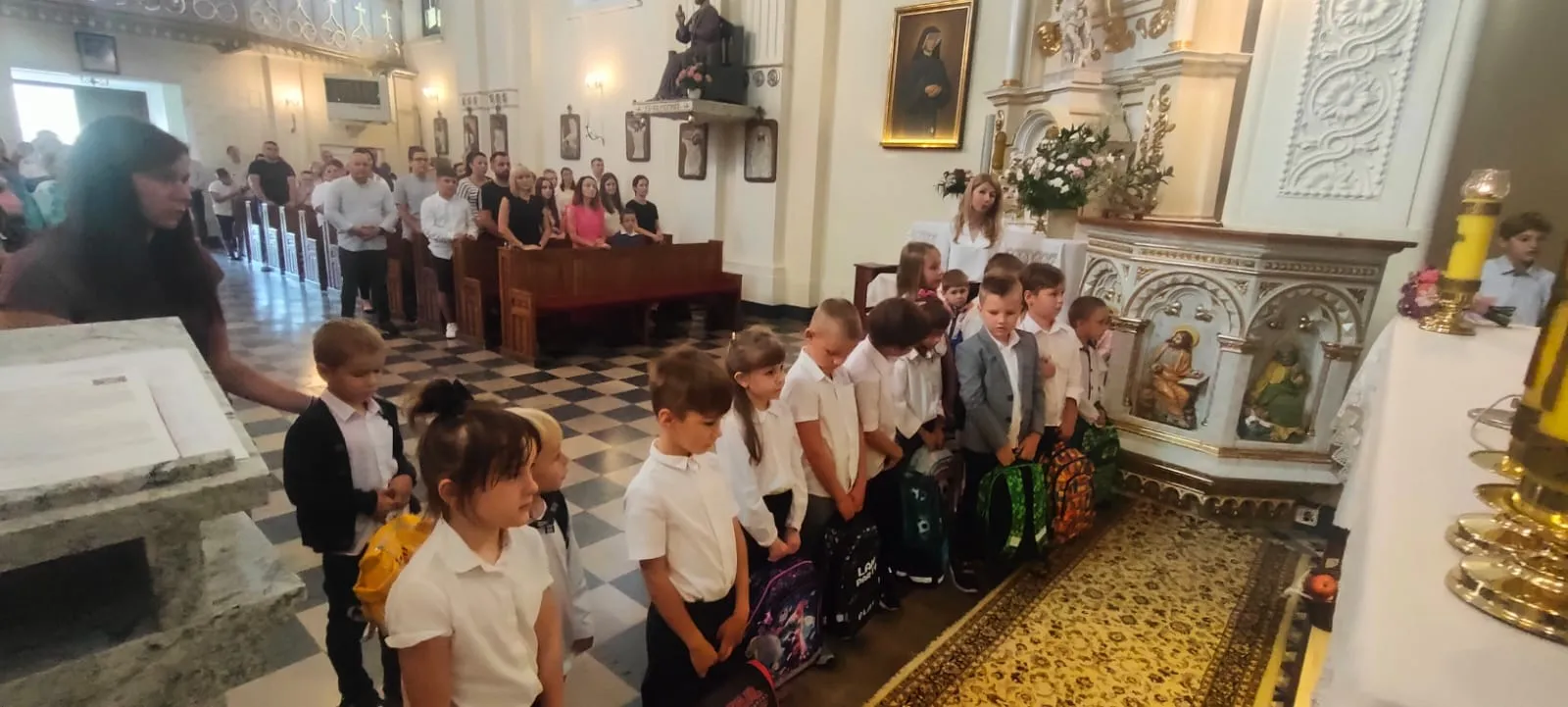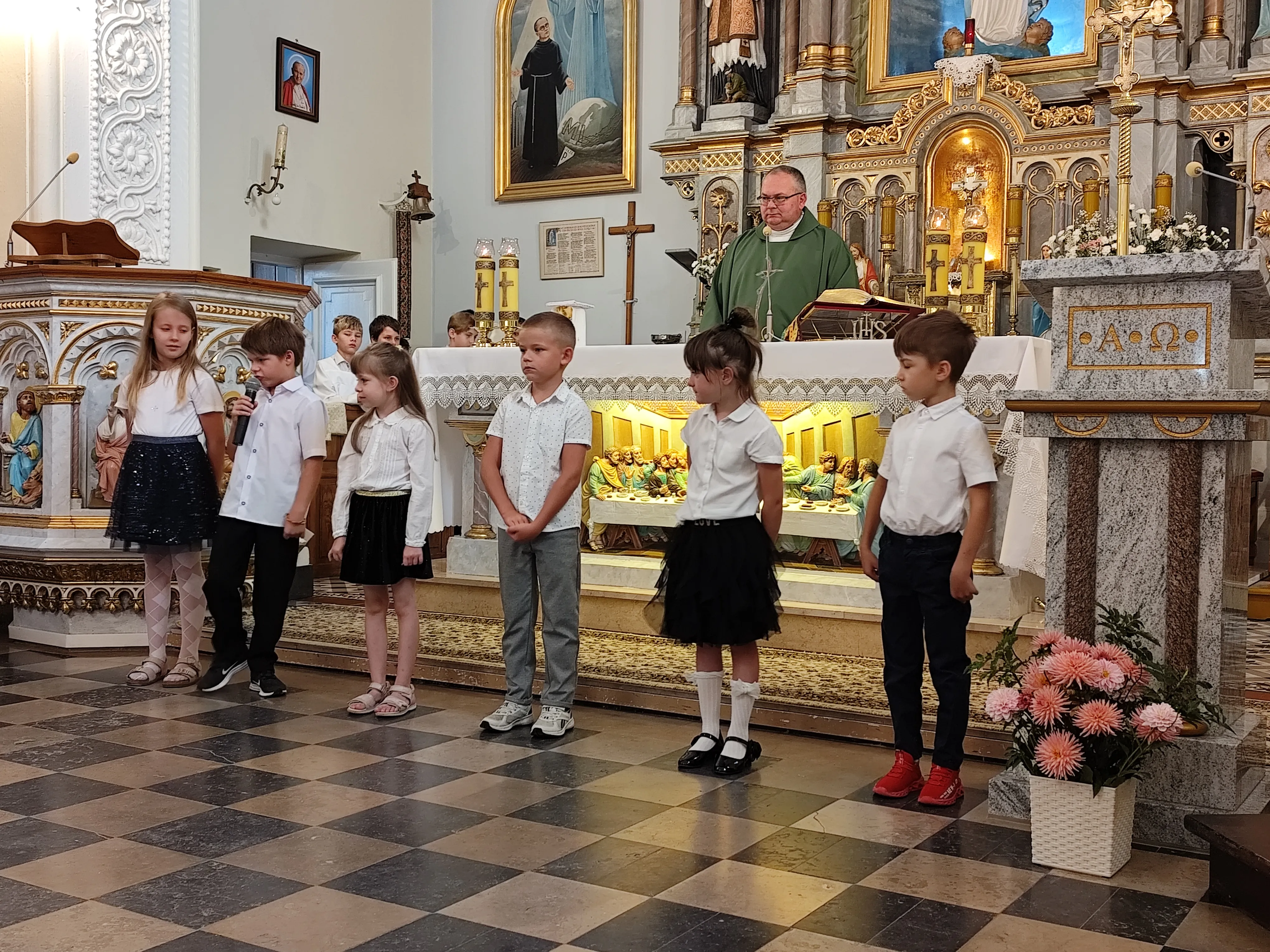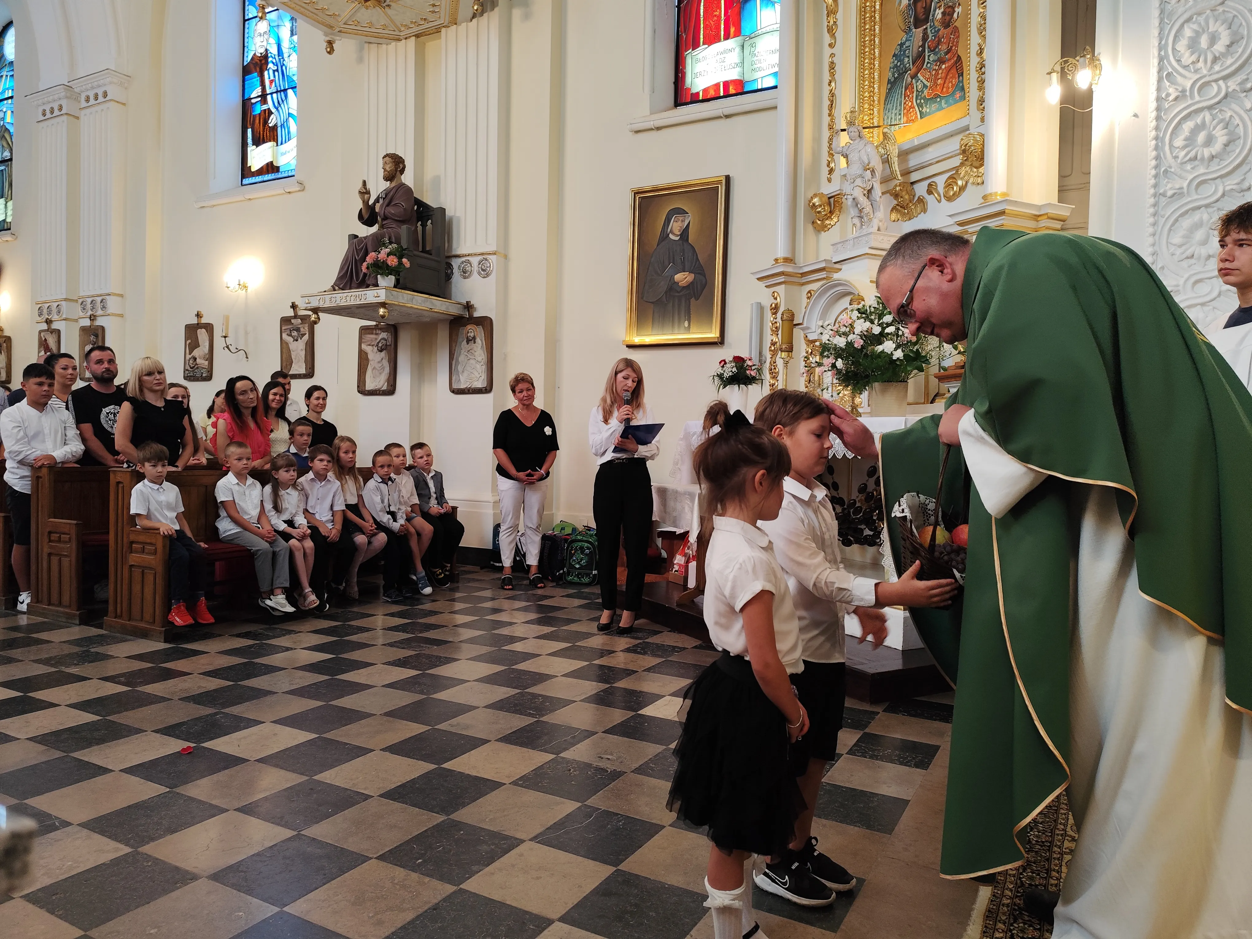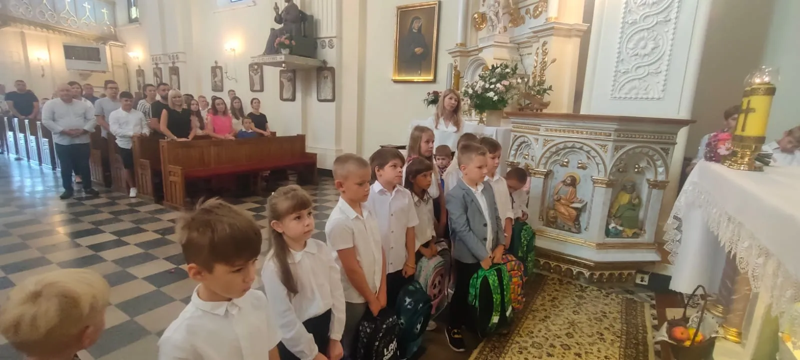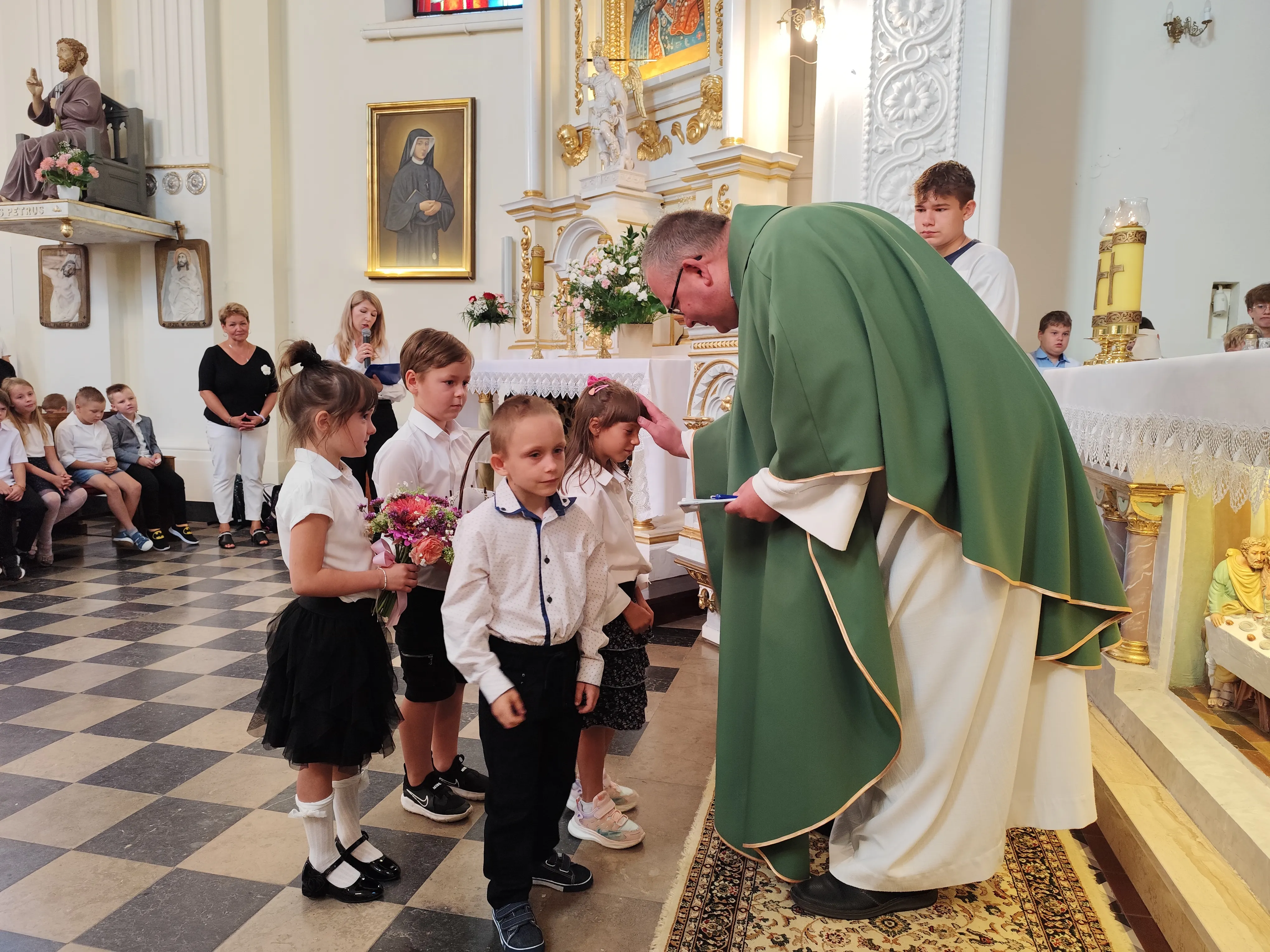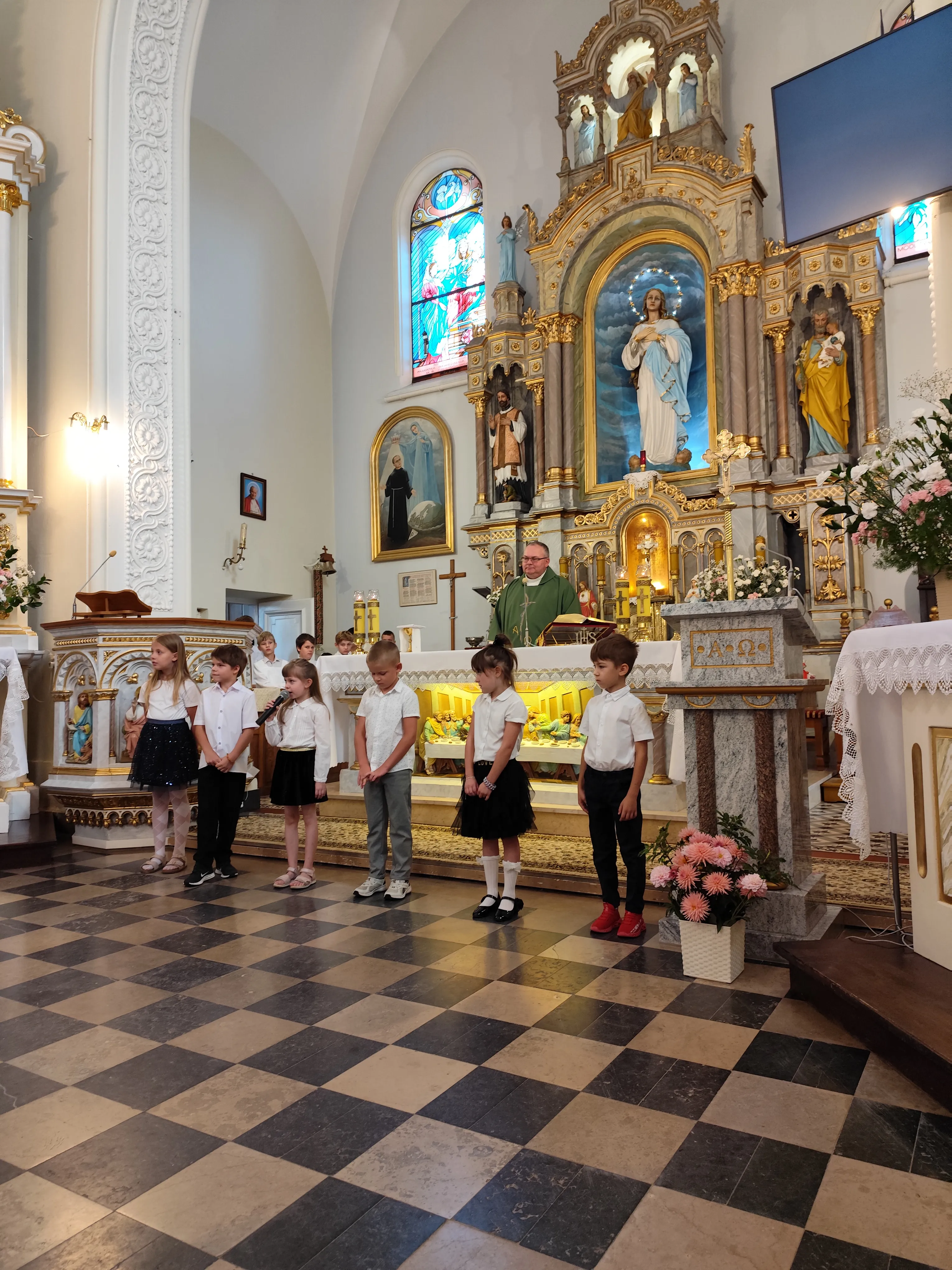 Na początku Eucharystii zebranych uczniów, członków ich rodzin oraz nauczycieli powitał ks. proboszcz. Zapewnił zebranych uczniów, że w naszej szkole zadbamy zarówno o ich rozwój intelektualny, jak też duchowy, ale również o budującą atmosferę wzajemnej życzliwości.Po mszy św. uczniowie pod opieką rodziców udali się do szkoły, gdzie zostali zapoznani z najważniejszymi informacjami dotyczącymi organizacji nowego roku szkolnego.