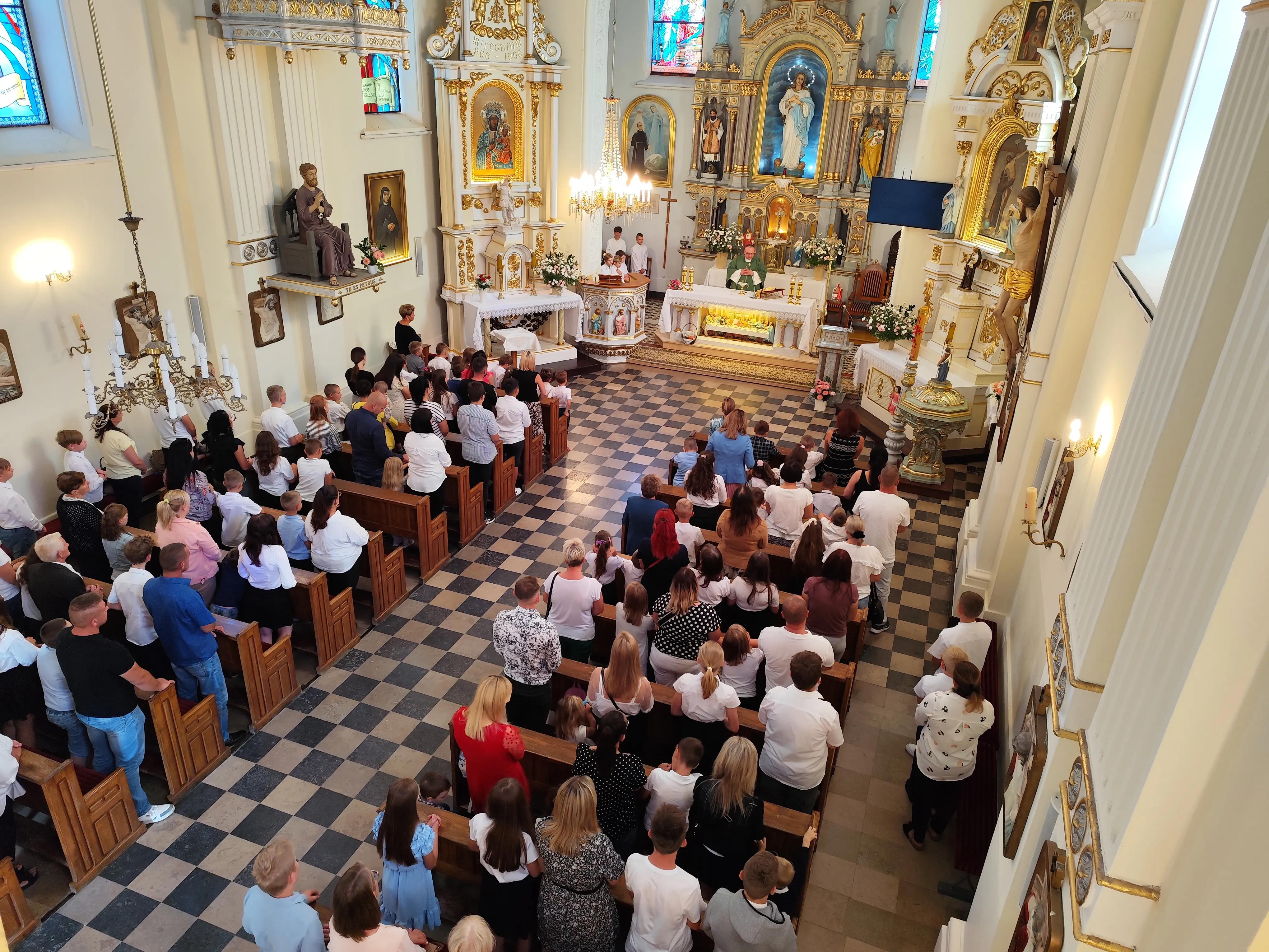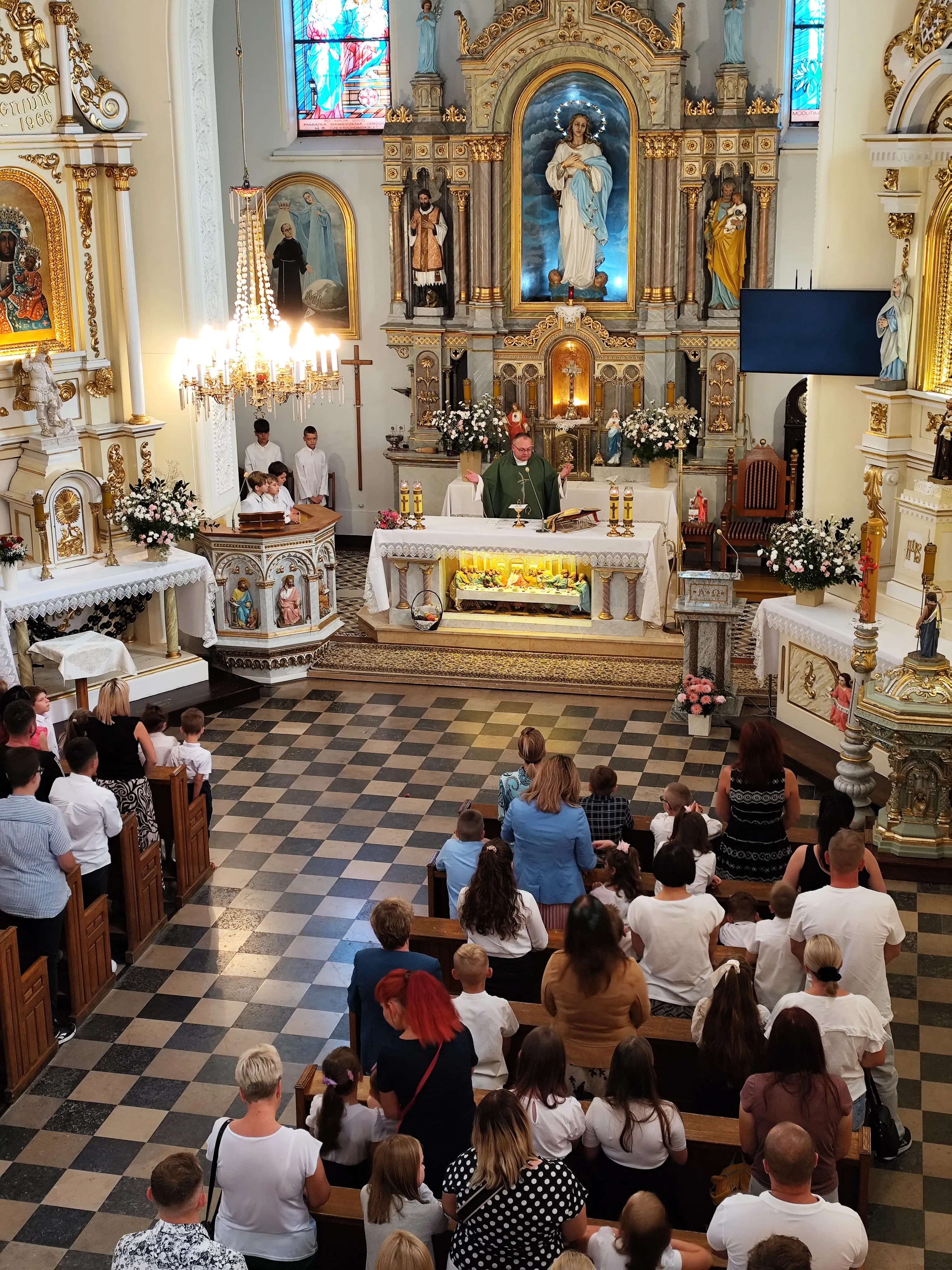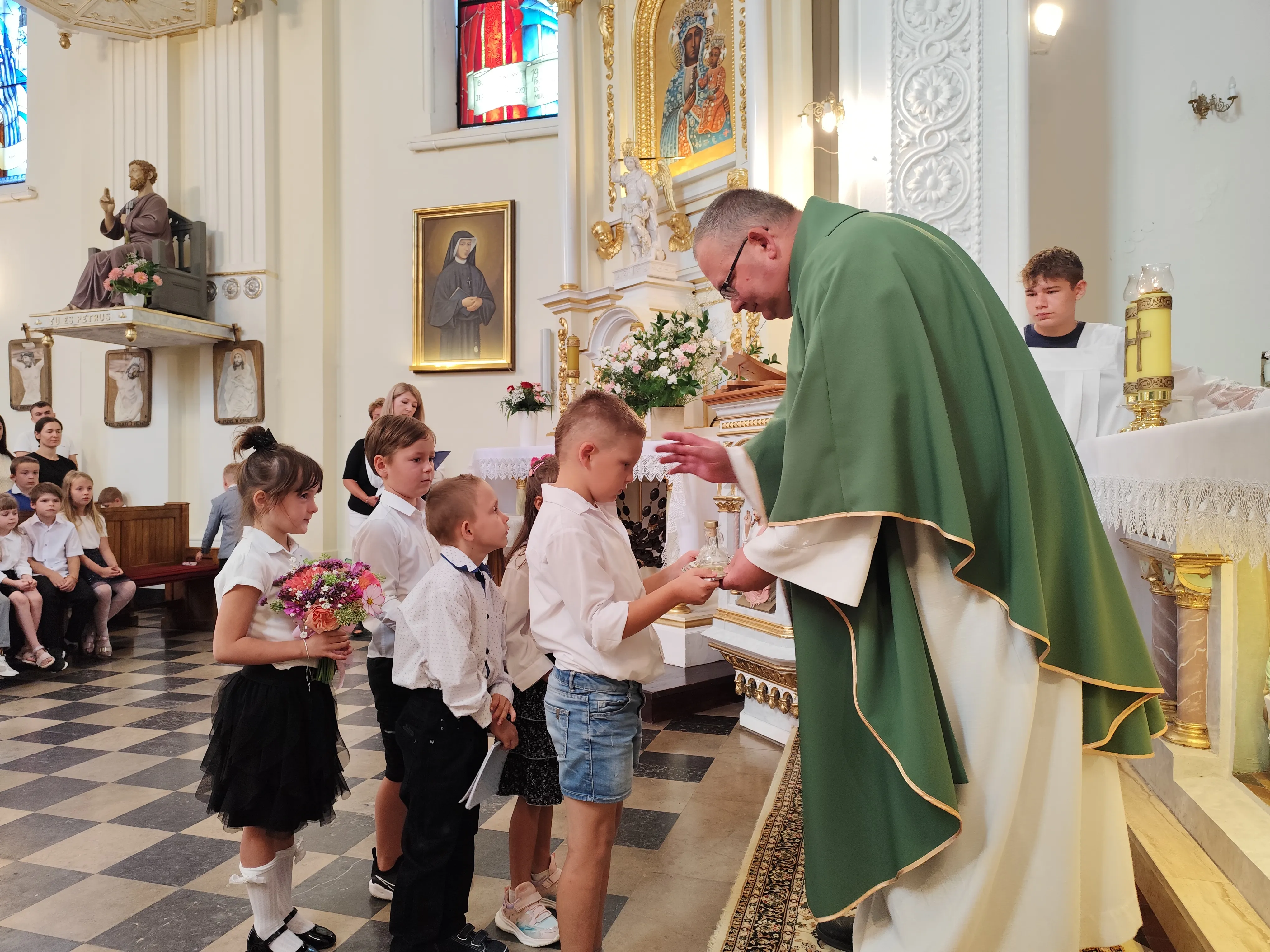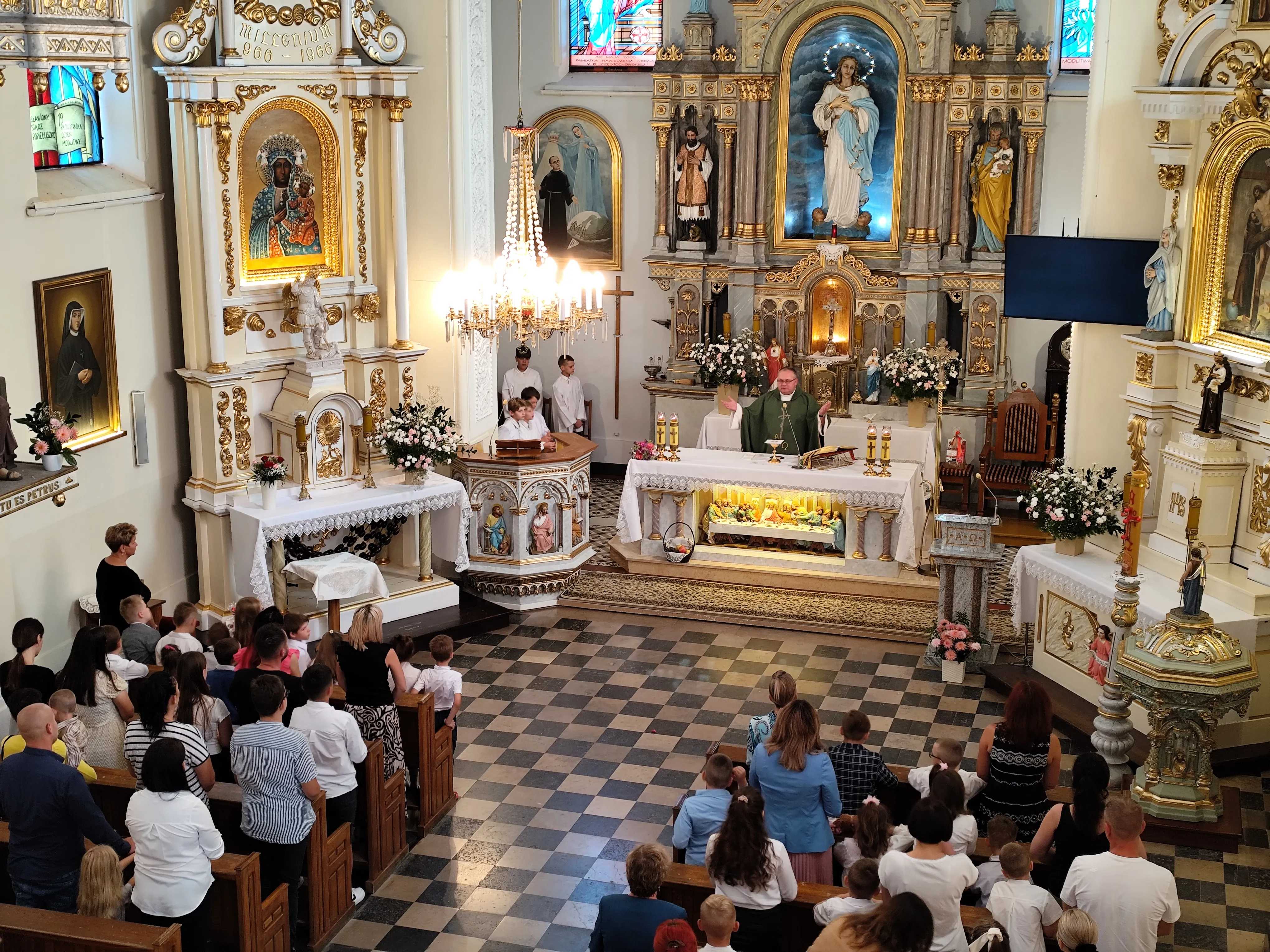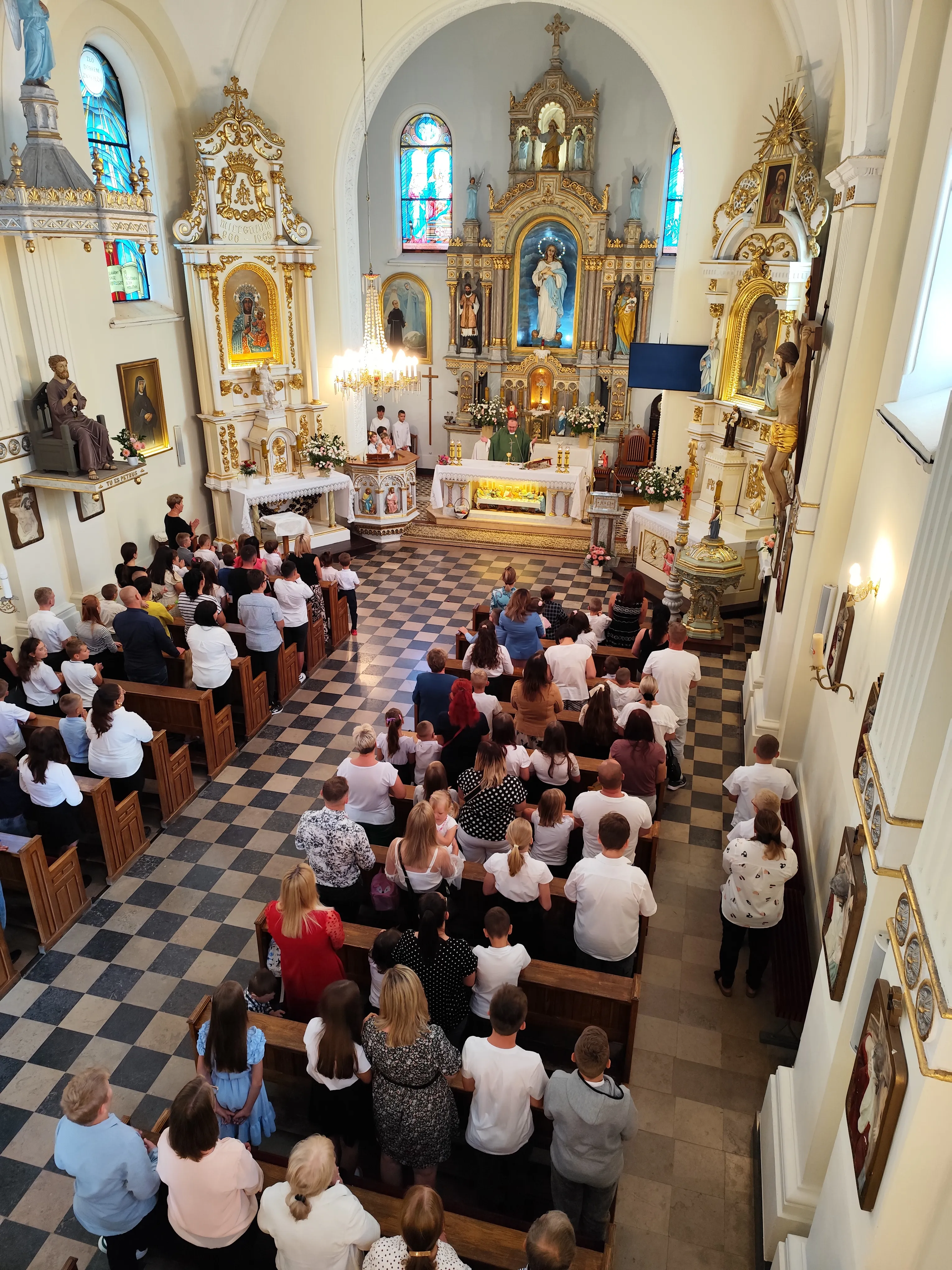 Na początku Eucharystii zebranych uczniów, członków ich rodzin oraz nauczycieli powitał ks. proboszcz. Zapewnił zebranych uczniów, że w naszej szkole zadbamy zarówno o ich rozwój intelektualny, jak też duchowy, ale również o budującą atmosferę wzajemnej życzliwości.Po mszy św. uczniowie pod opieką rodziców udali się do szkoły, gdzie zostali zapoznani z najważniejszymi informacjami dotyczącymi organizacji nowego roku szkolnego.