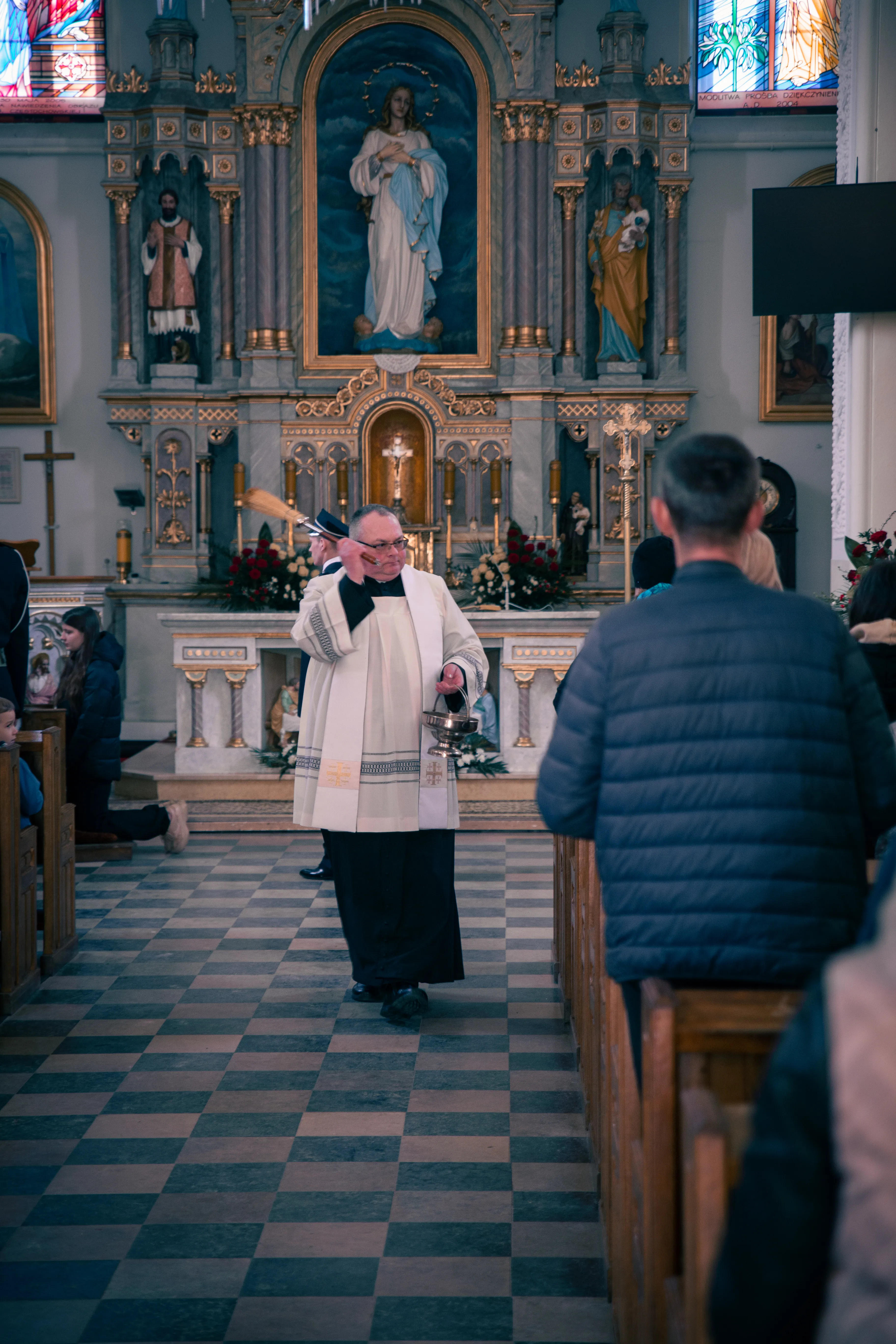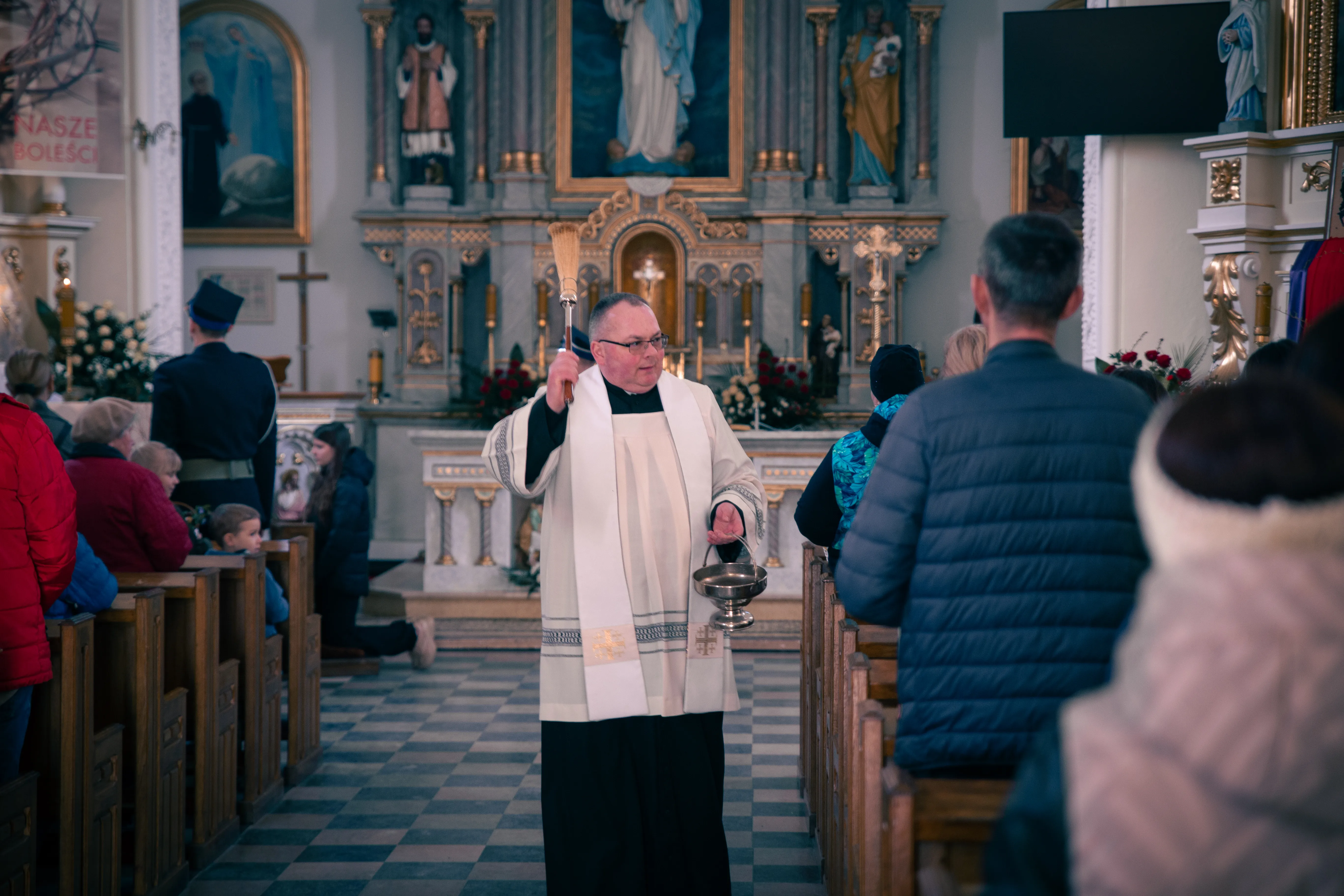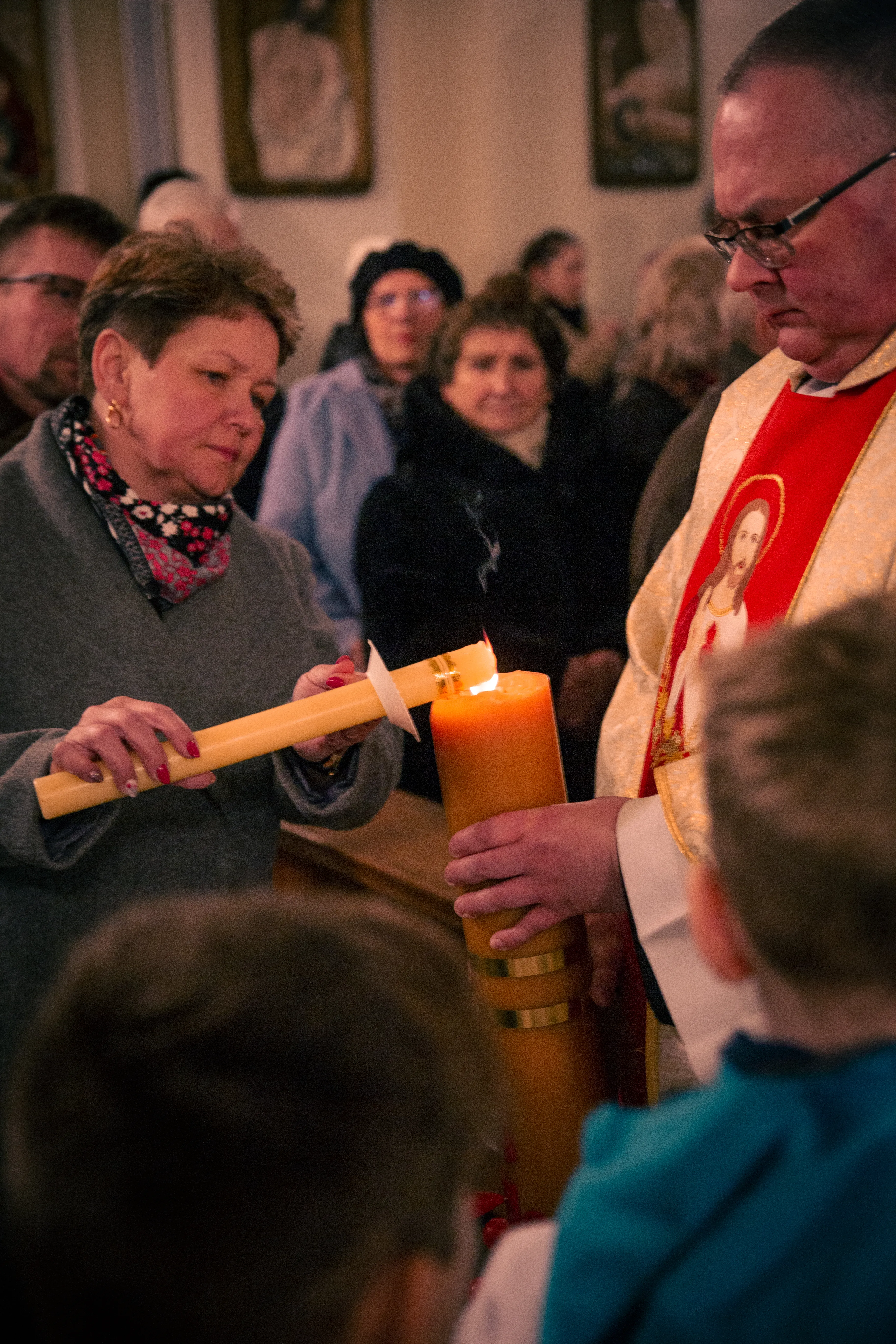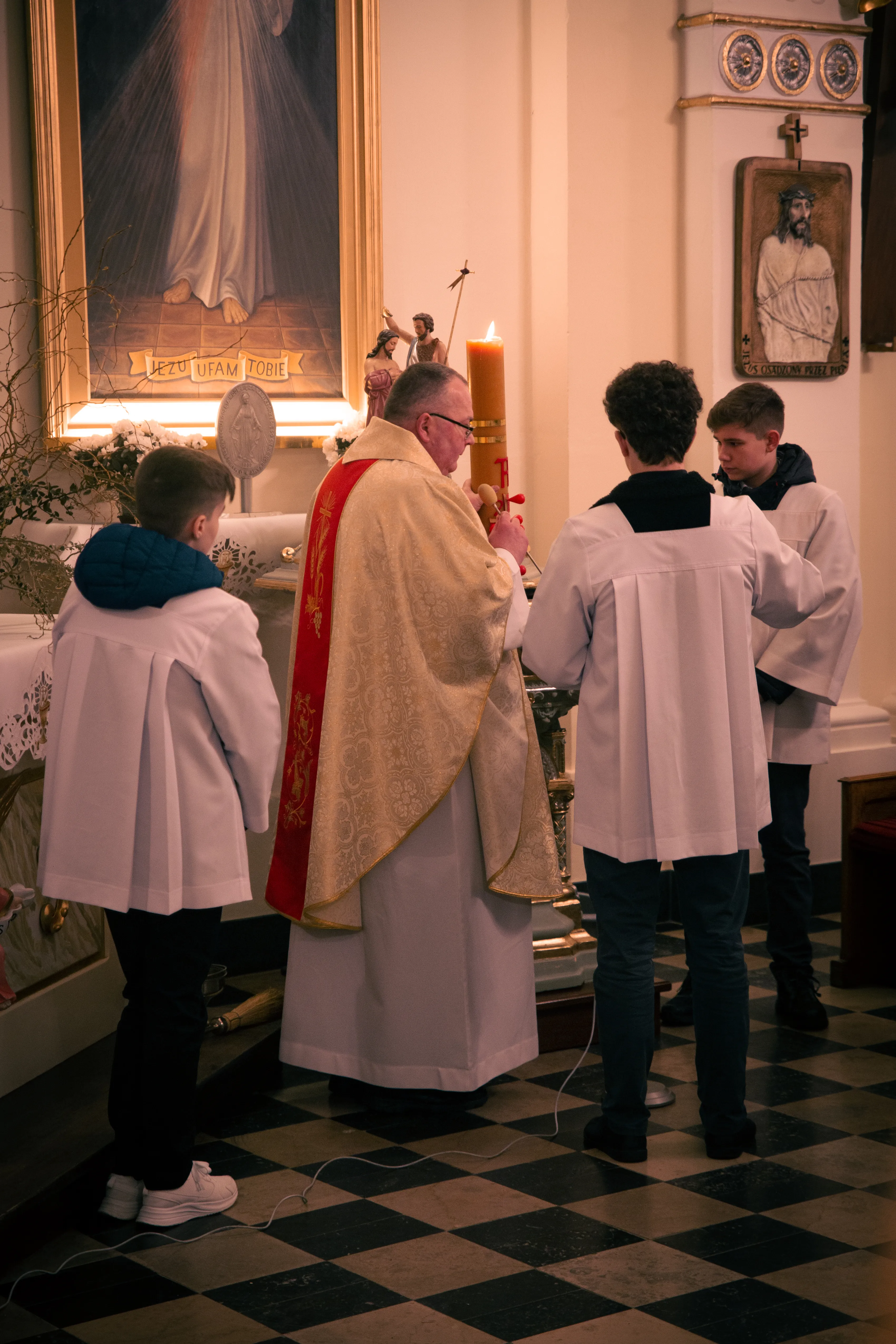 Po zapadnięciu zmroku odprawiana jest msza Wigilii Paschalnej, na która składa się: Liturgia Światła, Liturgia Słowa Bożego, Liturgia Chrzcielna, Liturgia Eucharystyczna.