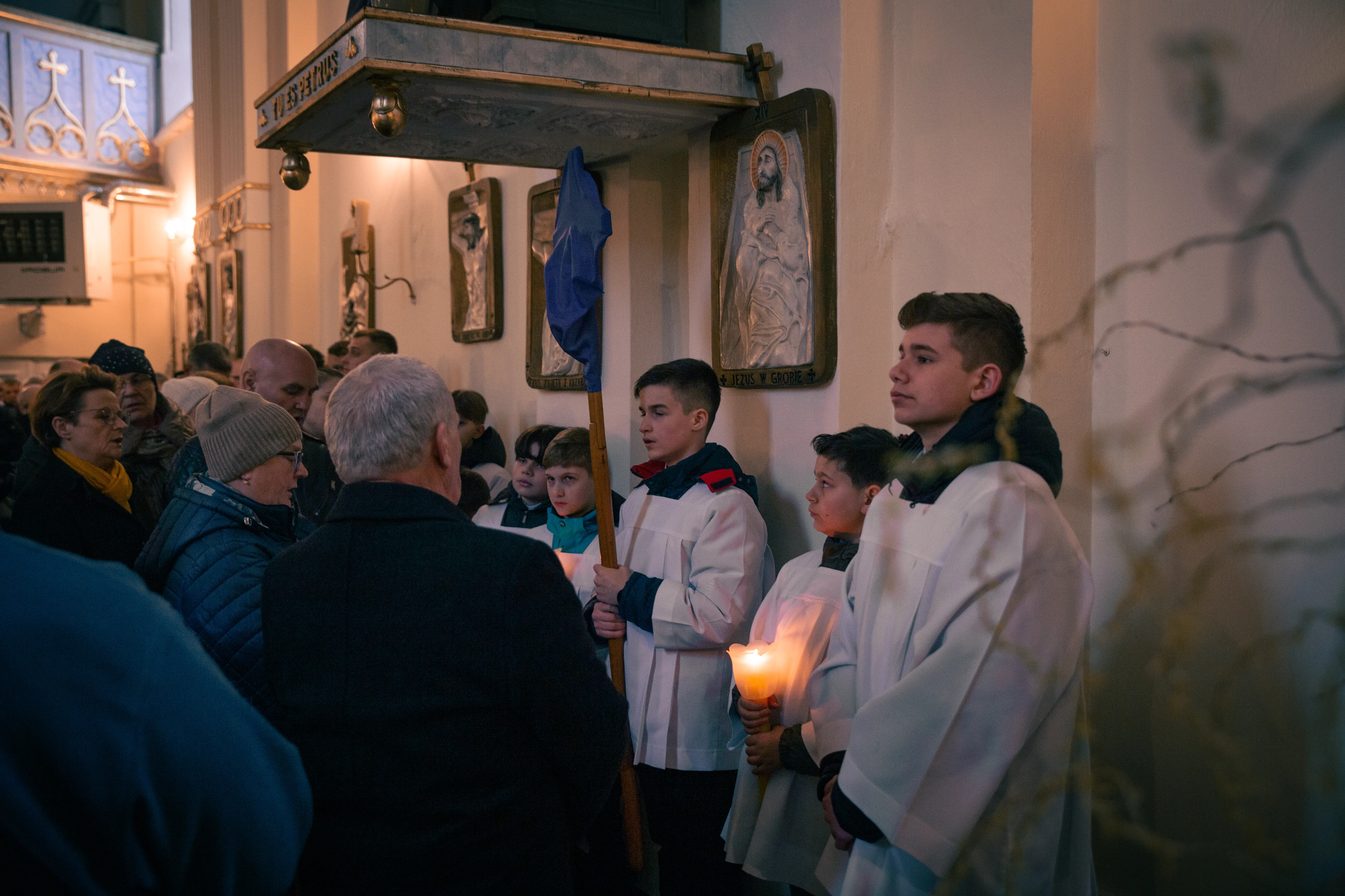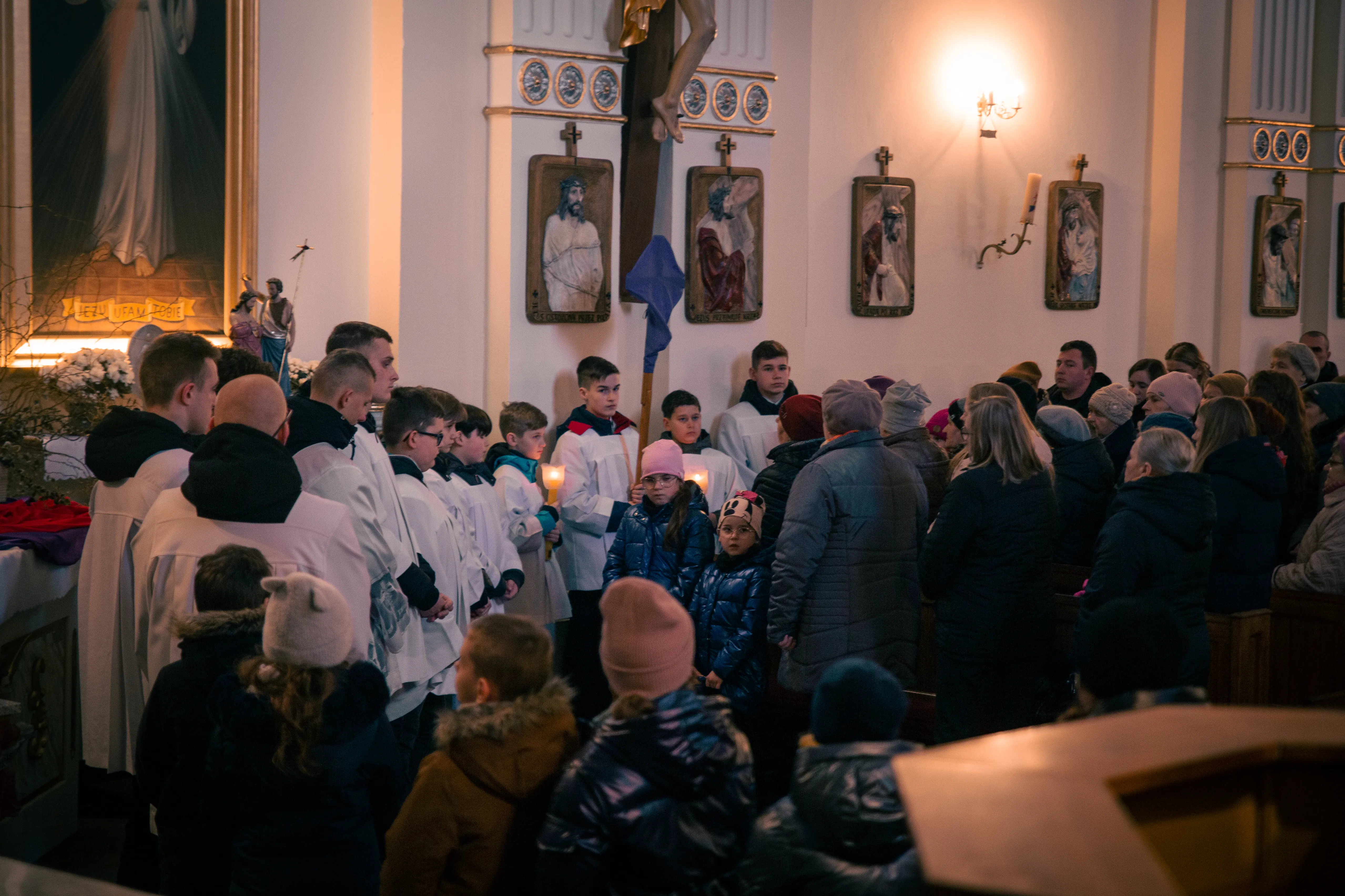 Ceremonię Wielkiego Piątku 15.04.2022 r rozpoczęła Droga Krzyżowa. Wielkopiątkowa liturgia jest pamiątką zwycięstwa odniesionego przez umęczonego i ukrzyżowanego Jezusa Chrystusa. W tym dniu używa się czerwonych szat liturgicznych symbolizujących miłość zwyciężającą na krzyżu, ale nie odprawia się Mszy świętej. Liturgię rozpoczęła milcząca procesja. Kapłan dokonał aktu prostracji, czyli leżenia krzyżem, co jest znakiem najgłębszej adoracji, uniżenia i pokuty.