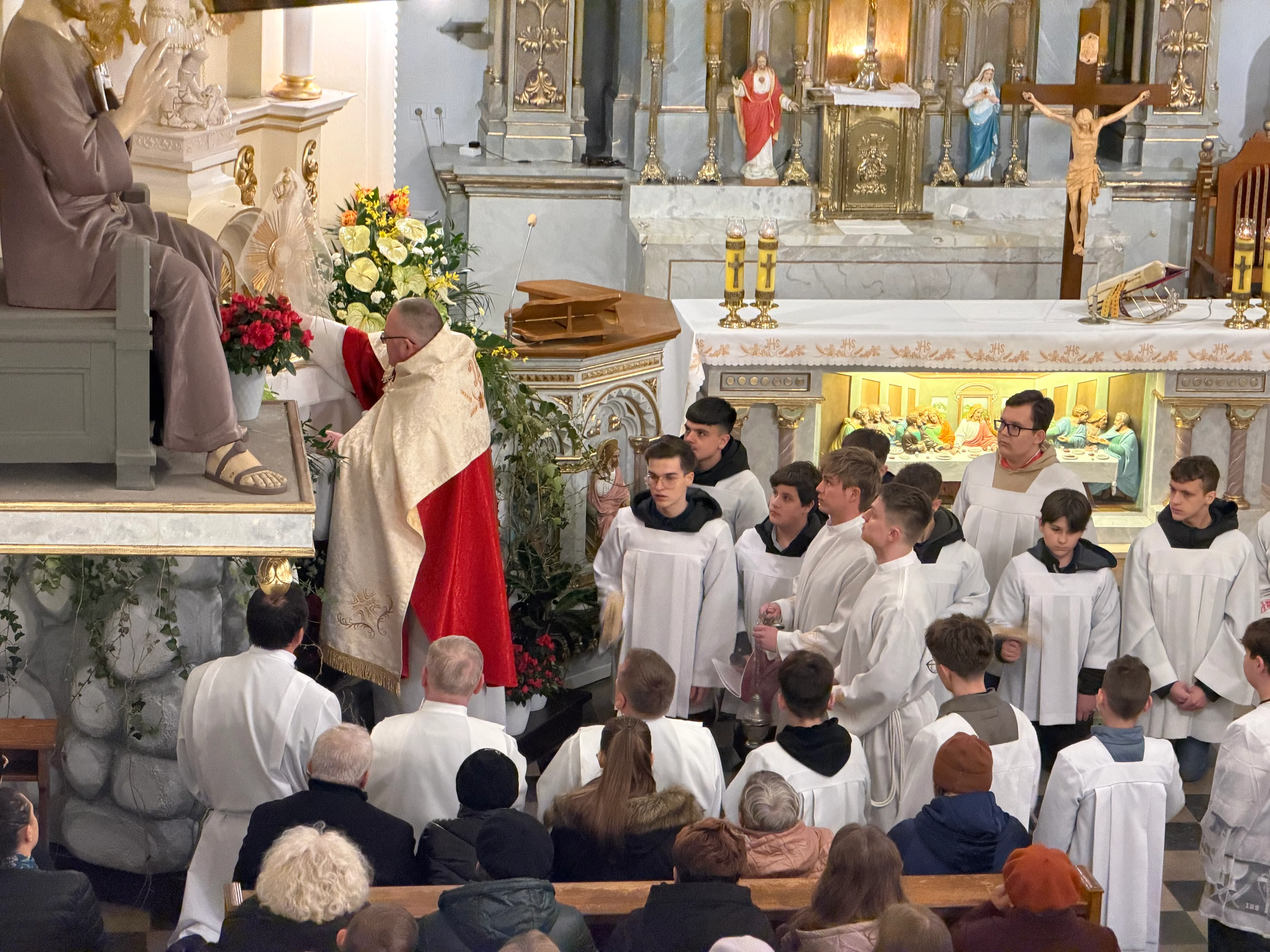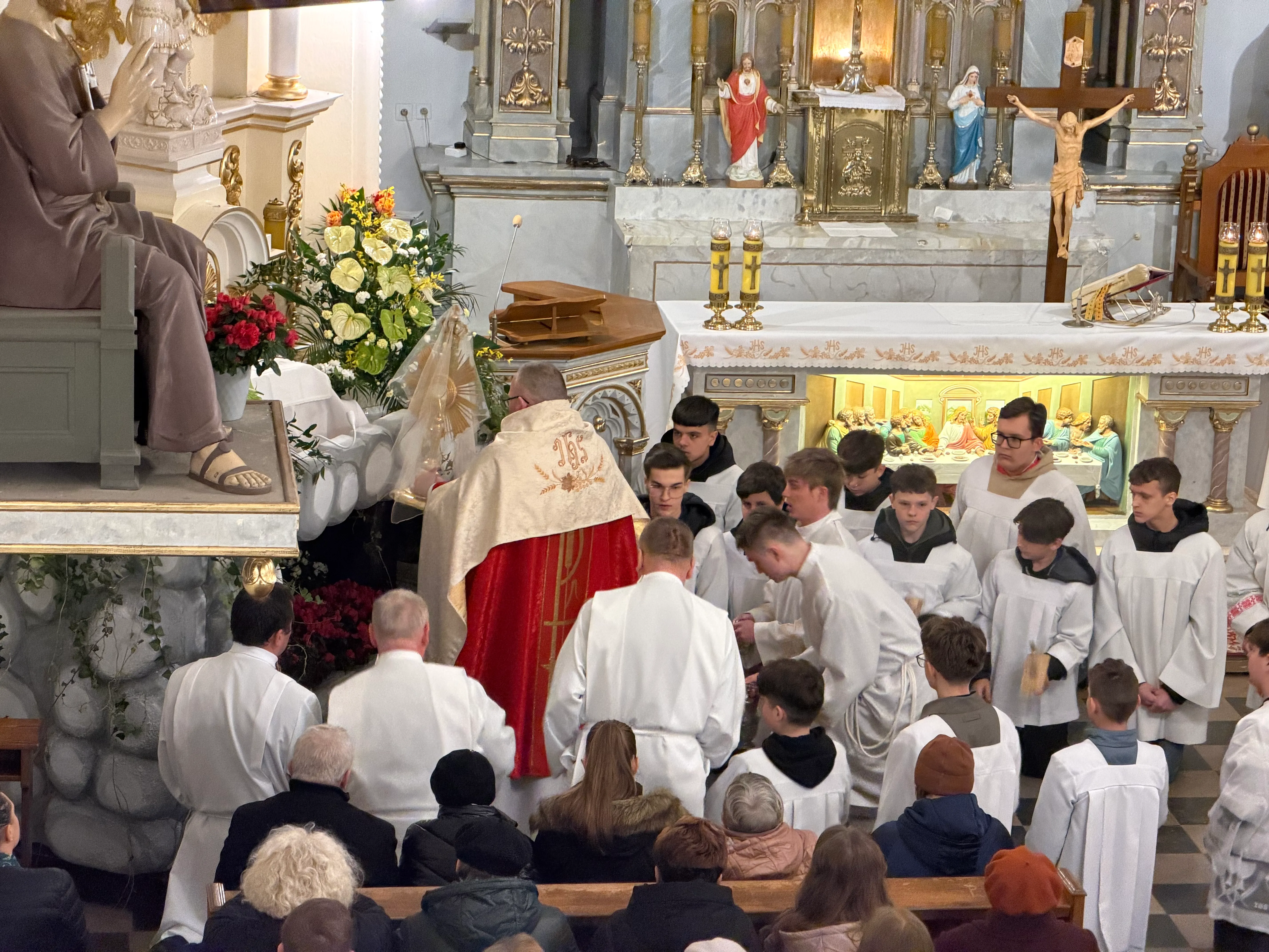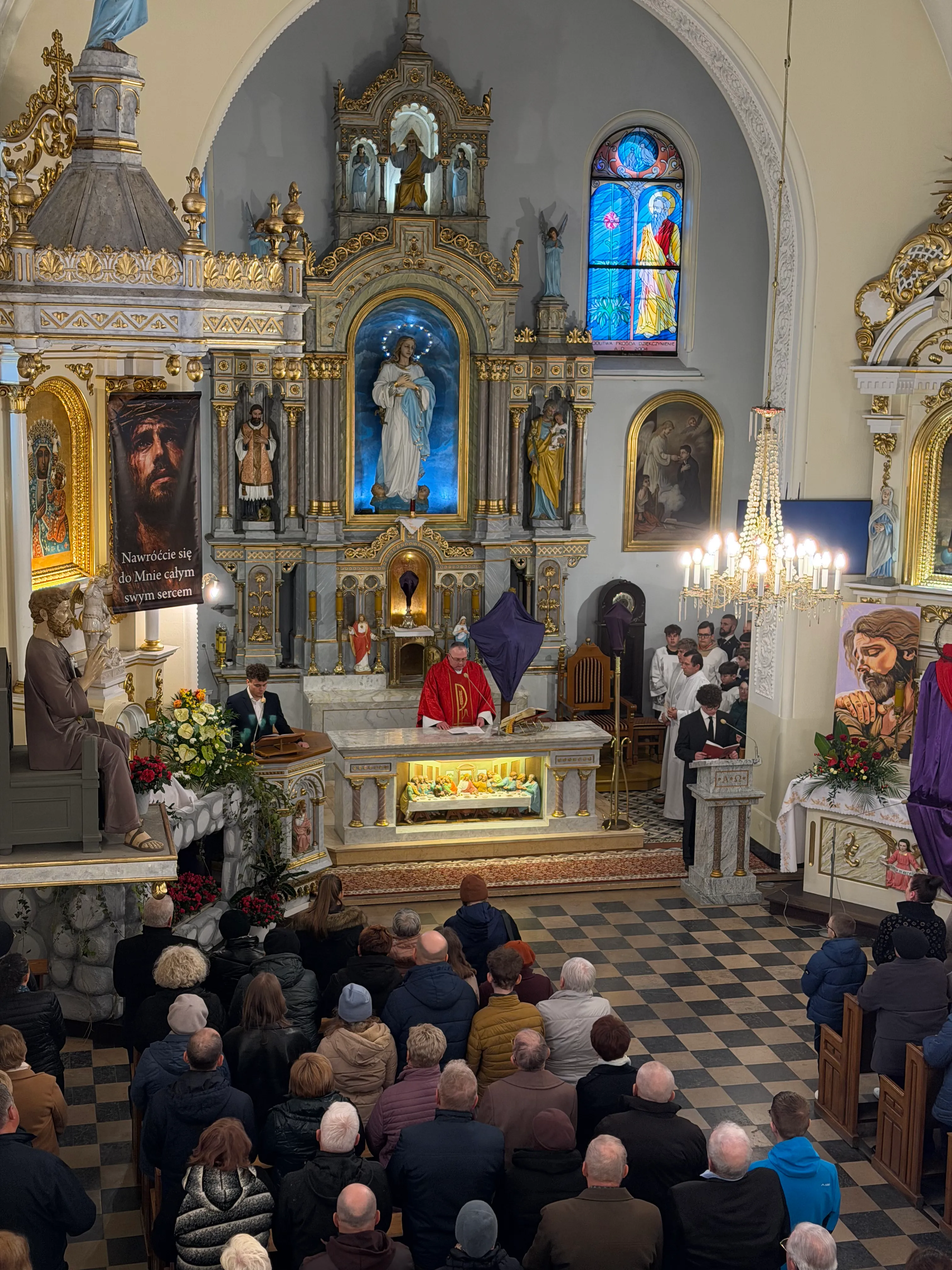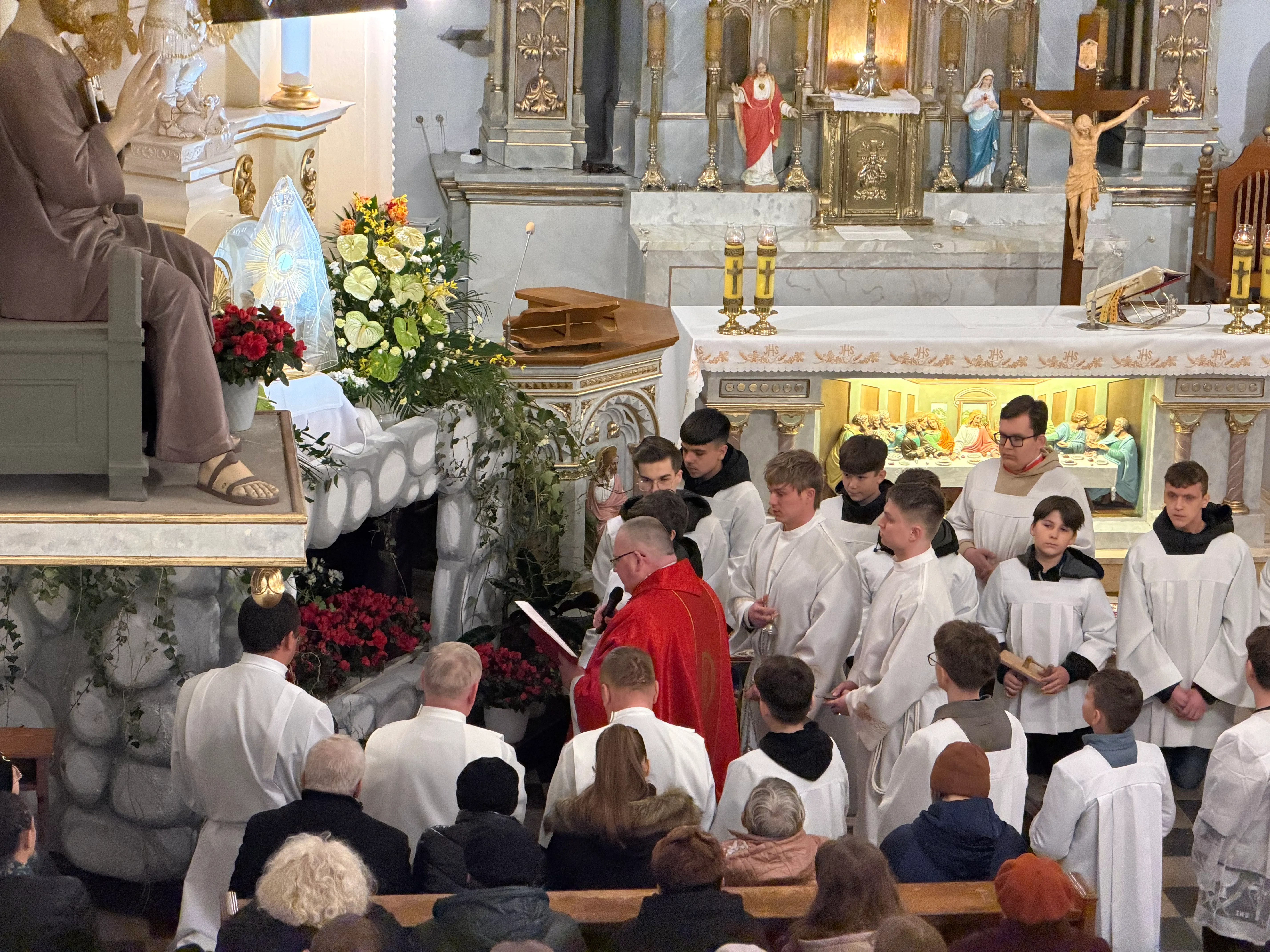 Ceremonię Wielkiego Piątku rozpoczęła Droga Krzyżowa. Wielkopiątkowa liturgia jest pamiątką zwycięstwa odniesionego przez umęczonego i ukrzyżowanego Jezusa Chrystusa. W tym dniu używa się czerwonych szat liturgicznych symbolizujących miłość zwyciężającą na krzyżu, ale nie odprawia się Mszy świętej. Liturgię rozpoczęła milcząca procesja. Kapłan dokonał aktu prostracji, czyli leżenia krzyżem, co jest znakiem najgłębszej adoracji, uniżenia i pokuty.